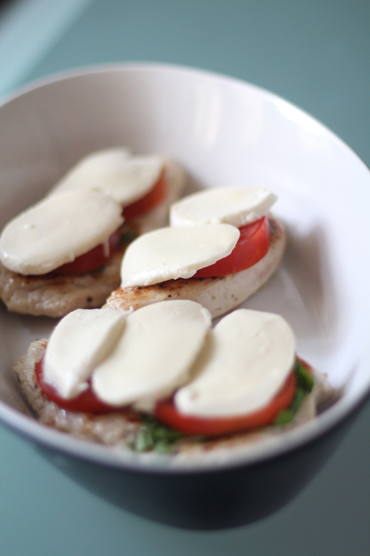 – dann kommen noch die Tomaten und der Mozzarella auf das Fleisch