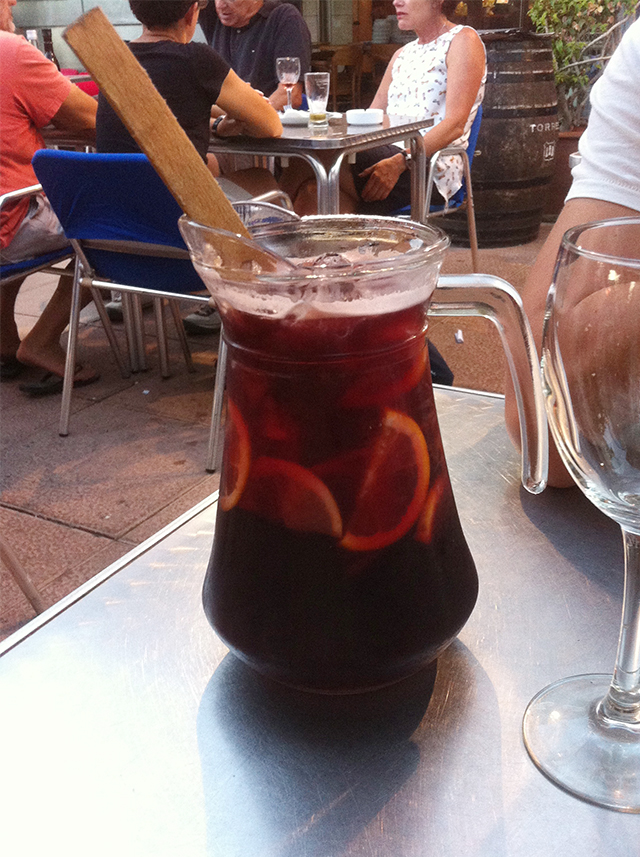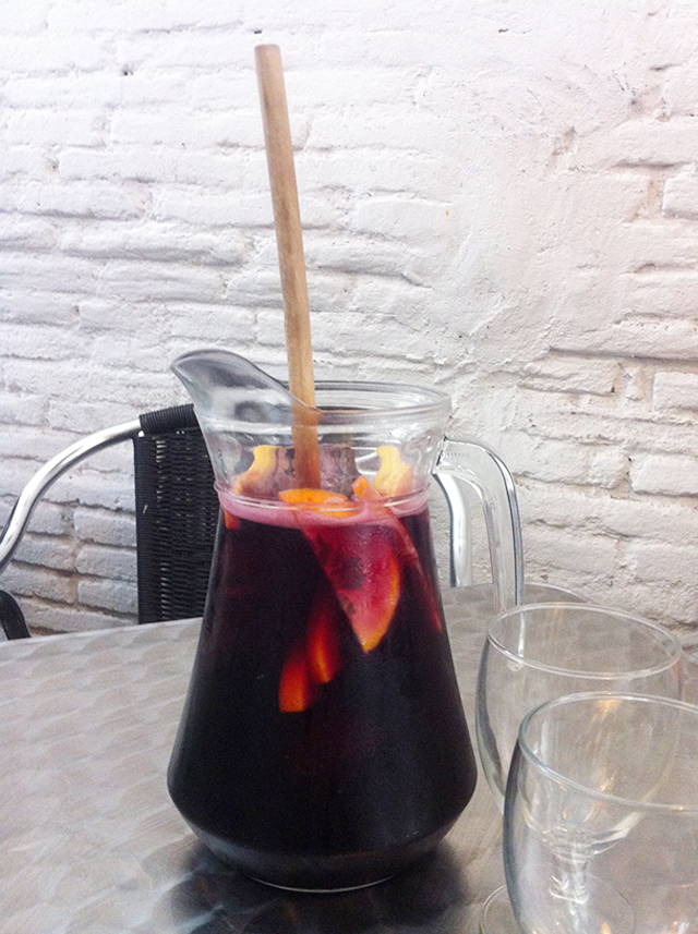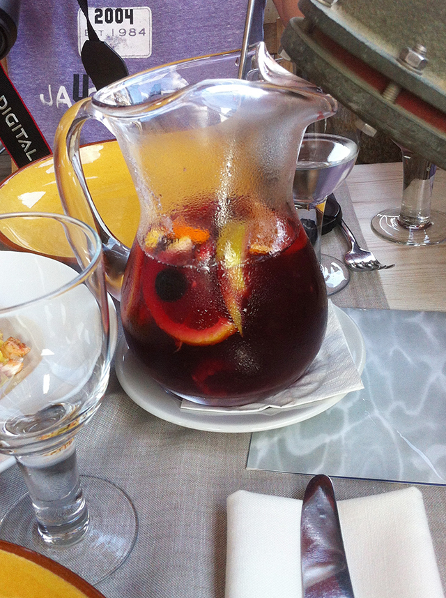 La Bona Sort – (Paella) Zu Mittag überkam uns dann der Hunger und wir wollten ein Restaurant in El Born ausprobieren, doch wir konnten uns mal (wie immer) nicht entscheiden. Mein Freund wollte gerne einen Mexikaner ausprobieren, doch leider war der bis auf den letzten Platz voll und mir war es vor allem wichtig, dass wir im Freien saßen, denn das Wetter war einfach traumhaft. In einer kleinen Seitengasse entdeckten wir dann das gut besuchte Restaurant La Bona Sort, das einen netten Innenhof hatte und da es echt nett aussah und unser Hunger immer größer wurde, entschieden wir uns dafür. Wir hatten mal wieder Paella und Sangria, ja wir sind einfach große Fans davon. Auch in diesem Restaurant hat beides wirklich lecker geschmeckt und mir persönlich hat dort der Sangria am besten geschmeckt. Der Innenhof war total süß eingerichtet und überall hingen Vogelkäfige mit kleinen Kanarienvögel, die vor sich her zwitscherten.