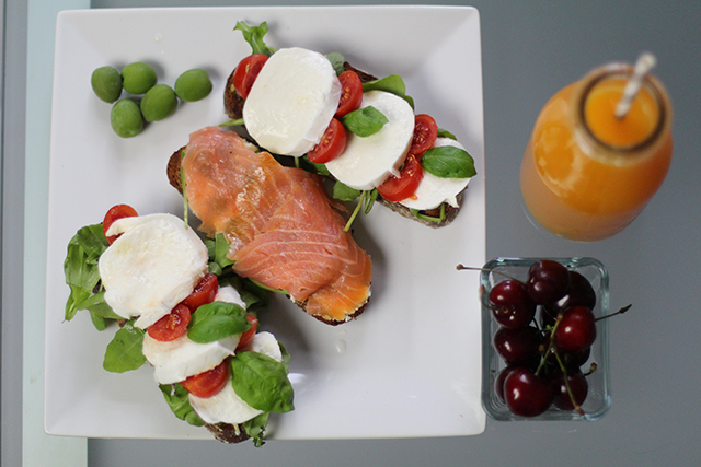 Eigentlich gibt es da nicht viel zu erklären, die Brote sind sehr schnell zubereitet. Einfach das Brot kurz antoasten, mit Pesto bestreichen, den Rucola, den Mozzarella und die Tomaten aufs Brot legen und fertig. Das selbe gilt für die Lachsbrote. Brot toasten, mit Frischkäse bestreichen, Rucola und Lachs und fertig. Wenn man frische Dille zuhause hat kann man das Lachsbrot damit noch etwas verfeinern. Mein heimlicher Favorit ist aber eindeutig das Mozzarella Brot.