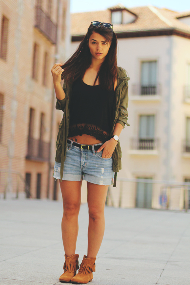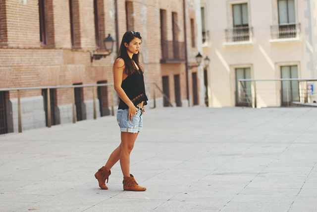 An unserem letzten Tag in dieser wunderschönen Stadt, die ich schon irgendwie vermisse, entschied ich mich wieder für einen ganz einfachen lässigen Look – wie immer nach dem Motto “bequem muss es sein”. Zu meiner Boyfriend Short und dem bauchfreien Top trug ich meine neuen heißgeliebten Boots, die ich vorort gekauft habe. Auch hier war es ähnlich wie bei meinem neuen Trenchcoat – Schon länger stehen Boots die ein bisschen Hippie und vor allem für den Frühling/Sommer geeignet sind auf meiner Must Have Liste (Ja da steht ziemlich viel drauf). Doch auch hier hat mich immer irgendetwas gestört – die Farbe, die Form, machen die Füße groß, usw… also wurde die Suche irgendwann auf Eis gelegt. Am ersten Tag unseres Städtetrips musste ich natürlich ins erstbeste Schuhgeschäft stürmen, und da standen sie, wie für mich gemacht, die perfekten Sommer Boots. Tja und den Rest der Geschichte brauch ich euch glaub ich nicht erzählen……