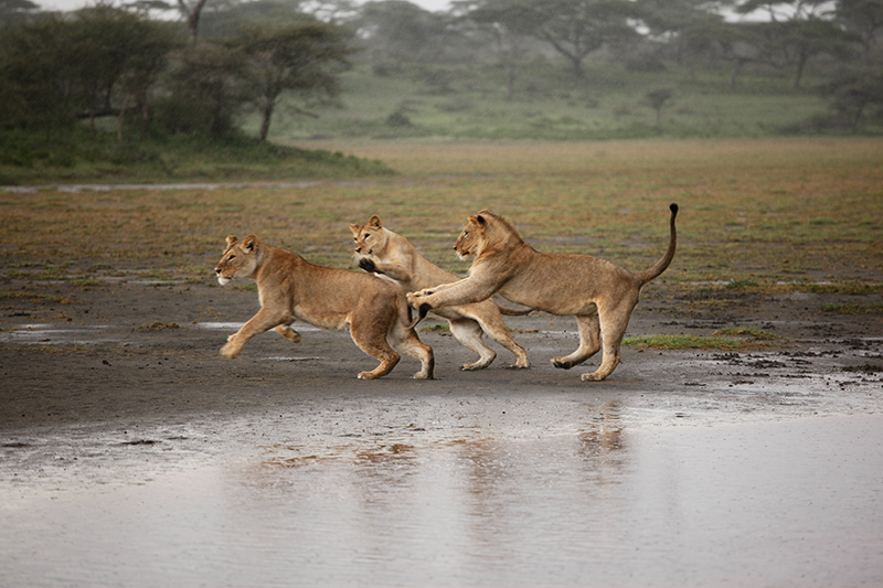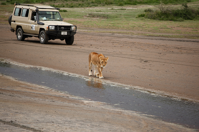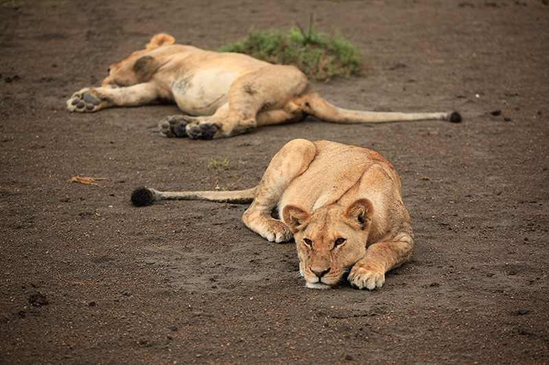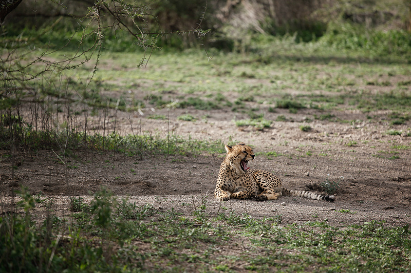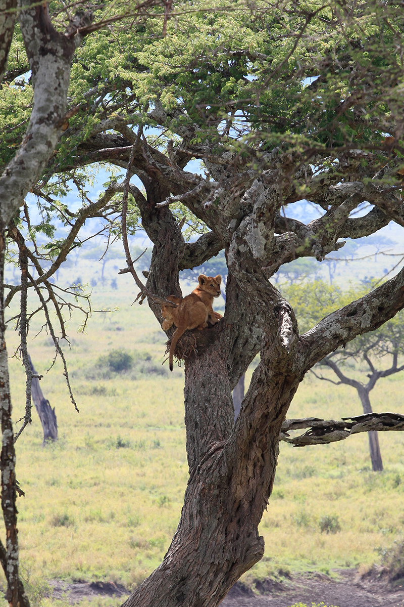 Ausgeschlafen ging es am nächsten Tag dann Richtung Serengeti. Die Fahrt dauerte an die 4 Stunden, doch auch dieses Mal ist es mir nicht so lange vorgekommen. Da sich die Landschaft dauernd so extrem verändert, gibt es immer etwas zu sehen. Erst fährt man durch Dörfer, dann wieder Ewigkeiten durch die Steppe und gelangt dann in einen Abschnitt, der mich total an den Elefantenfriedhof aus König der Löwen erinnert hat. Hier war außer kahlen Bäumen und viel Schlamm einfach gar nichts. Kein Tier, außer vielleicht mal eine Antilope, die sich verirrt hat konnte man hier sehen und man hatte einfach das Gefühl man ist in einer anderen Welt, einer ausgestorbenen Welt. An diesem Tag war ich das erste mal ein bisschen schlecht gelaunt, denn immerhin war es bereits der 3 Tag unserer Safari und keine einzige Raubkatze hat sich bis jetzt blicken lassen. Ich habe schon an der Agentur gezweifelt und meinen Schmollmund aufgesetzt. Klar weiß ich natürlich, dass man einfach Glück haben muss und die Natur macht was sie will, aber in diesem Moment war mir das alles egal. Gott sei Dank änderte sich meine Launa schlagartig, als wir in Ndutu ankamen und die ersten Löwen sahen. Ich grinste wie ein Honigkuchenpferd und die Kamera klickte im Sekundentakt. Zum grönenden Abschluss bekamen wir dann auch noch einen jungen Geparden vor die Linsen. Mit vielen tollen Eindrücken ging es dann ins Ndutu Halis Camp, wo wir endlich in richtigen Zelten (es hatte trotzdem ein Bett) schlafen durften. Mein Freunde meinte nur “Das ist ja wie beim Bundesheer”, aber mir gefiel es. Nach einer eiskalten Dusche (ich wollte nicht aufs warme Wasser warten) und dem besten Abendessen überhaupt, liesen wir den Abend am Lagerfeuer ausklingen. Ja und genauso und nicht anders habe ich mir die Safari vorgestellt.