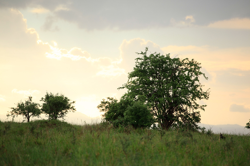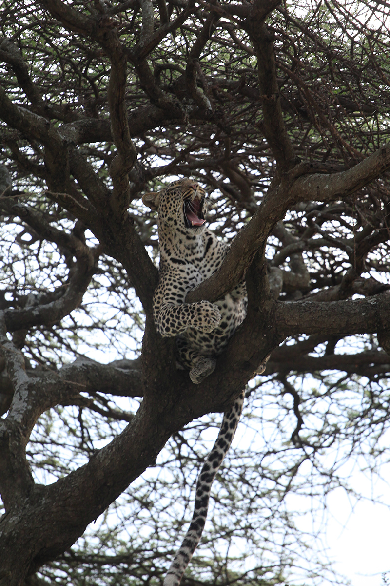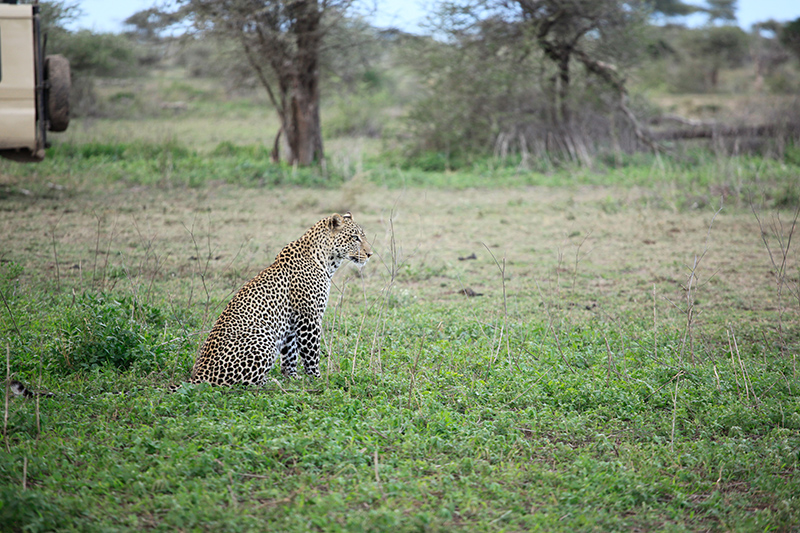 Am nächsten Morgen stand ich früh auf um mir den Sonnenaufgang anzusehen und ich kann euch sagen, ich habe noch nie soetwas schönes gesehen. Das erste Foto unter diesem Absatz wurde an diesem Morgen aufgenommen und es ist komplett unbearbeitet. Ihr könnt euch gar nicht vorstellen wie unglaublich schön dieser Sonnenaufgang war. Nach einem ausgieben Frühstück ging es Richtung Serengeti Nationalpark, wo noch mehr Raubkatzen auf uns warteten. Auch dieser Nationalpark war wieder ganz anders als die, die wir bisher gesehen hatten. Erst war Kilometer lang nichts außer trockenes Gras, Zebras und Knus und dann wurde auf einmal alles Grün und dichter. An diesem Tag sahen wir auch den ersten Leoparden. Diese Raubkatze ist nur ganz schwer zu sehen und man muss echt Glück haben. Wir konnten ihn nur aus (geschätzt) 100 Meter Entfernung durch ein Fernglas beobachten. Ein bisschen entäuscht war ich schon, dass wir ihn nicht näher gesehen haben und ein Foto schießen konnten. Doch besser so als gar nicht, hab ich Recht?