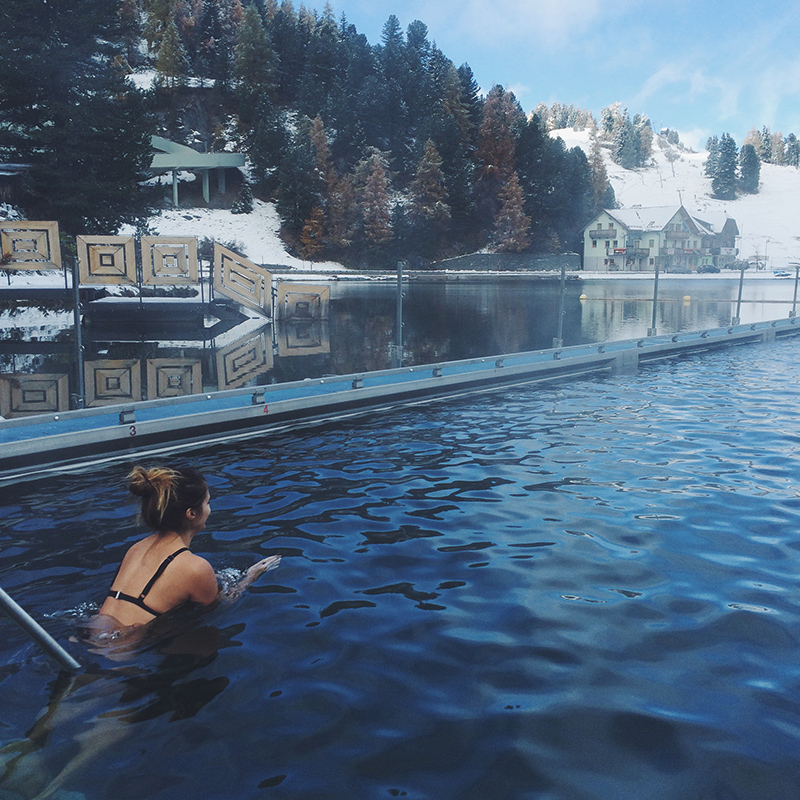 Nach dem Frühstück machte ich wieder einen ausgiebigen Spaziergang mit Tobi und danach ging es für mich ein paar Stunden in den Wellnessbereich. Ich machte es mir in einer Liege am Pool bequem und döste gleich mal ein paar Stunden vor mich hin. Der Spabereich ist riesengroß und echt sehr schön. Es gibt einen Indoorpool und drei kleine beheizte Außenbecken. Im Poolbereich findet man außerdem ganz tolle Aromaduschen, die ich täglich genutzt habe, da sie super gegen meine Erkältung waren. In der Saunalandschaft findet man einen großen Ruhebereich mit kuscheligen Betten mit Blick auf den See. Ganz besonders und auch ein Highlight ist das beheizte Seebecken. Ja ihr habt richtig gehört, man kann dort das ganze Jahr über im See schwimmen, sogar wenn es schneit. Der See ist 7 Meter tief und die oberen 2 Meter des abgetrennten Beckens werden beheizt. Es ist zwar doch etwas frisch, aber nach der Sauna oder zum Längenschwimmen stelle ich mir das unglaublich toll vor. Die Saunalandschaft musste ich auslassen, da ich ziemlich Erkältet war und mit meinem Kreislauf zu kämpfen hatte.