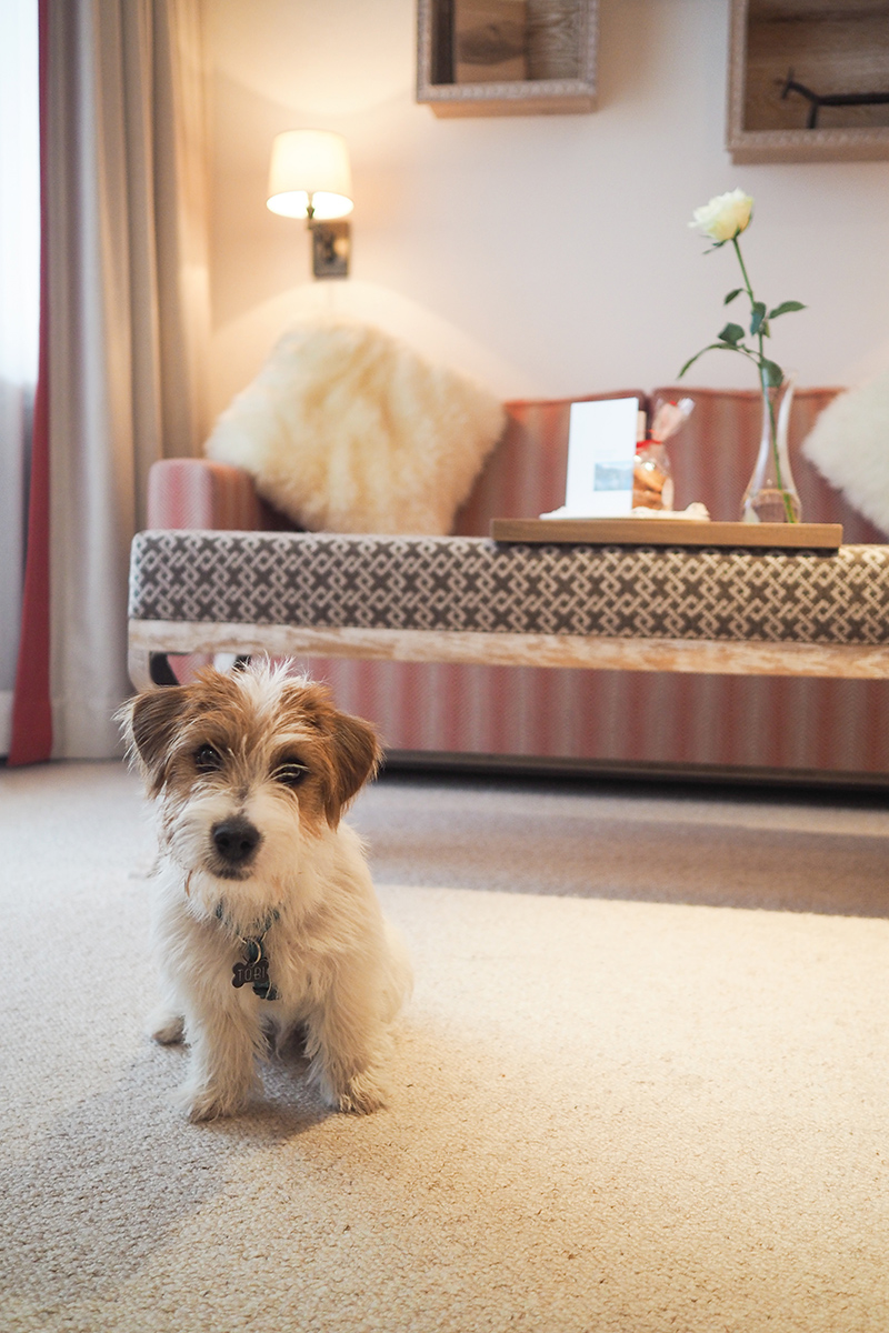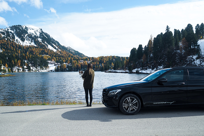 Am Donnerstag in der Früh ging es Richtung Kärnten. Danke Wiesenthal hatten wir einen richtig tollen fahrbaren Untersatz und mein Freund strahlte als er aufs Gas des neuen Mercedes C400T4M stieg. Ich machte es mir auf dem Beifahrersitz bequem und genoss die tolle Aussicht. Nach einer 3 stündigen Fahrt kamen wir auf der verschneiten Turracher Höhe an und wurden sehr herzlich mit einem Gläschen Sekt und einer Gulaschsuppe begrüßt. Auch Tobi bekam ein Leckerli und fühlte sich sofort wohl im Hotel Hochschober. Zur Info für alle Hundebesitzer, eure Vierbeiner sind herzlich willkommen, nur in den Spa-Bereich und ins Restaurant dürfen sie nicht mit, aber das ist ja verständlich. Ihr könnt aber trotzdem gemeinsam mit eurem Hund zu Abend essen und müsst dafür einfach bei der Rezeption Bescheid geben, dann wird vor dem Restaurant ein Tisch gedeckt.