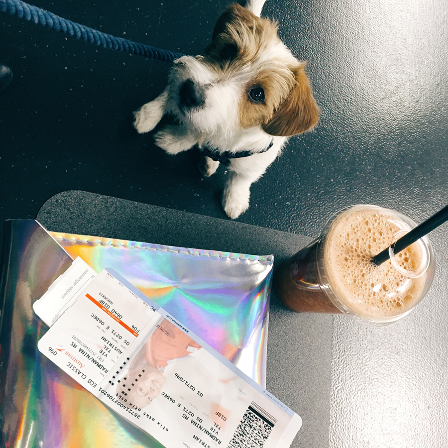 Wichtig ist dass ihr vor der Abreise auch dem Tierarzt noch einen Besuch abstattet, damit ihr auch sicher gehen könnt, dass der Hund gesund und bereit für den Flug ist. Meisten gibt es im Reisepass eine Seite, wo der Tierarzt angibt, dass der Hund fliegen kann. Dann ist wichtig, dass ihr eine passende Tasche besitzt und alle wichtigen Dinge für den tierischen Begleiter bei der Hand habt. Man darf natürlich trotzdem ganz normal ein Handgepäck mithaben und hat somit genügend Platz. Ich habe Tobi Leckerlis, einen kleinen Wasserbehälter, einen Kauknochen und ein Spielzeug eingepackt. Sicherheitshalber hatte ich auch noch einen Beißkorb mit, denn man weiß ja nie. Ja und dann konnte es auch schon losgehen, ich bestellte ein Taxi (achtung auch da immer Bescheid geben, dass ihr mit Hund reist) und schon konnte es zum Flughafen gehen.