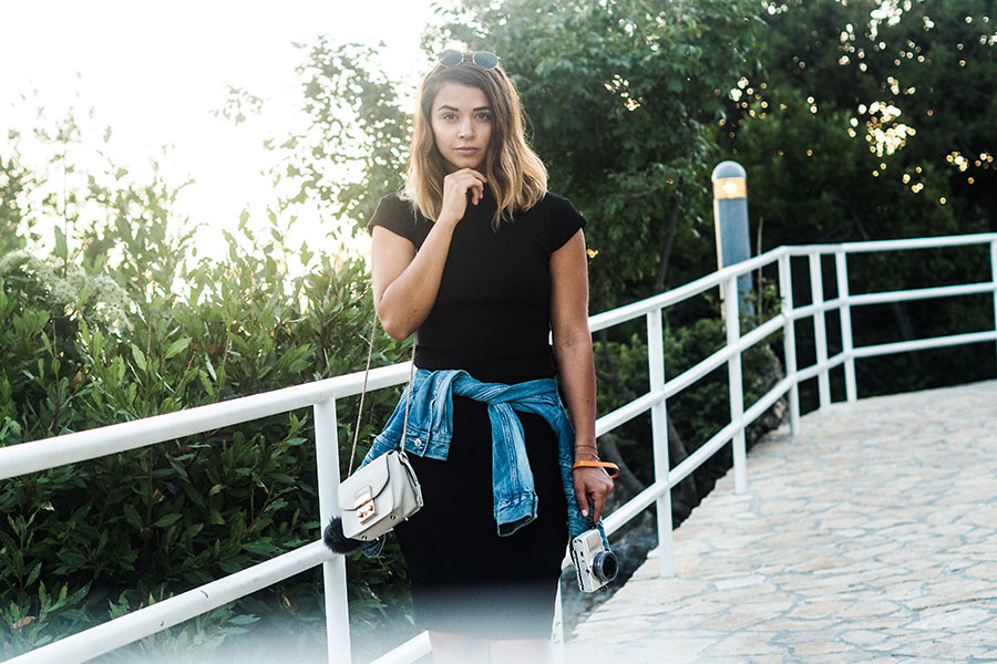 Während ich gerade am Weg nach Griechenland bin, habe ich gleich mal ein Outfit aus Kroatien für euch, sogar das einziges das wir in den Tagen fotografiert haben. Dieses Mal habe ich im Urlaub beschlossen mal so wenig wie möglich zu fotografieren und die Tage wirklich zu genießen. Auch beim Kofferpacken habe ich mir dieses Mal gar keine Gedanken gemacht und einfach alle Stücke auf die ich gerade Lust hatte in den Koffer zu werfen – ganz ohne daran zu denken, dass man vielleicht ein Outfit shooten könnte. Ich hatte zwar ein bisschen Make-Up mit aber das wurde gleich komplett im Koffer gelassen, denn so ein paar ungeschminkte Tage sind auch mal ganz fein. Am letzten Abend haben mein Freund und ich das Licht aber dann doch genutzt und dieses schwarze Kleid geshootet. Es hängt schon ziemlich lange in meinem Schrank und ich glaube ich habe es auch schon 2 oder 3 Mal angehabt, aber ich brauche immer ein bisschen Überwindung. So ganz enge Kleider sind ja normalerweise nicht so meines, aber dieses hat es mir damals einfach angetan und ich musste es haben. Einfach mal ein bisschen den Bauch einziehen und dann geht das schon.
