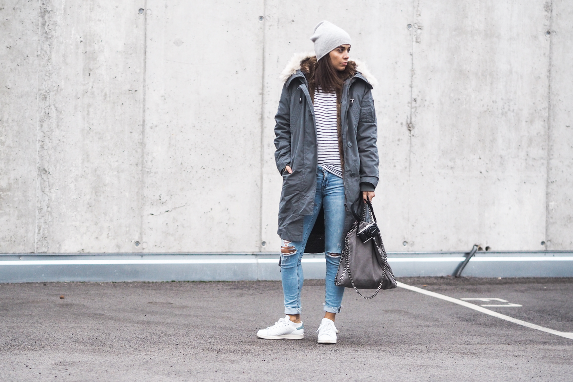 Unglaublich wie eisig kalt es draußen ist. Noch viel schlimmer als die Kälte ist aber eigentlich der Wind und am liebsten würde ich den ganzen Tag nur unter meiner warmen Decke liegen Tee trinken und mich nicht bewegen. Doch das spielt es natürlich nicht und so heißt es warm einpacken. Viele von euch werden sich jetzt aber sicher denken, was warm einpacken und wieso rennt sie dann mit nackigen Knöcheln herum? Tja irgendwie kann ich diese Hosen einfach nicht im Schrank lassen und muss sie auch in der kalten Jahreszeit tragen. Man muss aber sagen, dass dieser Look vom vergangenen Wochenende ist und da war es noch wesentlich wärmer. Ja und solange ich oben warm eingepackt bin, halte ich das eigentlich ganz gut aus. Nur die Hosen mit den Löchern werde ich wohl oder übel die nächsten Wochen im Schrank lassen, denn wenn es dann überall hineinzieht, ist es dann doch nicht so lustig. Den kuscheligen warmen Parka habe ich mir übrigens vor kurzem bei Asos gegönnt und bin ganz verliebt – Perfekt für die kalte Jahreszeit und da dürfen dann die Knöchel ruhig nackig sein.