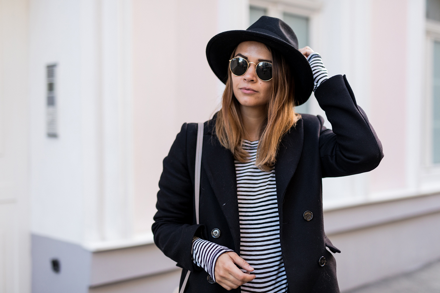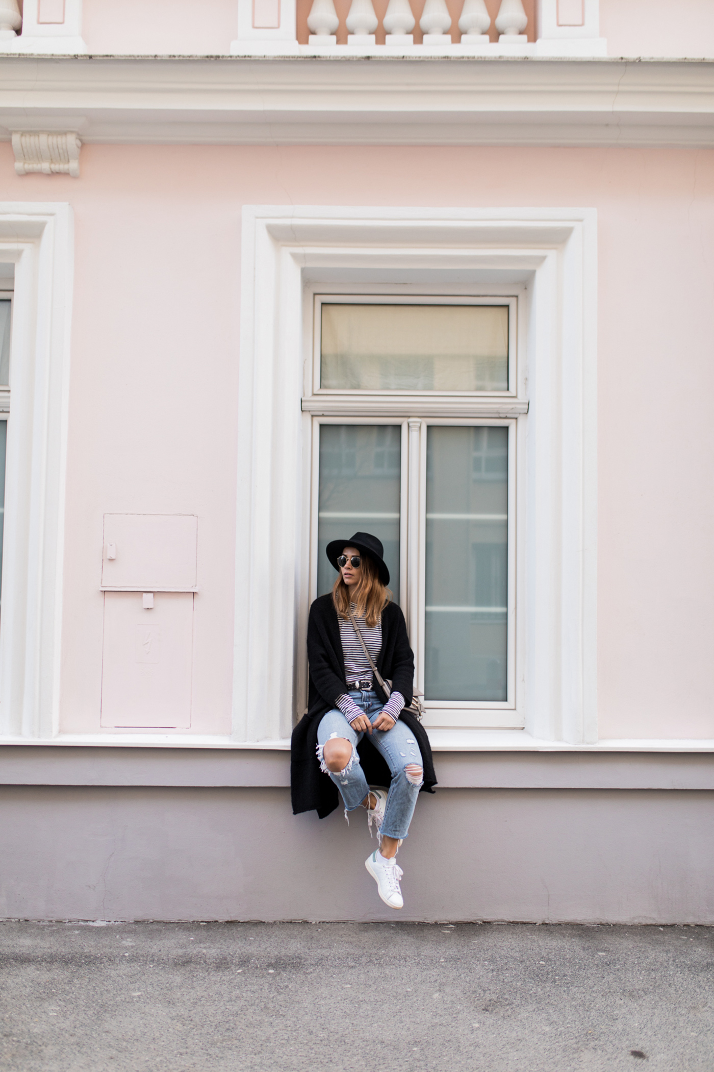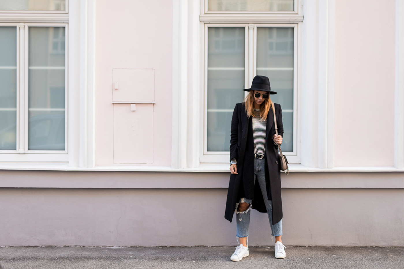Es gibt so Phasen im Leben da ist man unheimlich gerne für sich alleine und ich glaube ich befinde mich seit Ewigkeiten mal wieder mitten drinnen in so einer Phase. So wie momentan hatte ich das glaube ich noch nie, denn ich war/bin eigentlich jemand der unheimlich gerne unter Menschen ist – In letzter Zeit ist das aber ganz anders und es fühlt sich sehr gut an. Wenn die Sonne scheint schnappe ich mir Tobi und schlendere einfach durch die Gegend, lass mich treiben und mache mir Gedanken über Gott und die Welt. Am Abend nach dem Sport, setze ich meine Kopfhörer auf und drehe die Musik laut auf und gehe einfach mal zu Fuß nachhause. Oder ich sitze einfach nur gemütlich mit einem Glas Wein auf der Couch und entspanne (Mein Plan für heute Abend, nach dem Sport). Für mich sind diese Momente in den letzten Wochen sehr wichtig geworden, denn da kann ich mal so richtig aus meinem Alltag ausbrechen und mich nur um ich kümmern. Umso älter ich werde (oh gott wie das klingt), umso wichtiger ist es mir auch mal wirklich Zeit für mich zu haben. Ja und jetzt wo es wieder so schön draußen ist, macht es gleich noch viel mehr Spaß durch die Gegend zu schlendern, die Sonne zu genießen, vielleicht ein Eis zu essen und Leute zu beobachten. Diese hübsche Wand habe ich bei einen dieser Spaziergänge entdeckt und die liebe Denise war so nett und hat am Montag nach unserem Kinobesuch (ich müsst euch unbedingt die Schöne & das Biest anschauen) gleich ein paar Fotos von mir gemacht. Ich bin momentan wieder so verliebt in den 7. Bezirk und kann mir irgendwie gar nicht vorstellen, nicht so zentral zu wohnen.