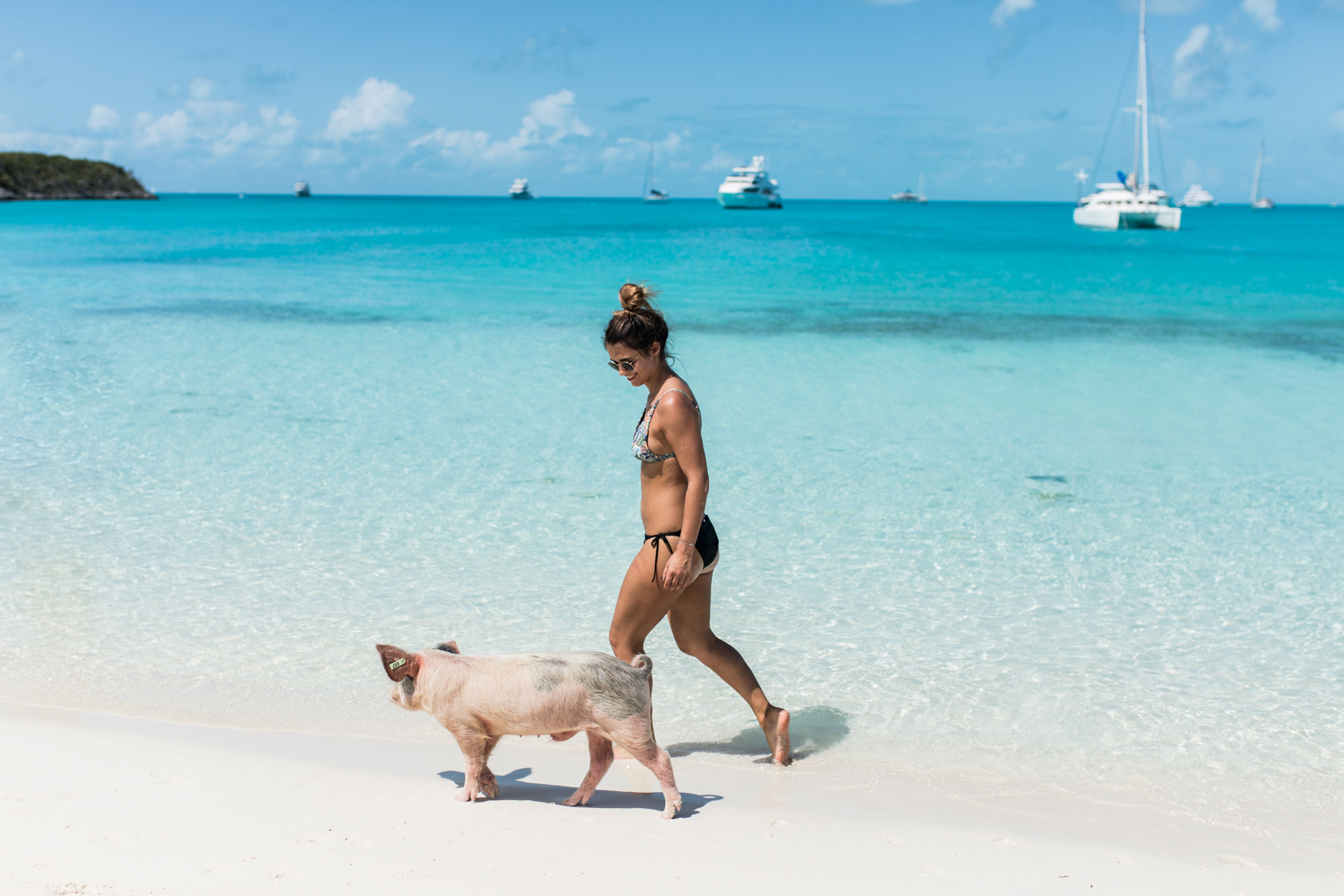 Heute habe ich aber endlich den ersten Bahamas Beitrag inkl. Video von Anna für die euch. Bevor ich alle Infos rund um die Exumas und unseren Aufenthalt mit euch teile, möchte ich heute ein bisschen was über unseren Tagesausflug erzählen. Es gab ein paar Gründe wieso wir uns für die Exumas entscheiden haben und einer war auf jeden Fall der Strand mit den wilden Schweinchen. Es gibt unzählige Touren und man sollte sich hier auch auf jeden Fall erkunden, damit man auch das richtige bzw. passende findet. Wir haben uns für Robert’s Island Adventures entschieden und die Tour war echt super nett. Sie wurde uns von unserer Airbnb Gastgeberin empfohlen und sie hat sogar alles für uns gebucht und wir mussten uns um nichts kümmern. Ich habe zwar keinen Vergleich wie die anderen Touren aussehen, aber ich diesen Tagesausflug kann ich nur empfehlen. Wir haben unheimlich viel gesehen, die Gruppengröße war voll ok (wir waren insgesamt 10 Personen) und der Tourguide und Captain hat und es viel erzählt. Der Preis war zwar nicht ohne, aber wer auf die Bahamas fliegt, dem muss klar sein, dass hier nichts wirklich billig ist. Gekostet hat uns die Tagestour 185$ pro Kopf und das Mittagessen oder Wasser war hier nicht inkludiert. Man wird aber vom Hotel/Airbnb abgeholt und verbringt dann den ganzen Tag am Boot und erkundet die Gegend.