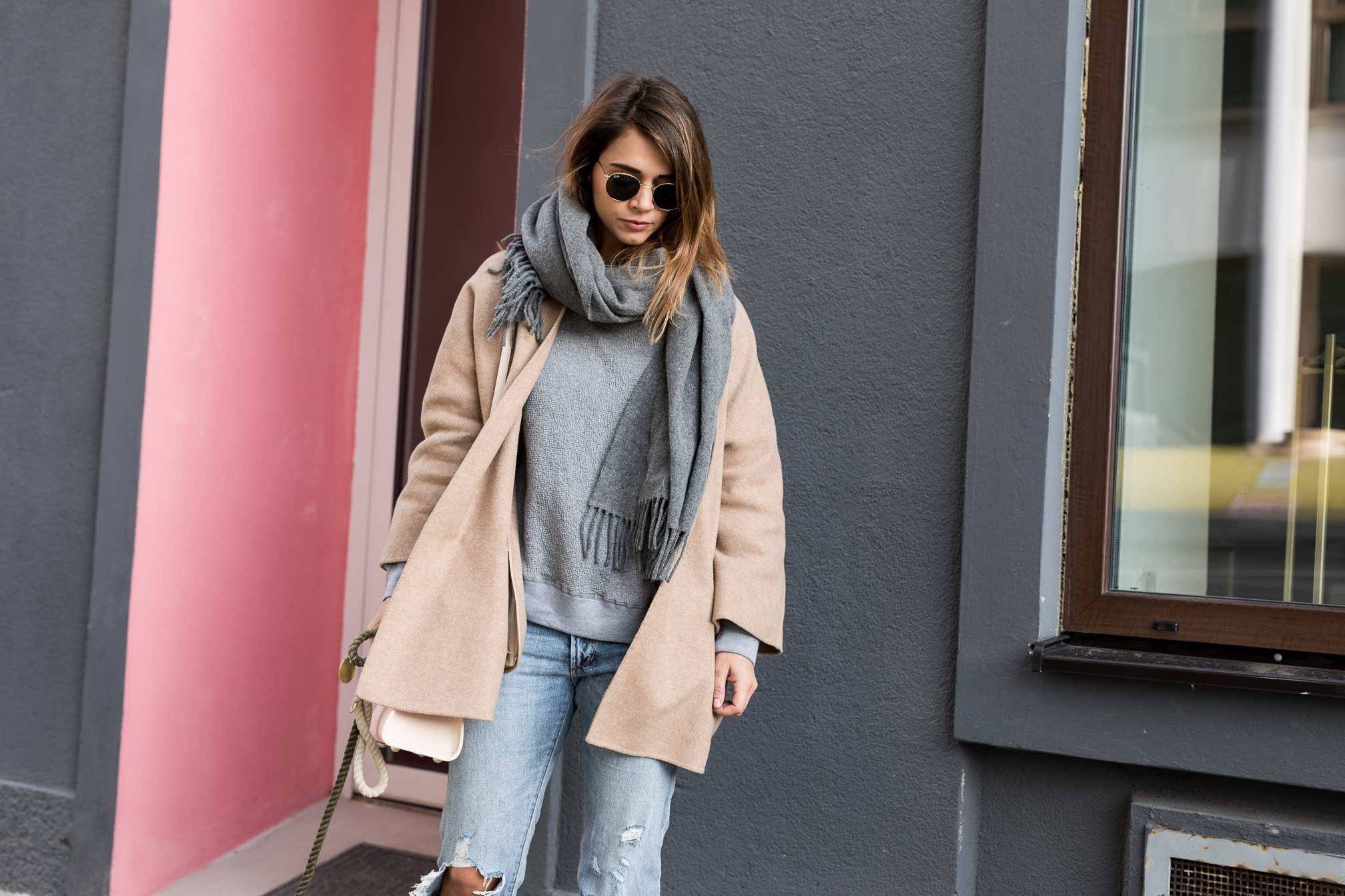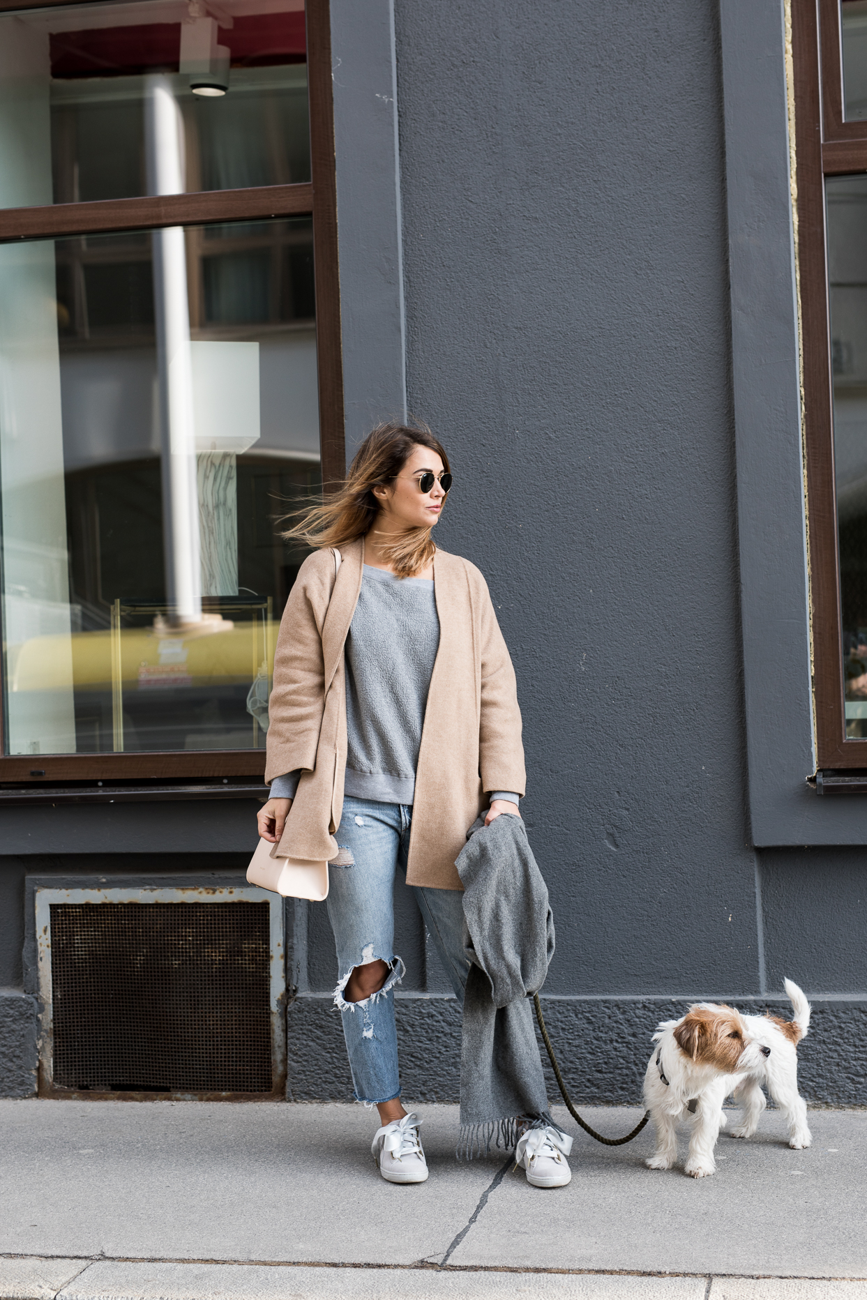 Während ich gerade gemeinsam mit der lieben Anna im Flieger am Weg Richtung Bahamas sitze, habe ich zum Wochenstart gleich einen frühlingshaften Look für euch. Im Vordergrund mal wieder die Farbe grau, wie kann es auch anders sein. Diesen Sweater von Diesel habe ich in den letzten Wochen fast Non-Stopp getragen und ich bekomme immer noch nicht genug davon. Ich liebe den lockeren Schnitt und dass man ihn auch ganz gemütlich über die Schulter hängen lassen kann. Momentan könnte ich wirklich jeden Tag Sweater tragen und meine Sammlung wächst und wäscht. Die hübschen Schuhe von Puma musste ich leider Gottes zurückschicken, da sie irgendwie einen Fehler hatten und sich das Rauleder schon nachdem ersten Mal tragen verfärbt hat. Seitdem warte ich eigentlich, dass sie online wieder aufgestockt werden, denn auch Sneakers kann man einfach nicht genug haben.