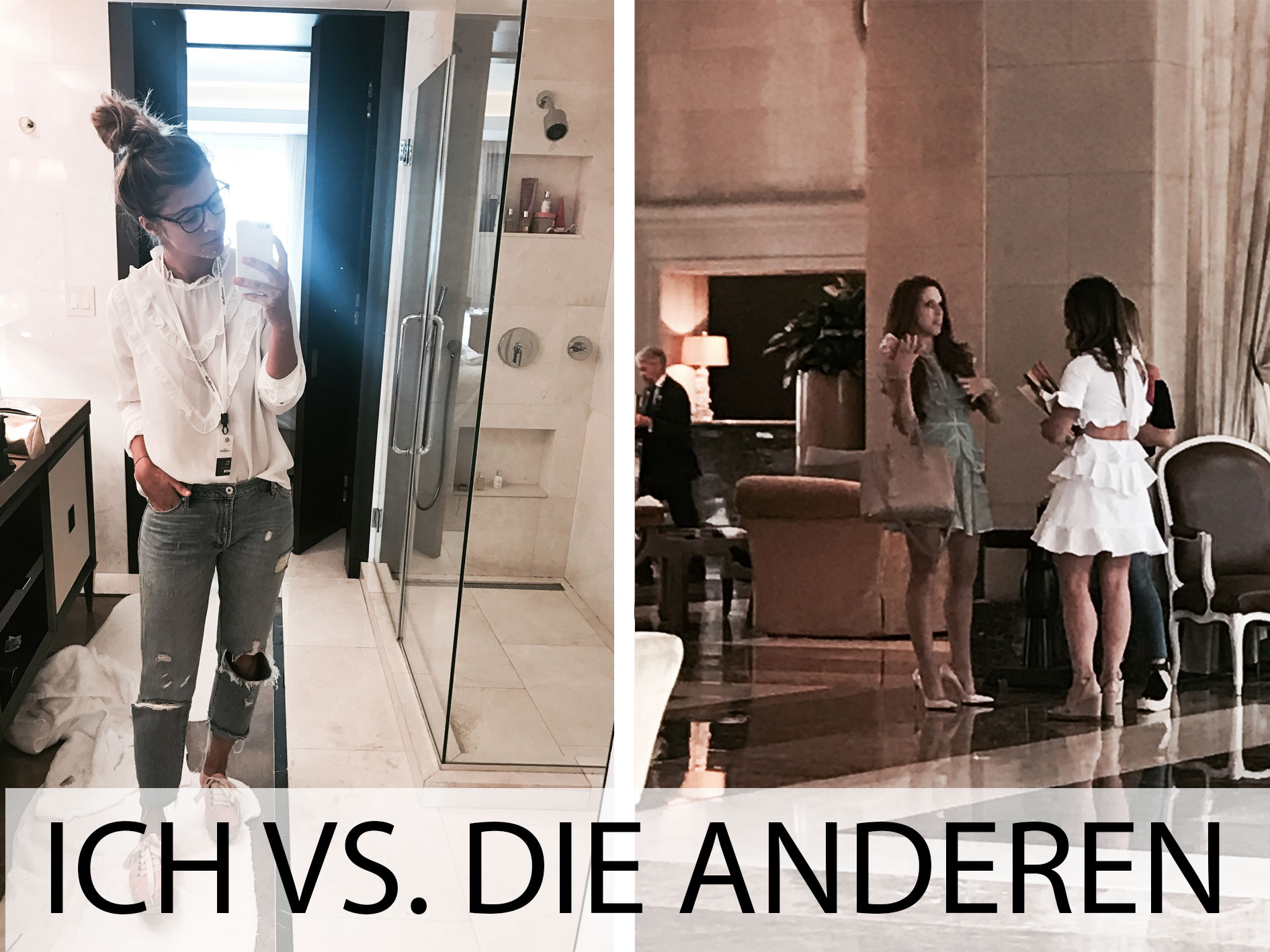 Schon am ersten Abend als wir bei der Poolparty ankamen, war ich total geschockt. Es war mir zwar klar, dass mich dort ein Haufen gestylter Fashionblogger erwarten wird, aber ich hatte echt das Gefühl ich bin in einem amerikanischen Teenie Film gelandet. 20 Schichten Make-Up, falsche Wimpern die einfach nicht mehr schön aussehen, kurze knallbunte Kleider, aufgespritzte Lippen und schrille übertrieben freundliche Stimmen – Ich wusste gar nicht wo ich zuerst hinschauen sollte. Ja das ist wohl Amerika und genau auf so etwas war ich auch eingestellt, aber wenn man das dann wirklich so vor sich sieht, ist man doch irgendwie geschockt. Es ist doch irgendwie erschreckend wie viel gekünstelt und unecht ist. Ihr könnt euch sicher vorstelle wie ich mich zwischen diesem Haufen von Barbies gefühlt habe. Es war einfach so gar nicht meine Welt und ich habe dank dieser Konferenz immer mehr gemerkt in welche Richtung es für mich gehen soll. Ich will nicht jedem eine perfekte Welt bzw. ein perfektes Leben vorspielen – wir wissen doch alles dass es das nicht gibt. Umso mehr ich mir diese ganzen extrem gestylten Frauen angesehen habe, umso weniger Lust hatte ich mich selber herzurichten. Diese Konferenz sollte doch dafür da sein um etwas zu lernen und nicht um zu zeigen, wer mehr Extensions in den Haaren hat. Natürlich waren nicht alle Blogger so, aber auf den Großteil hat diese Beschreibung sehr gut gepasst. Anna und ich haben uns dann schon einen Spaß draus gemacht, denn man konnte ganz genau erkennen wer aus Amerika und wer aus Europa kommt. Ja und an diese Leute haben wir uns dann auch in den letzten Tagen gehalten.