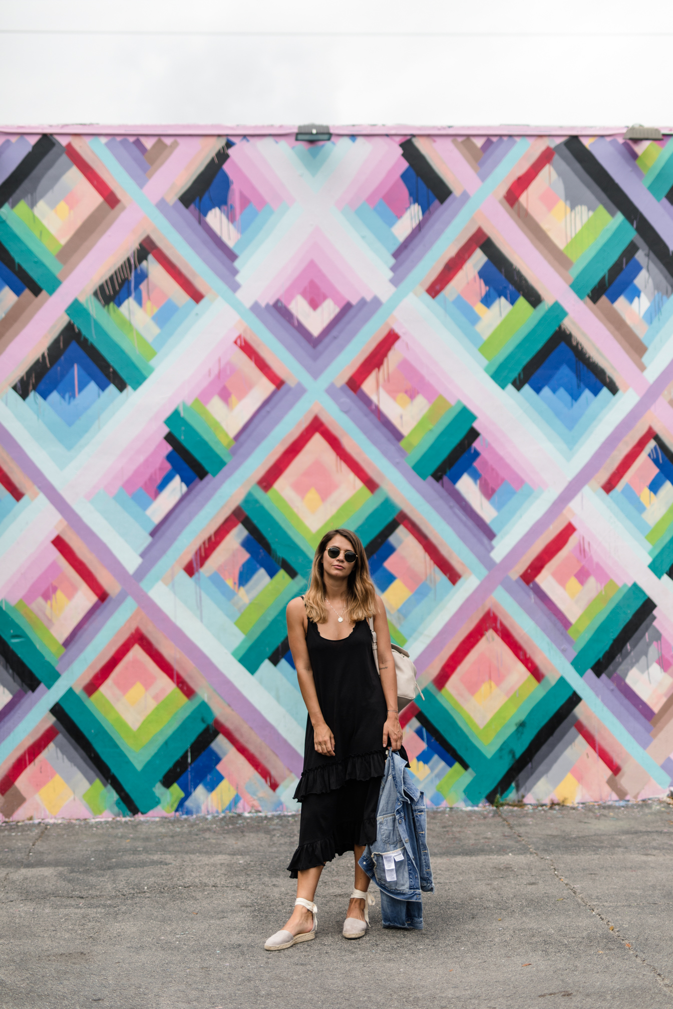 An unserem letzten Tag in Miami ging es für uns nach Wynwood. Nicht nur weil ich dort einen Tattoo Termin (in einem Penthouse!) hatte, sondern auch weil die Gegend momentan unglaublich angesagt ist. Mit der lieben Nelly im Schlepptau haben wir also dieses Viertel erkundet und natürlich haben wir es uns nicht nehmen lassen vor den bunten Wänden zu shooten. Wenn schon mein Outfit nicht so farbenfroh ist, dann darf es wenigstens der Hintergrund sein, richtig? An diesem Tag habe ich mich für ein gemütliches lockeres Kleid von Zara entschieden und bequeme Espadrilles – wenn man den ganzen Tag unterwegs ist und eine Stadt erkundet, muss das Outfit vor allem bequem sein. Ich habe mir dann noch kurzerhand den Rucksack von Anna ausgeliehen, weil er einfach perfekt dazu gepasst hat und perfekt für einen Sightseeing Tag ist. Auf der Reise habe ich meine Vorliebe für Rucksäcke entdeckt und ich glaube ich muss mir auch noch einen für den Alltag zulegen.