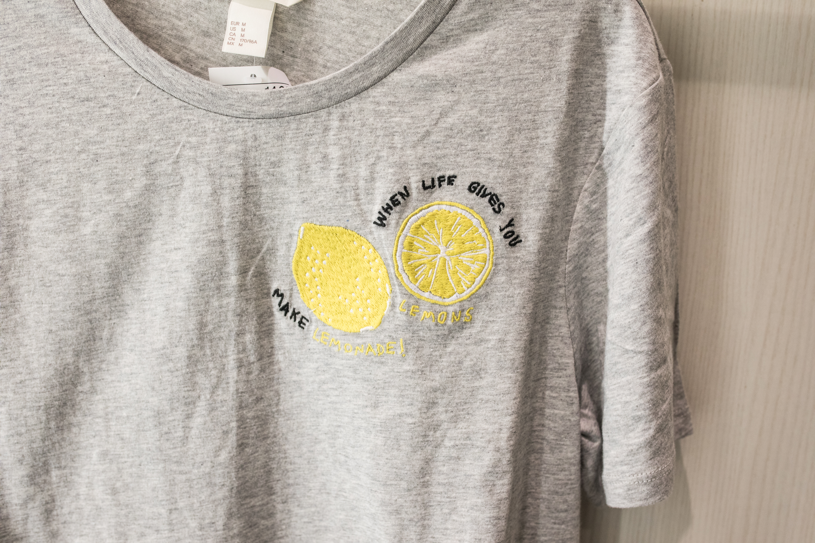 – Neben Band Shirts sind auch Shirts mit Prints wieder unheimlich angesagt und meine Sammlung wächst und wächst und auch dieses Mal durfte ein neues Teil bei mir einziehen. Sehr beliebt sind vor allem Shirts mit Früchten, wie Melonen oder wie in meinem Fall Zitronen.