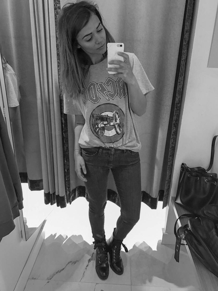 – Was bei mir im Kleiderschrank auf keinen Fall fehlen darf sind Band Shirts und endlich habe ich eines gefunden, dass mir nicht nur gut gefällt und steht, sondern dass auch ein bisschen größer geschnitten ist. Ihr wisst ja bei mir darf es ruhig immer ein bisschen oversized sein.