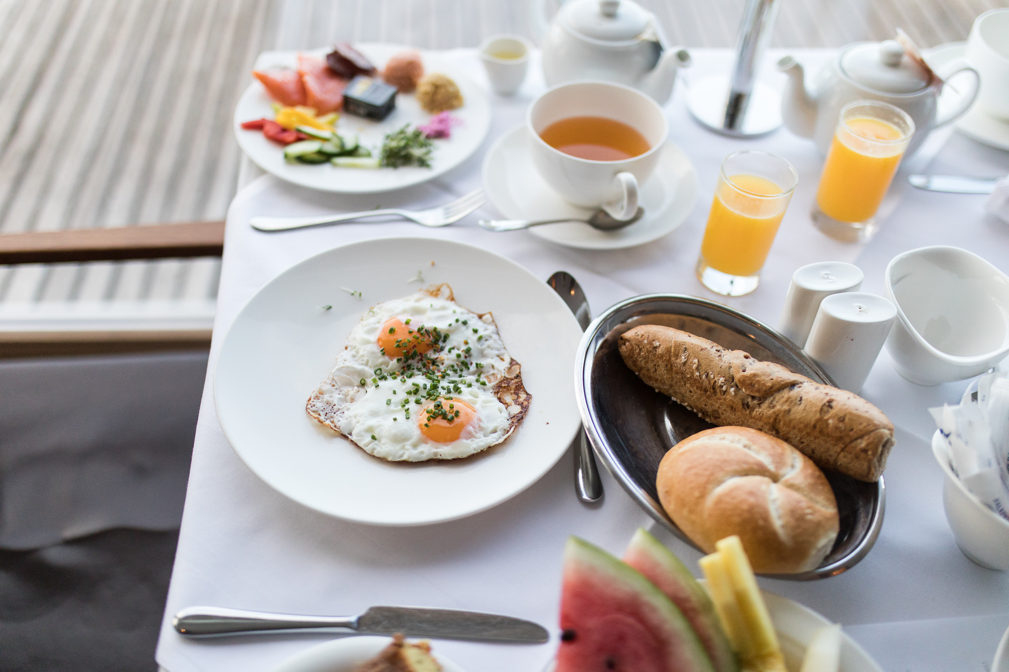 Am Morgen wurden wir mit einem riesengroßen Frühstücksbuffet auf den Spa- Tag vorbereitet. Auch hier gab es wirklich alles was das Herz begehrt Frischen Kuchen, Obst, Omlettes, frisch gepressten Orangensaft, Lachs, Wurst, Käse und Müsli – es hat uns an nichts gefehlt.