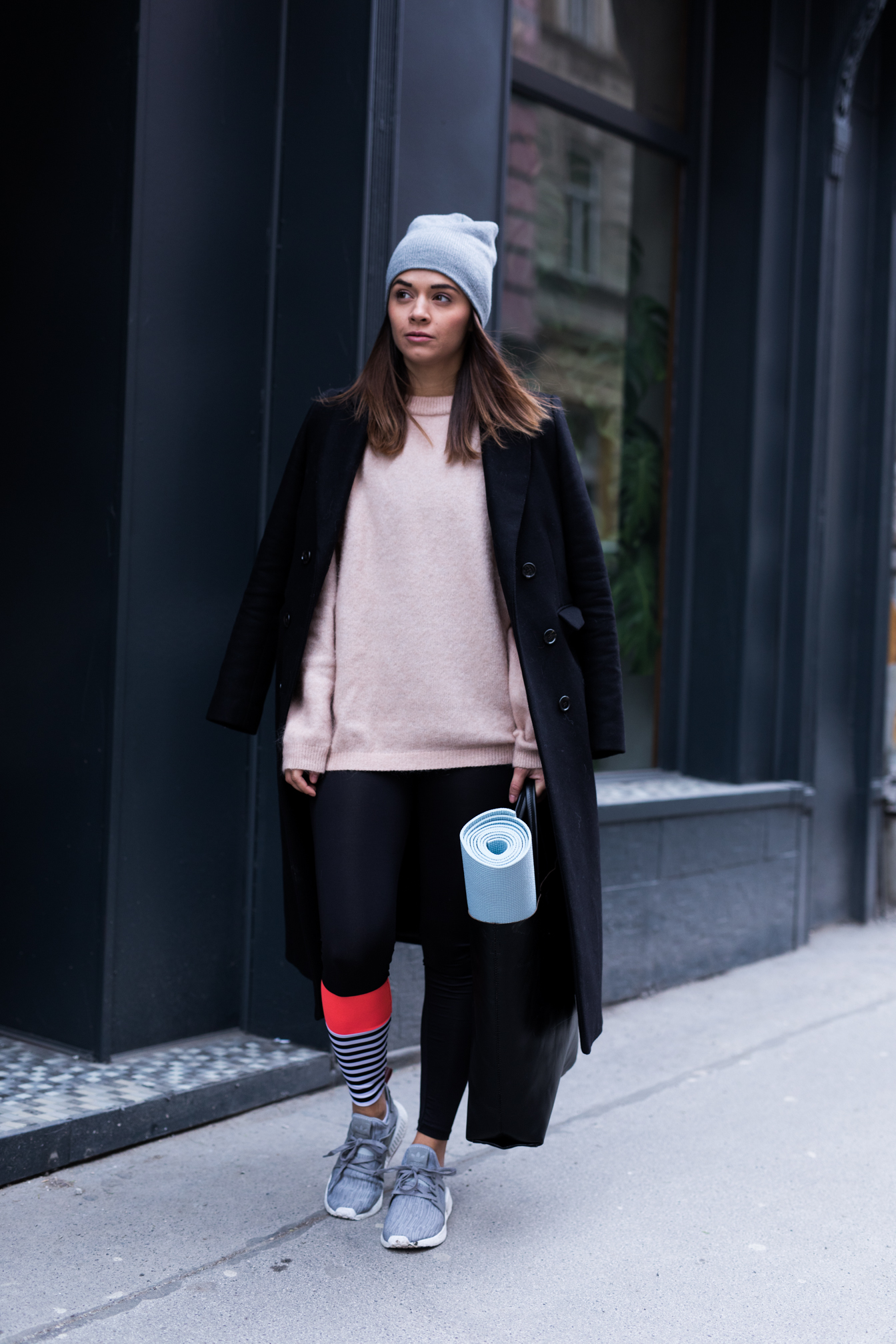 Wow, als ich diese Fotos gestern in meinen Entwürfen gefunden habe, dachte ich mir, die muss ich schleunigst mit euch teilen. Mir wird ja schon selber ganz heiß, wenn ich mich in diesen ganzen Schichten sehe. Gott sei Dank ist die kalte Jahreszeit aber vorbei und endlich ist der Sommer in Wien angekommen. Die dicken Mäntel und Pullover können endlich für die nächsten Monate im Schrank bleiben und gegen Shorts getauscht werden. Trotzdem möchte ich euch dieses Outfit nicht vorenthalten, denn es war im Winter mein liebster Look, wenn ich am Weg zum Sport war. Außerdem möchte ich ein bisschen etwas zu meiner momentanen Sportroutine und wieso in den letzten Wochen weniger zum Thema gesunde Ernährung und Sport hier am Blog erschienen ist erzählen.