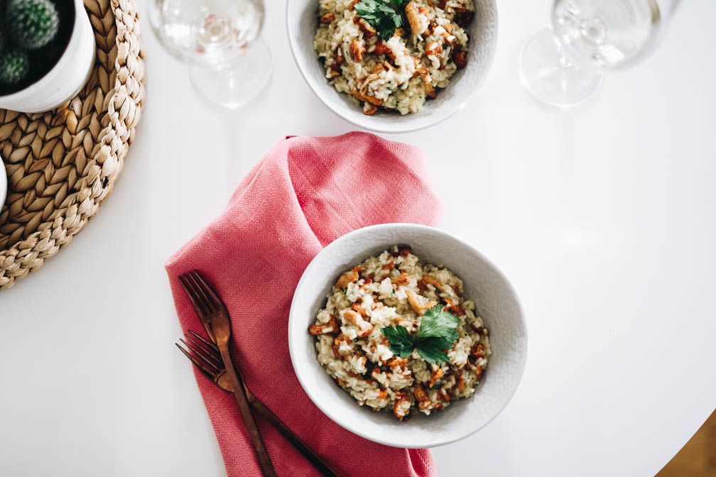 Ich weiß nicht wie es euch geht aber ich liebe Eierschwammerl und wenn die Saison beginnt dann könnte ich mich von nichts anderem mehr ernähren. Letzte Woche habe ich von der lieben Frau Tau einen ganzen Kilo direkt aus dem Wald bekommen und der wurde natürlich sofort verarbeitet. In den letzten Jahren habe ich schon mein Eierschwammerl Gulasch und auch meine gefüllten Pitabrote mit euch geteilt und dieses Mal habe ich mich an einem leckeren Risotto probiert und das Ergebnis war wirklich unglaublich gut. Ja und bevor die Schwammerlzeit wieder vorbei ist (Das geht ja leider immer viel zu schnell), teile ich heute gleich das leckere Rezept mit euch.Vergesst auf keinen Fall die Zitrone, denn die verleiht dem Risotto einen unglaublich guten Geschmack.