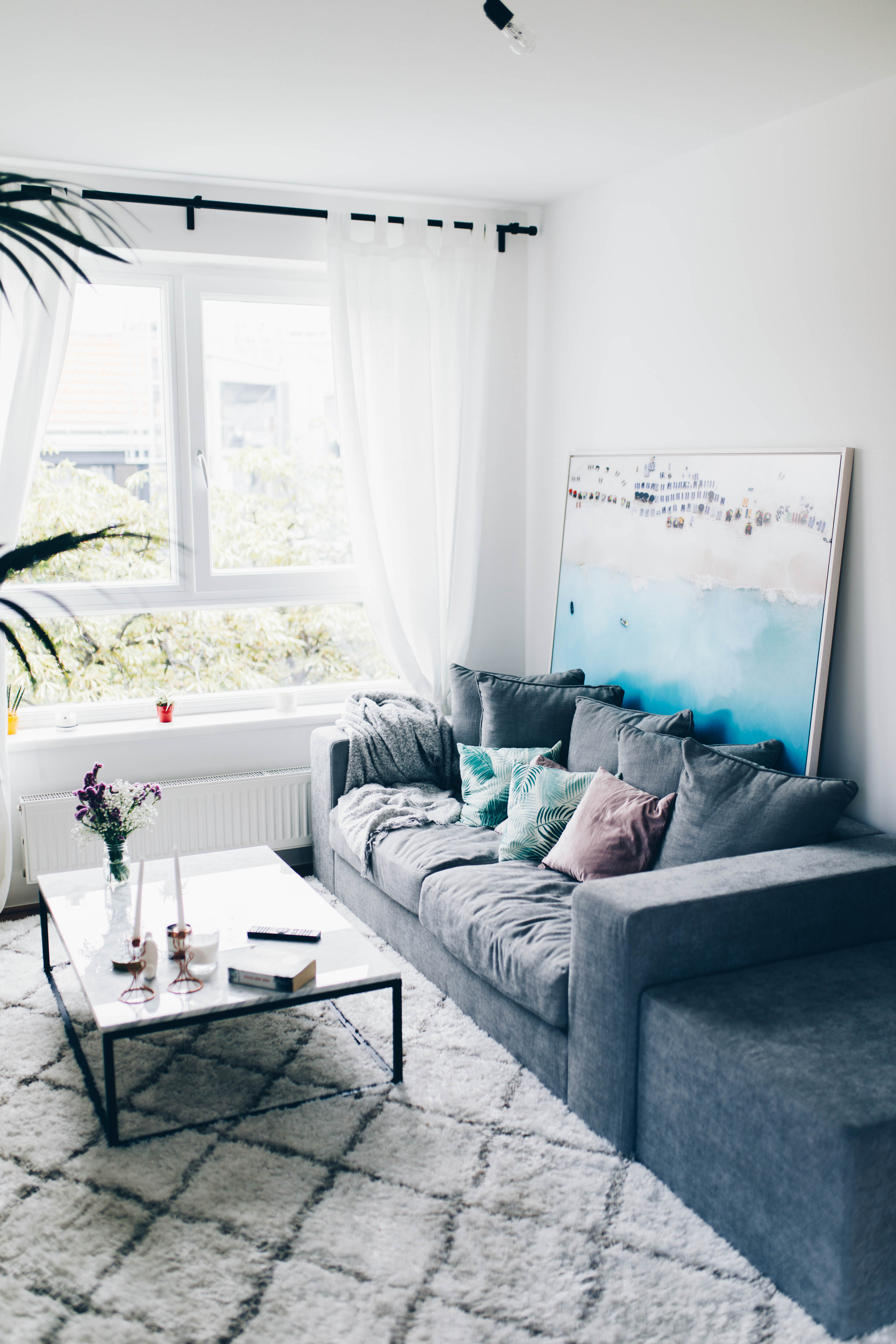 Es ist endlich soweit, heute zeige ich euch weitere Eindrücke aus meiner neuen Wohnung. Es hat etwas gedauert, aber gut Ding braucht Weile und ich wollte unbedingt noch auf mein wunderschönes Bild von Thomas Clarke aus der Lumas Gallery warten, bevor ich euch mein Wohnzimmer zeige. Ich hatte eigentlich von Anfang an genaue Vorstellung wie mein Wohnzimmer aussehen soll und was für Möbel ich möchte, doch ob es dann alles am Ende auch wirklich zusammenpassen würde wusste ich nicht. Mir gefallen nämlich sehr viele Dinge und wenn man dann mal mehrere Teile zusammenwürfelt kann das auch schief gehen. Ich muss aber sagen, dass ich richtig happy mit dem Ergebnis bin und mich richtig wohl fühle. Endlich habe ich ein Wohnzimmer wo ich mich zurückziehen und entspannen kann.