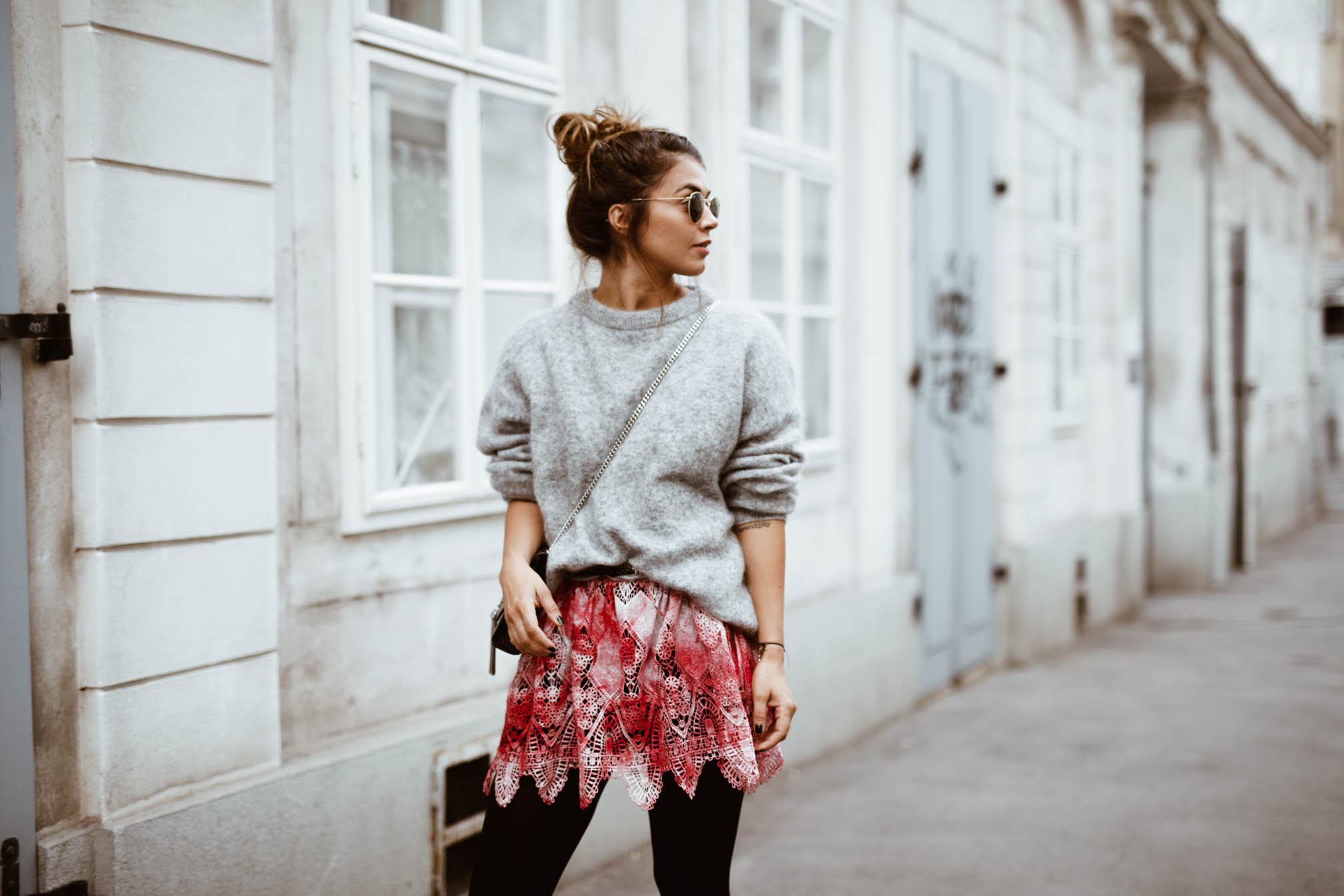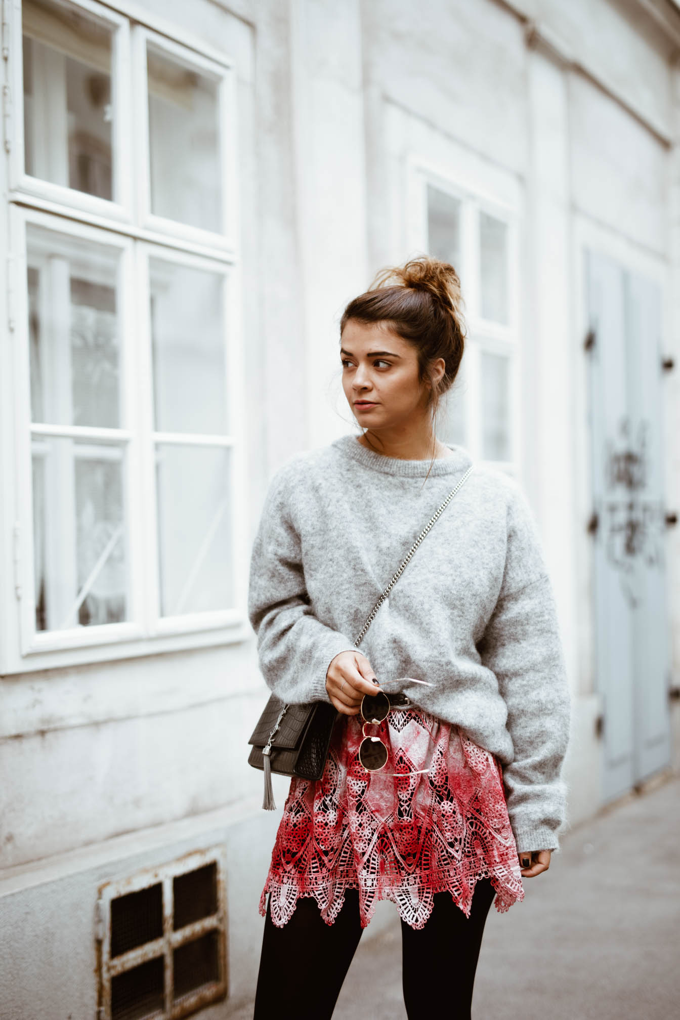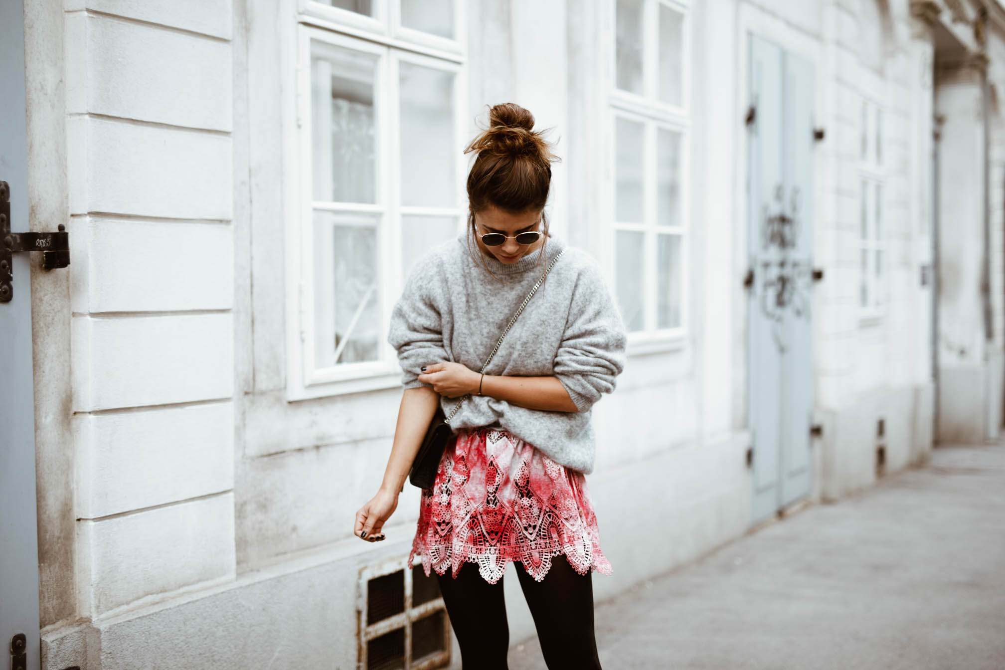 Nach der Show habe ich mein Kleid wieder bekommen um es natürlich auch noch zu shooten und anstelle es wieder zurückzugeben, habe ich beschlossen jemanden von euch damit eine Freude zu machen und es zu verlosen. Aus meinem Kleiderschrank, auf den Laufsteg und direkt zu einem von euch in den Schrank. Es ist zwar jetzt schon ein bisschen frisch für dieses bunte Sommerkleid, aber man muss sich nur zu helfen wissen. Mit Strumpfhose und Pullover kann man ein bisschen Farbe in den grauen Tag bringen.