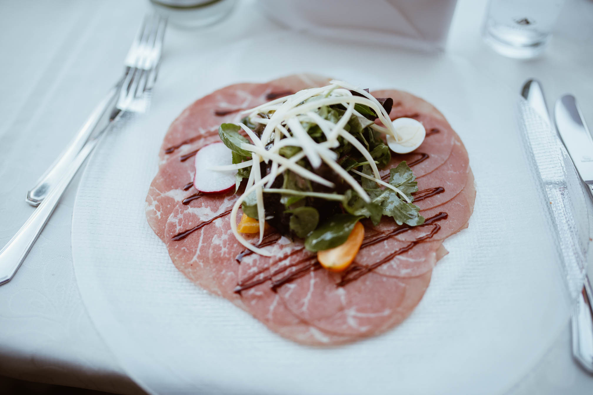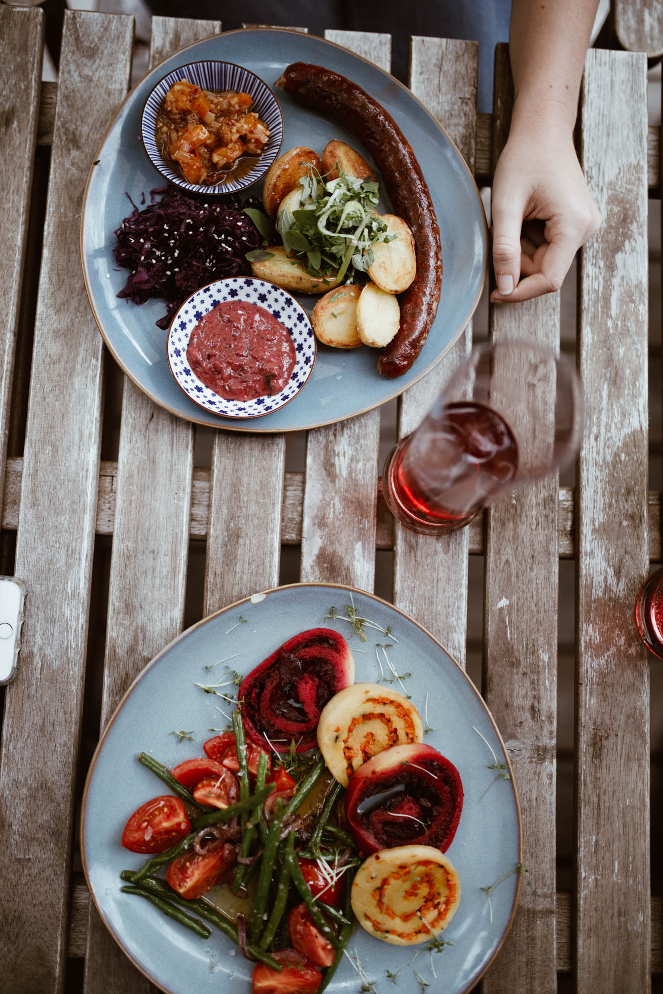 Der erste Programmpunkt war ein Besuch auf der Rudolfshöhe und ich kann jeden der in Bad Gastein zu Besuch ist empfehlen dort vorbei zu fahren, denn dieses Plätzchen ist nicht von dieser Welt. Es hat einfach etwas total verzaubertes und man merkt, dass Jan & Stefan die aus Berlin nach Bad Gastein gezogen sind und das Waldhaus seit 2016 betreiben sehr viel Herzblut hier rein gesteckt haben. Hier passt einfach jedes Detail und wenn man ankommt, fühlt man sich einfach unheimlich wohl und will gar nicht mehr weg. Die Speisekarte ist sehr überschaubar, aber völlig ausreichend und ich muss sagen, ich konnte mich trotzdem nicht entscheiden, weil alles einfach so gut klang. Ich entschied mich für die Kartoffelroulade und Denise für die Hirschwurst und als Nachspeise gab es noch Jan’s Pavlova. Ein Gericht war besser als das andere und wenn ich nur daran denke, läuft mir schon wieder das Wasser im Mund zusammen. Wir waren zwar nur zum Essen dort, aber man kann im Waldhaus auch ein Zimmer buchen und einfach dort bleiben. Ein bisschen abschalten und die Ruhe genießen. Bei der tollen Atmosphäre und Freundlichkeit bleibt man sehr gerne etwas länger.