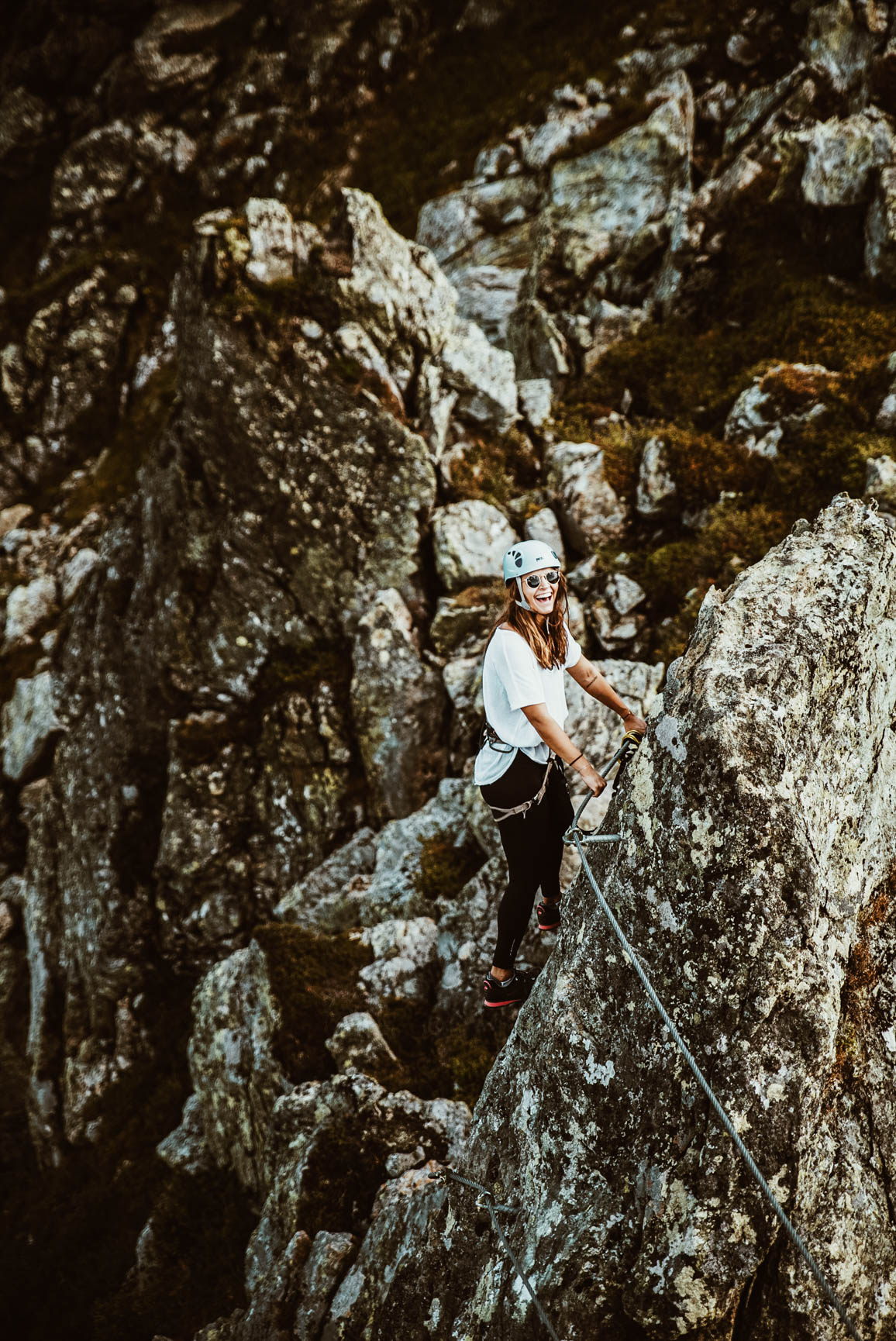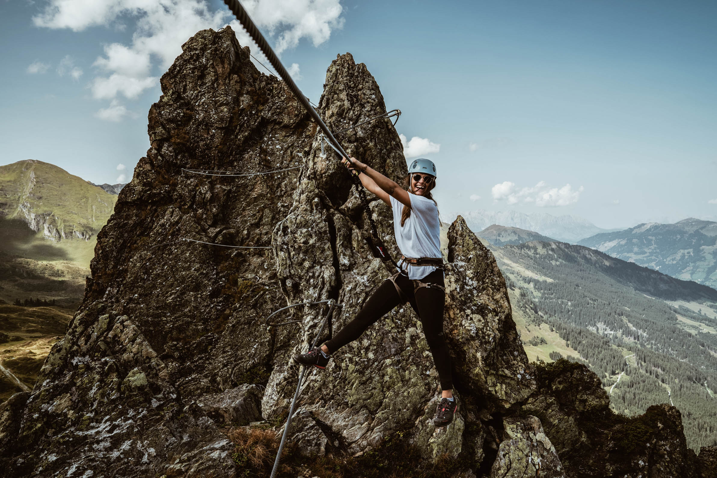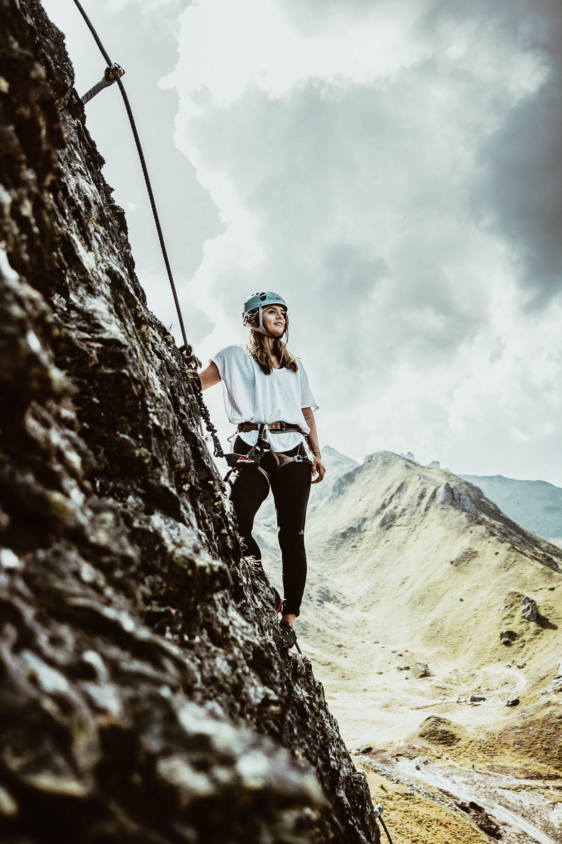 Dieser Programmpunkt war mein absolutes Highlight, denn als kleiner Kletteraffe kann man mich mit solchen Aktivitäten immer locken. Zuerst fuhren wir mit der Gondel auf den Berg, wo schon Guide Alex auf uns wartete. Nach einer kurzen Einschulung ging es auch schon los und ich muss sagen, es hat mir so viel Spaß gemacht, dass ich ganz bald wieder klettern gehen möchte. Der Klettersteig ist zwar nicht so einfach, aber es gibt eine leichte und eine schwere Variante – Ich glaub ich muss euch nicht sagen, welchen Weg ich gegangen bin. Was man nicht alles tut für das perfekte Foto. Total verschwitzt, mit offenen Fingern aber total glücklich bin ich oben beim Gipfelkreuz angekommen. Nicht nur das der Klettersteig selber schon unglaublich war, wir wurden auch noch mit einer wunderschönen Aussicht belohnt.
