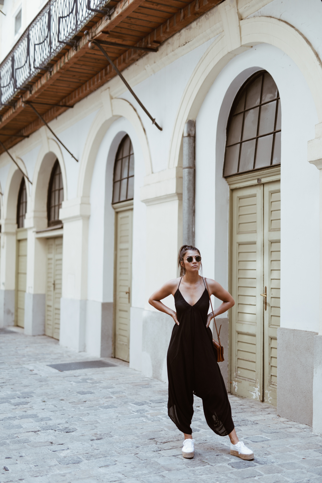 Es gibt so ein paar Kleidungsstücke, die sind so bequem, dass man sie gar nicht mehr ausziehen und am liebsten darin Leben möchte. Der Jumpsuit von der lieben Lena von Mit Handkuss gehört mit Sicherheit dazu und an heißen Sommertagen, gab es in diesem Jahr nichts gemütlicheres als diesen luftigen Einteiler. Klar der Sommer ist zwar um, aber trotzdem möchte ich euch diesen Look auf keinen Fall vorenthalten. Dank dem ausgefallenen Schnitt brauch dieses Outfit nicht wirklich viel Schnick Schnack, denn der Jumpsuit alleine ist schon ein echter Hingucker. Es gibt nur einen einzigen Nachteil bei solchen Einteiler und jedes Mädchen wird mir hier zustimmen – der Weg zur Toilette. Doch das nimmt man für so ein cooles Teil sehr gerne in Kauf, oder nicht?