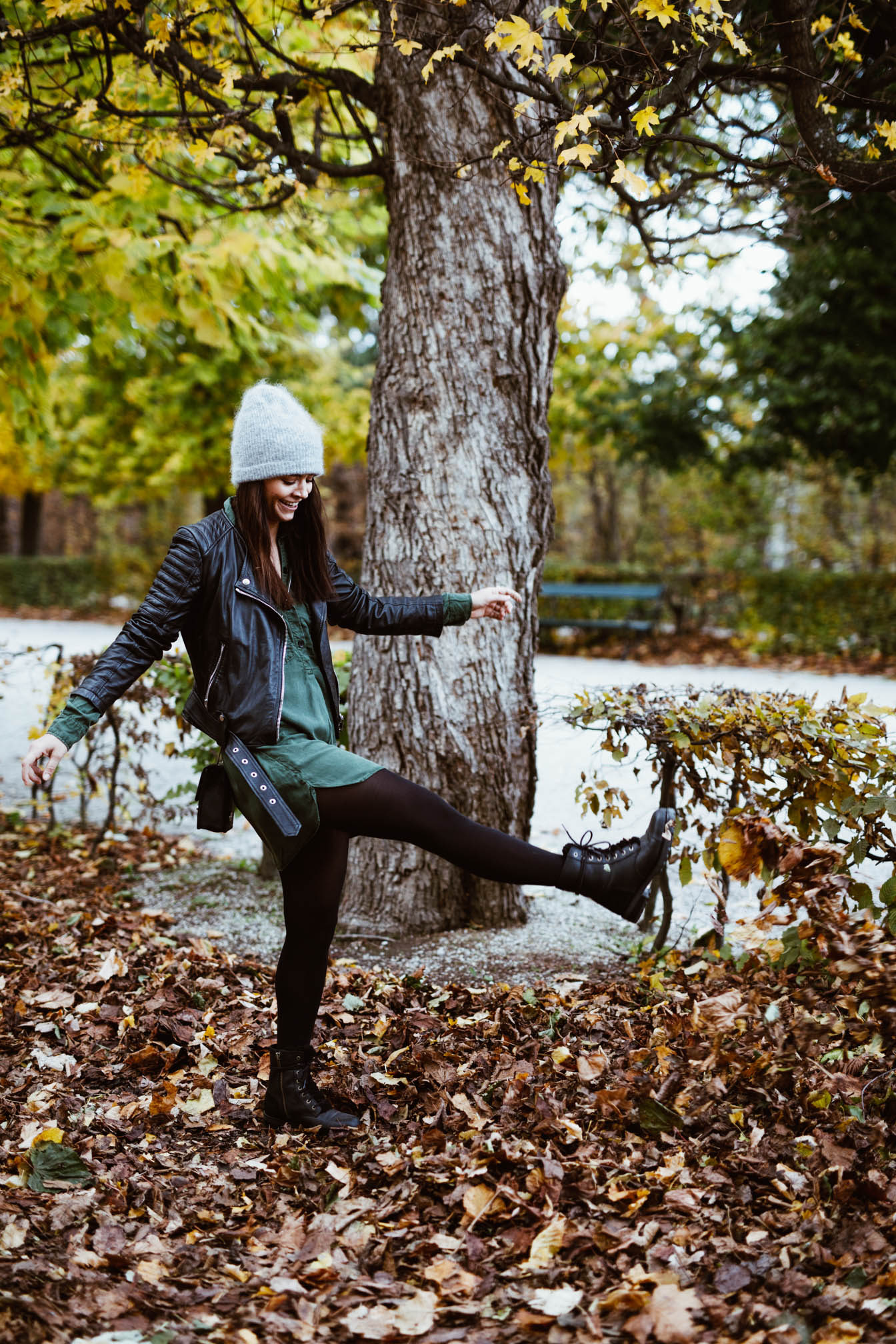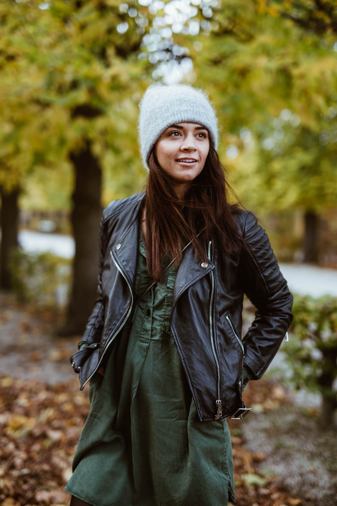 Blusenkleid – Zara (alt, ähnliches HIER) | Boots – Ugg | Lederjacke – Diesel (ähnliche HIER) | Tasche – Denise Roobol | Mütze – Tigers of Sweden