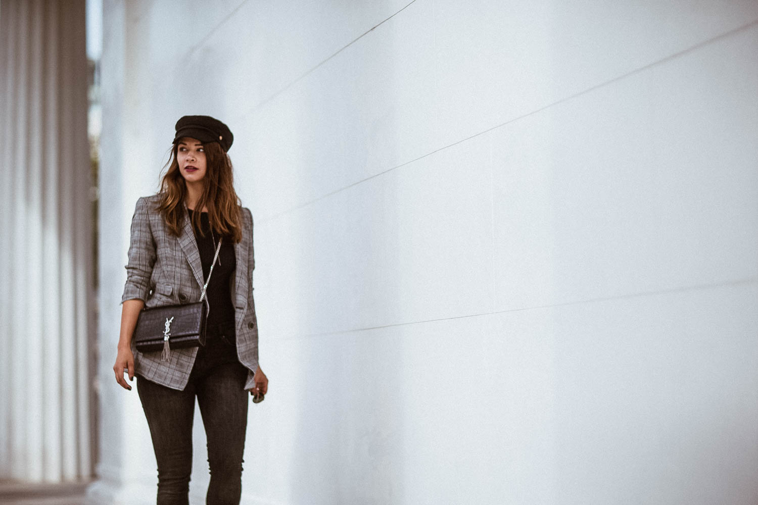 Jeans – Bik Bok (ähnliche HIER) | Body – Mango (alt, ähnlicher HIER) | Schuhe – Sacha (ähnliche HIER) | Blazer – Mango | Kappe – Asos (ähnliche HIER) | Tasche – Saint Laurent | Kette – Anna Inspiring Jewellery | Sonnenbrille – Ray Ban | Lippenstift – Rebel/Mac