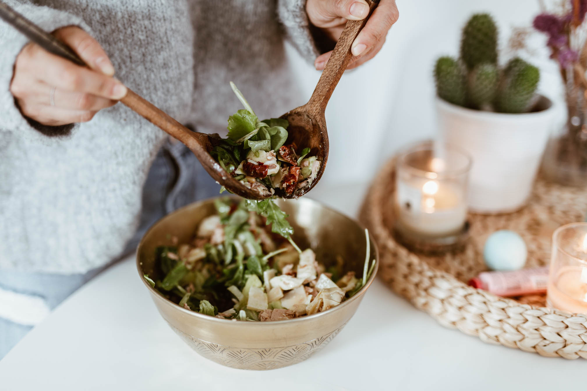 – 2 Handvoll salat (mix)