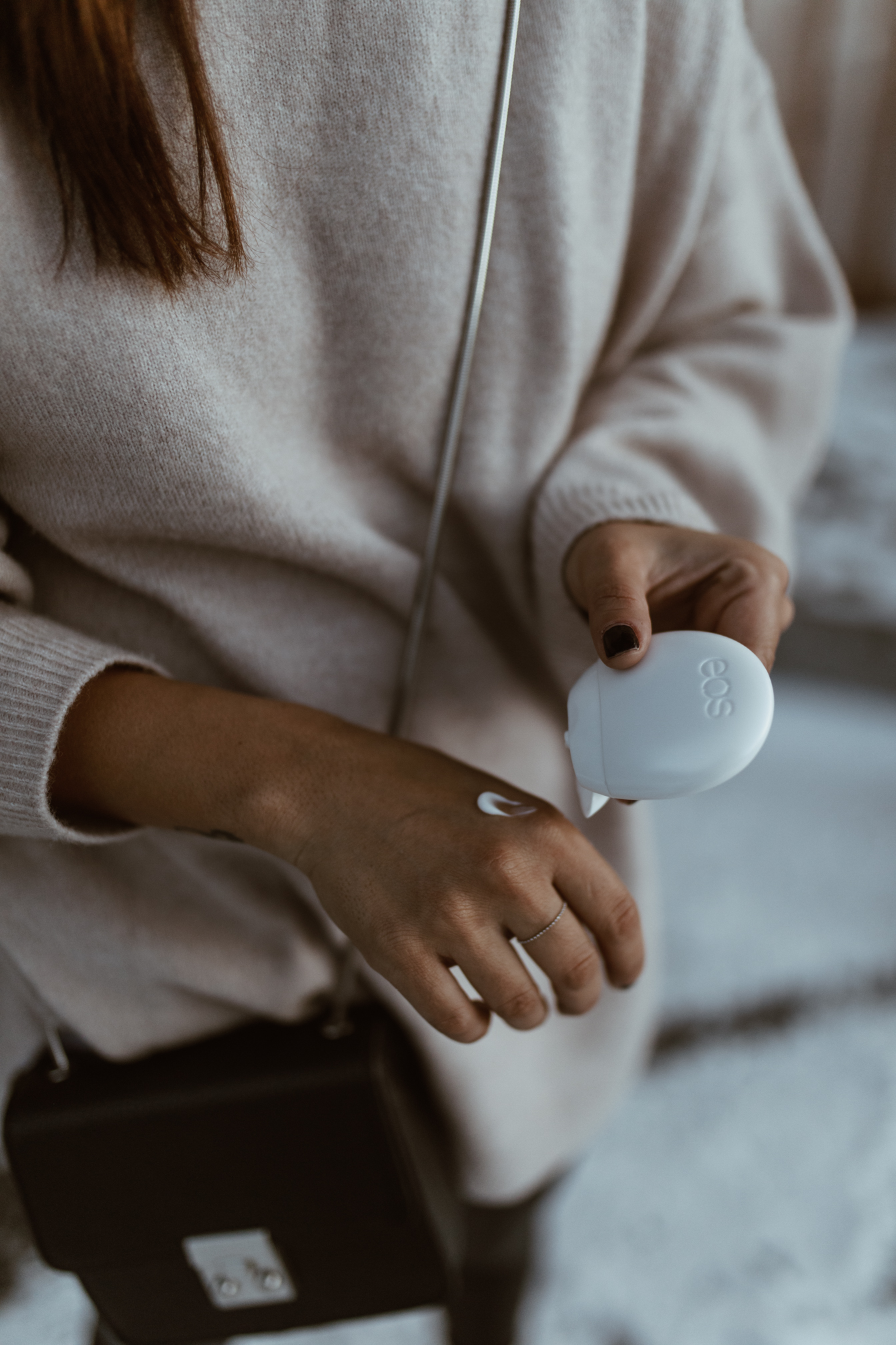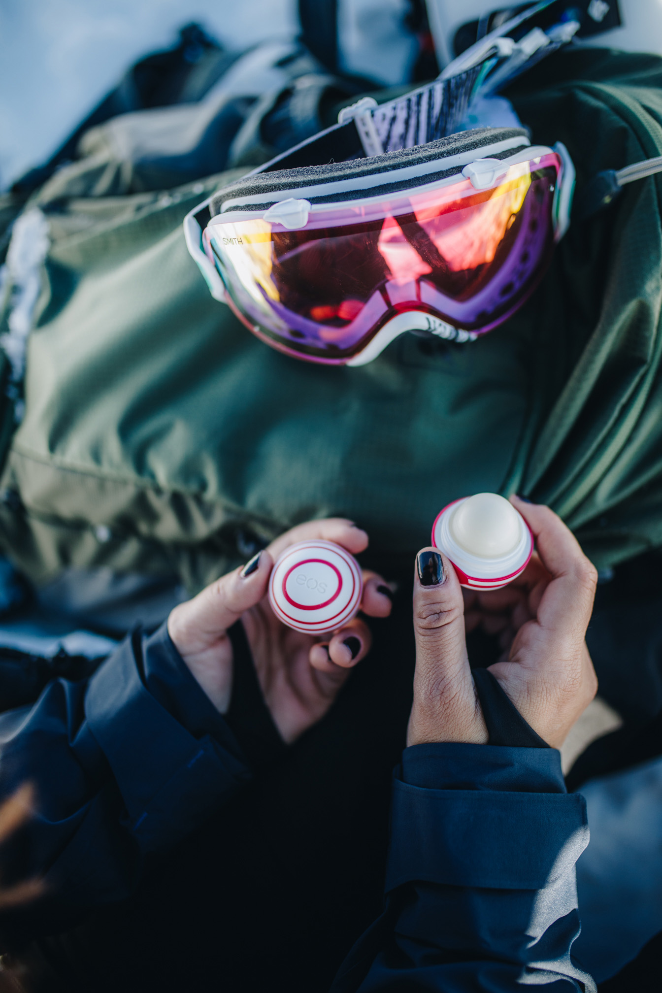 Ich bin schon seit längerer Zeit ein großer eos Fan und kann mich noch ganz genau erinnern, als die Marke, die auf natürliche bio-zertifizierte Inhaltsstoffe setzt, endlich zu uns nach Österreich gekommen ist. In fast jeder meiner Taschen findet man die runden Pflegeprodukte und Sweet Mint ist mein absoluter Favorit, den ich immer wieder nachkaufe. Ich mag den Geruch und das frische Gefühl auf den Lippen einfach unheimlich gerne. Kein Wunder, dass die neue X-Mas Edition Peppermint Cream gleich in meinen Rucksack gewandert ist und mit auf den Berg durfte. Vor allem wenn ich den ganzen Tag auf der Piste bin, sind meine Lippen immer besonders spröde und benötigen viel Feuchtigkeit. Auch wenn ich mit meinen Gedanken voll und ganz beim Snowboarden bin, versuche ich mich immer wieder daran zu erinnern meine Lippen zu pflegen, damit ich am Abend dann keine böse Überraschung erlebe.
