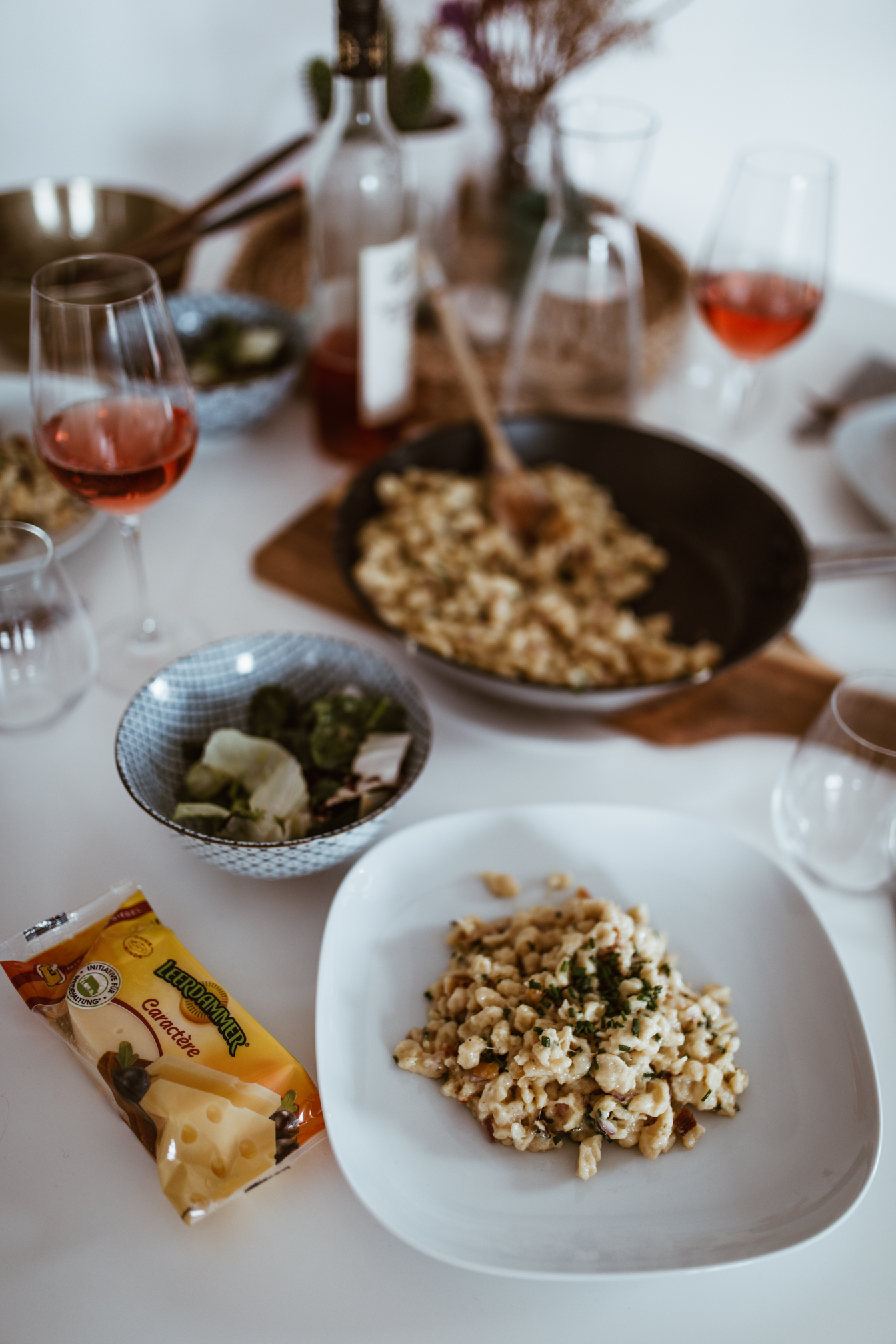 Leerdammer kann nämlich mehr als nur #wirkäsebroten und ist auch für warme Gerichte ganz vielseitig einsetzbar. Und weil Kässpätzle ja meist nicht nur mit einer Käsesorte gemacht werden, habe ich gleich zwei Sorten kombiniert: den würzigeren Leerdammer Caractère und die klassische Variante des Leerdammer Original.
