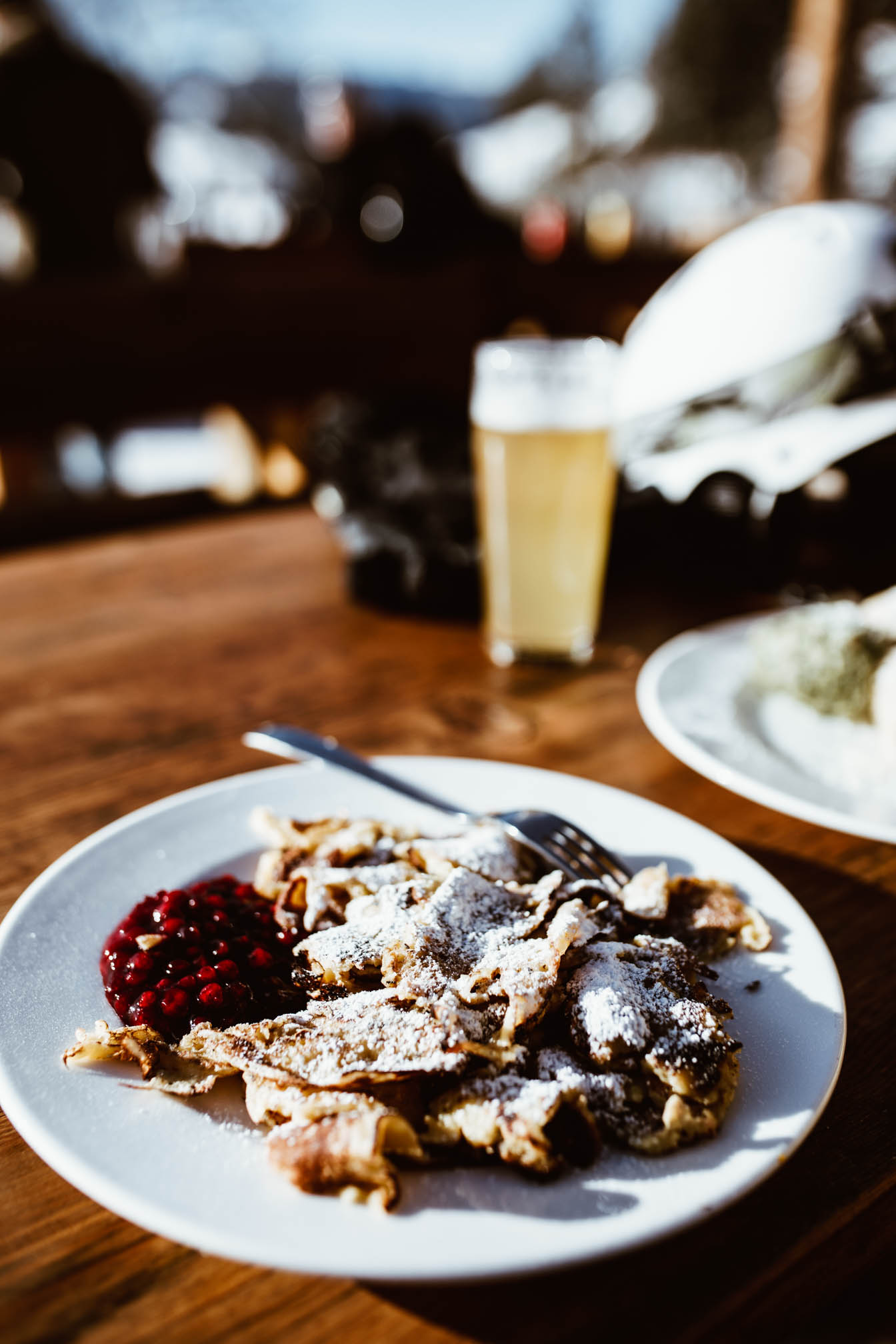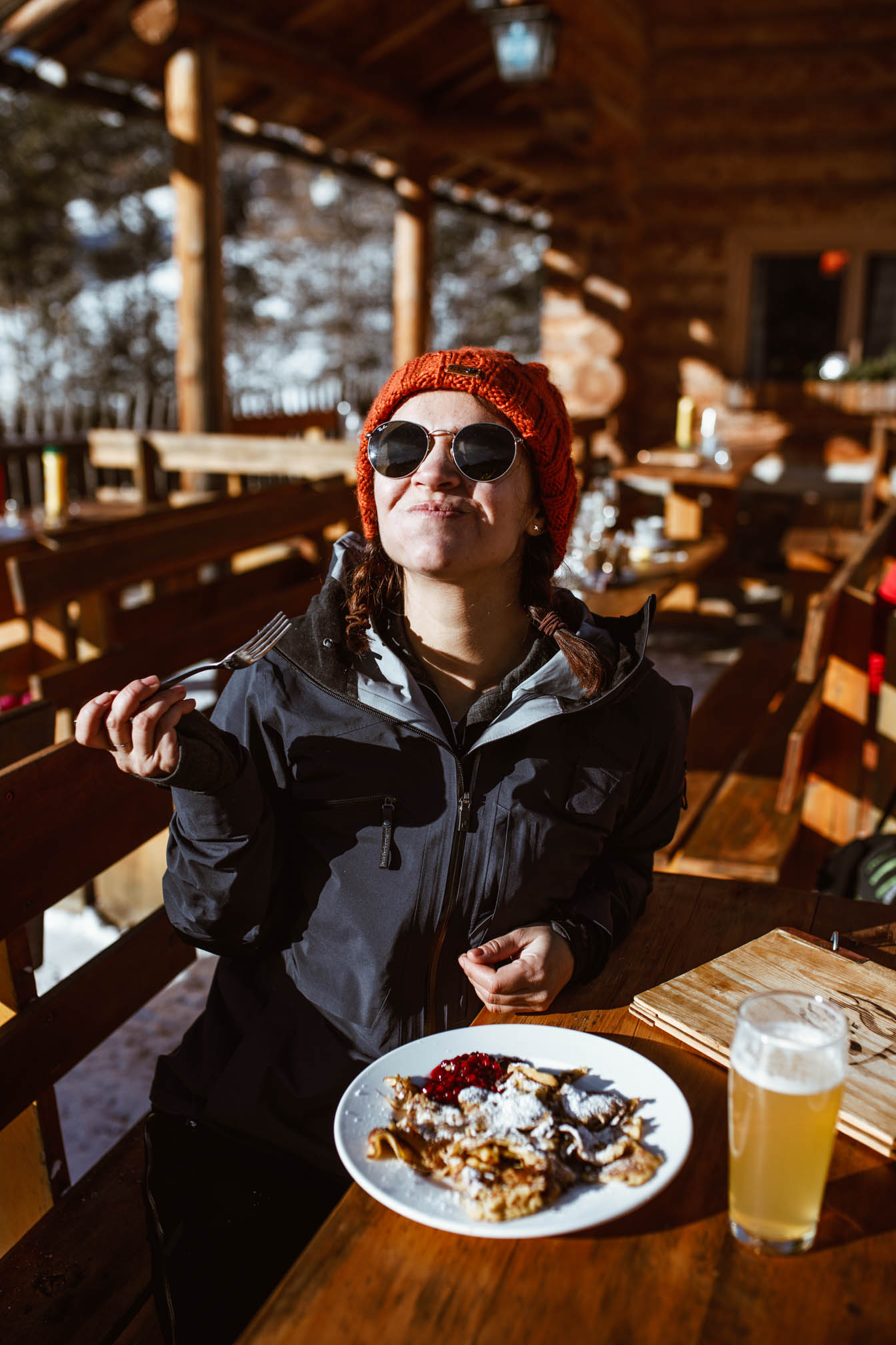 Snowboarden macht Hungrig und Gott sei Dank gibt es in diesem großen Skigebiet nicht nur tolle Pisten, sondern auch an die 400 Berghütten, wo man zu Mittag ganz gemütlich einkehren und sich für den restlichen Tag stärken kann. Wir haben eigentlich jeden Tag eine andere Hütte ausprobiert, um uns auch ein bisschen ein Bild vom Angebot und dem Essen zu machen und wurden nicht enttäuscht. Von Gulasch, bis zum traditionellen Speckbrett und leckerem Kaiserschmarrn gab es hier wirklich alles.