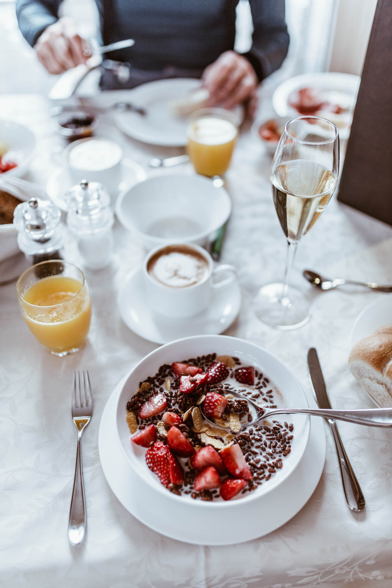 Doch nicht nur auf den Berghütten kann man richtig gut essen, nein auch unser Hotel, das Excelsior, hat uns mit vielen leckeren Köstlichkeiten verwöhnt. Ich kann euch gar nicht genau sagen was mir am besten geschmeckt hat, denn es war alles einfach richtig gut. Neben einem sehr großen Frühstücksbuffet, wo wirklich für jeden etwas dabei war, gab es am Nachmittag auch ein Kuchenbuffet. Gegen eine kleine Stärkung nach einem langen Tag auf der Piste, sagt man natürlich nicht Nein. Abends wurden wir dann täglich mit einem 4 Gang Menü verwöhnt und eine Speise war besser als die andere. Toll fand ich, dass die Gerichte alle sehr speziell waren und man gemerkt hat, dass sich der Koch so einiges bei der Erstellung der Speisekarte gedacht hat. Geschmacklich wie qualitativ war das Essen wirklich hervorragend und wir sind jeden Tag mit einem Lächeln zu Bett gegangen.