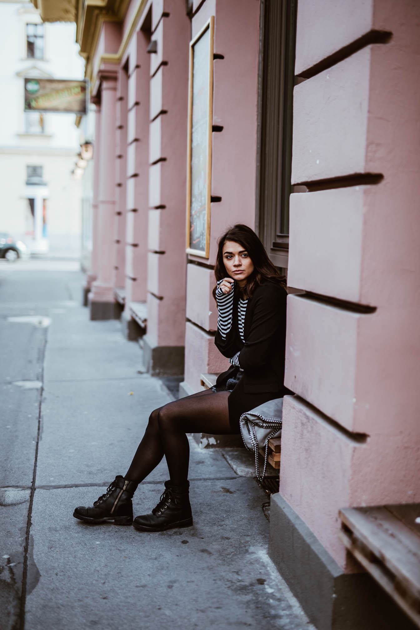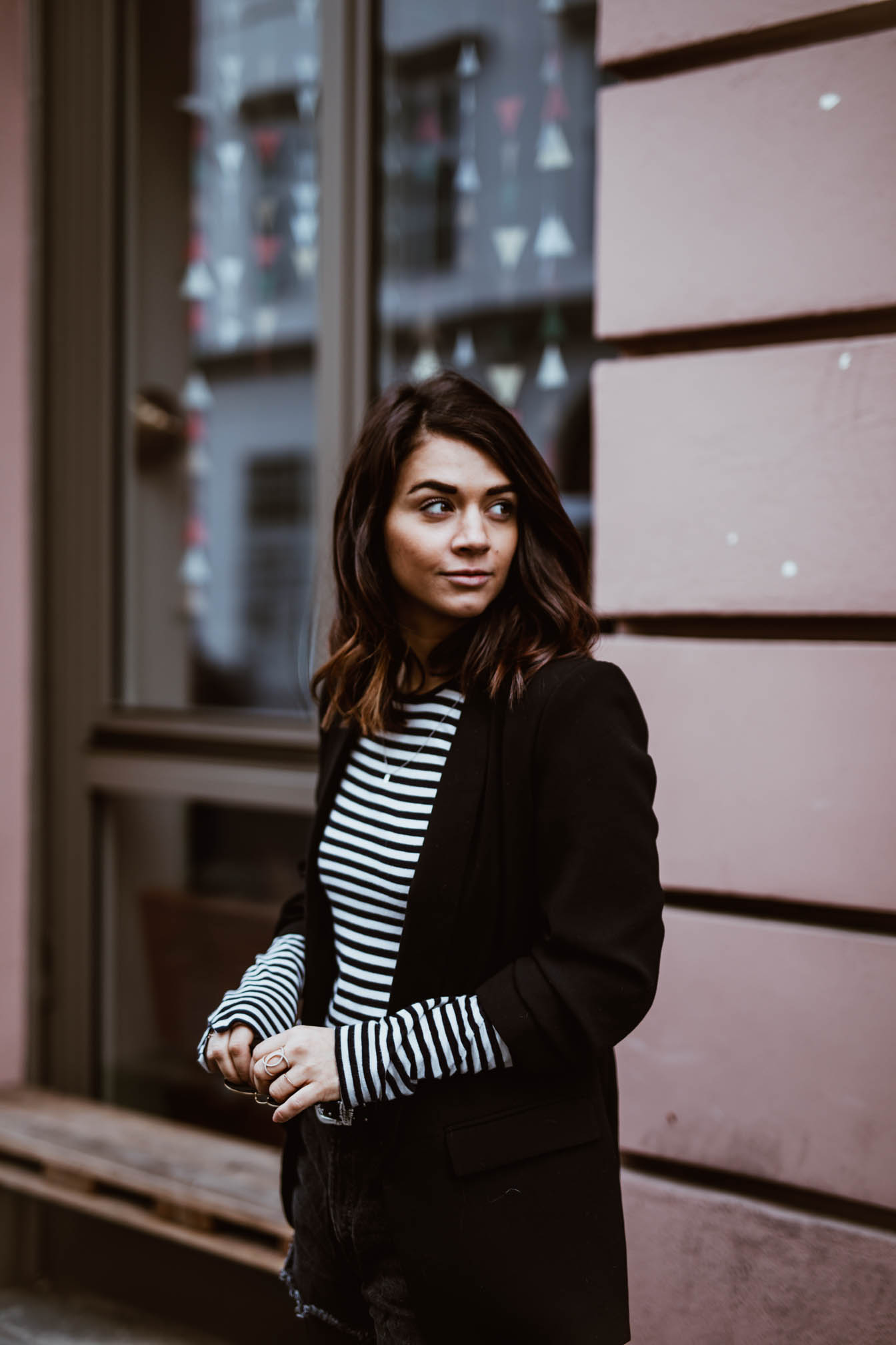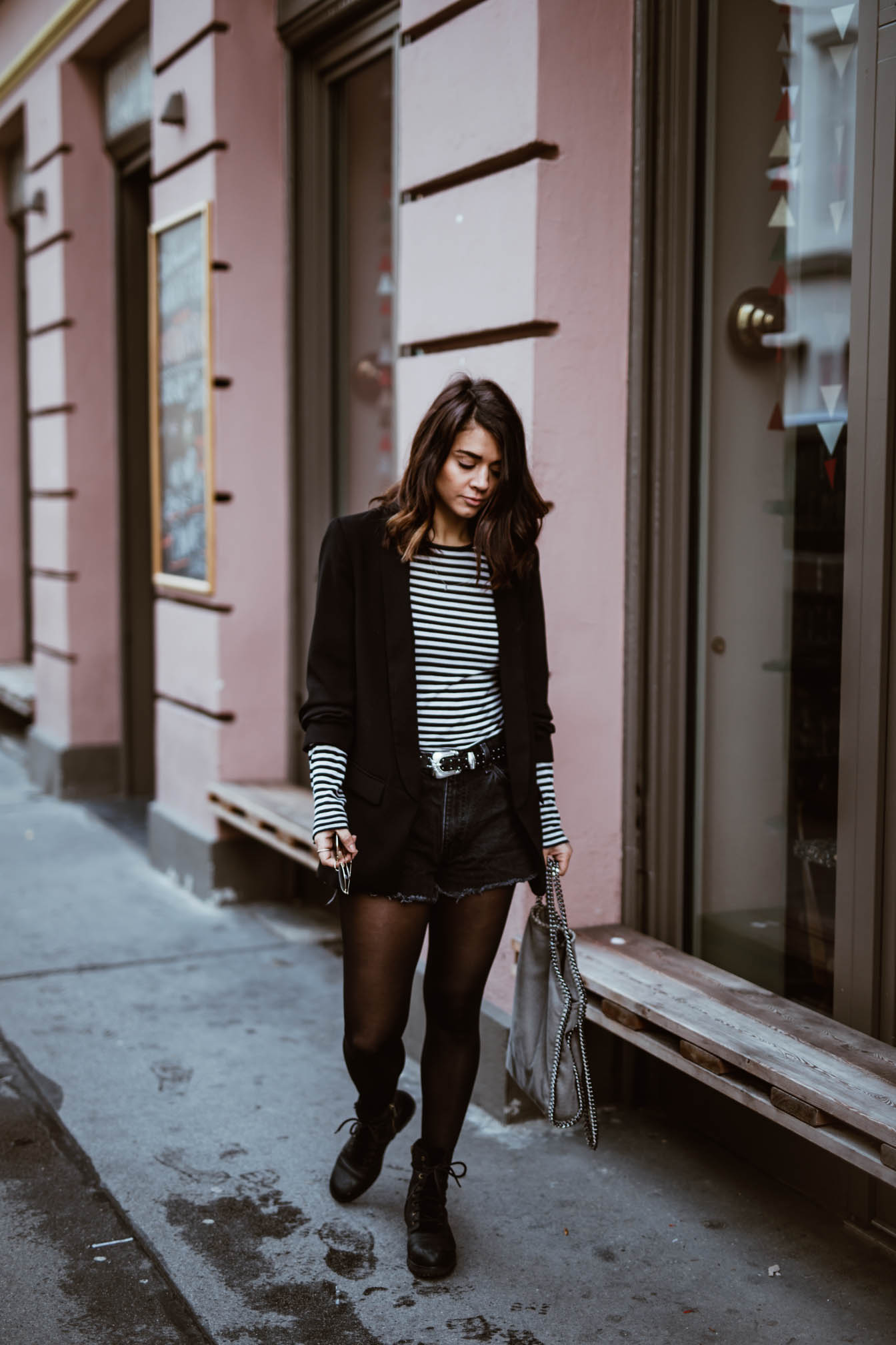 Neue Woche, Neues Glück – oder so. Noch hält sich meine Motivation in Grenzen. Vor allem wenn ich aus dem Fenster blicke und die graue Nebelsuppe sehe. Vergangene Woche war es ein paar Tage richtig warm und sonnig in Wien. Es hat so gewirkt, als wäre der Frühling bereits auf dem Weg. Sehr motiviert habe ich die Sonnenbrille und meine Shorts (natürlich mit Strümpfe) ausgepackt und ausgeführt. Auch mein Streifenshirt durfte an diesem schönen Tag nicht fehlen und ich hab das Gefühl ich lebe momentan darin und trage nichts anderes. Es peppt aber auch einfach jeden Look auf und genau deshalb steh ich auch so drauf Leider war der Besuch der Sonne nur ein kurzer und so sitze ich heute wieder dick eingepackt in meinem Pullover im Office. Ich denke es dauert dann doch noch ein bisschen bis der Frühling nach Wien kommt. Was mich aber gar nicht stört, denn am Donnerstag geht es wieder in den Schnee und ich kann es schon gar nicht mehr erwarten am Board zu stehen. Ja so schnell kann es gehen und das Sommerkind wird zum Winterliebhaber.