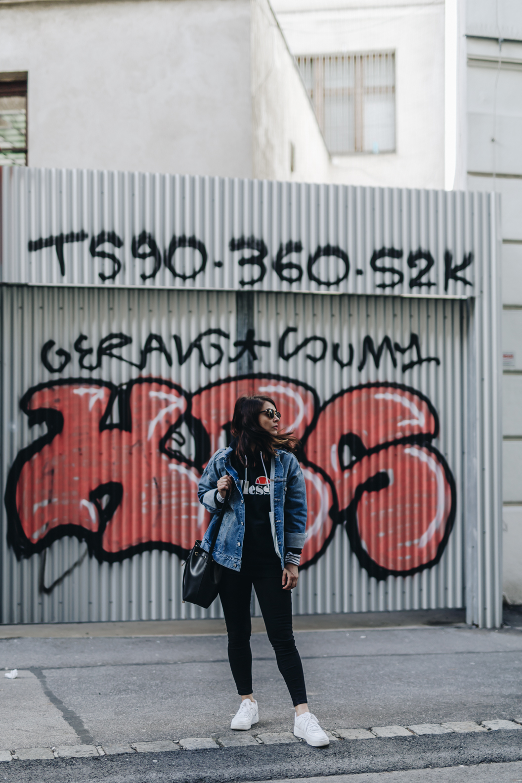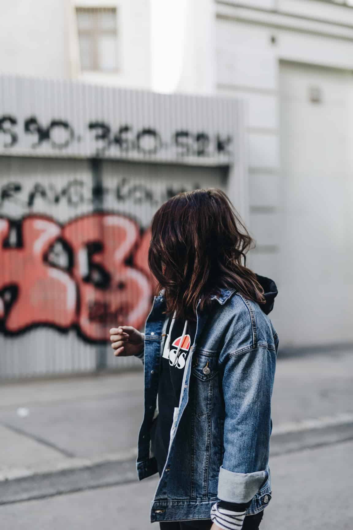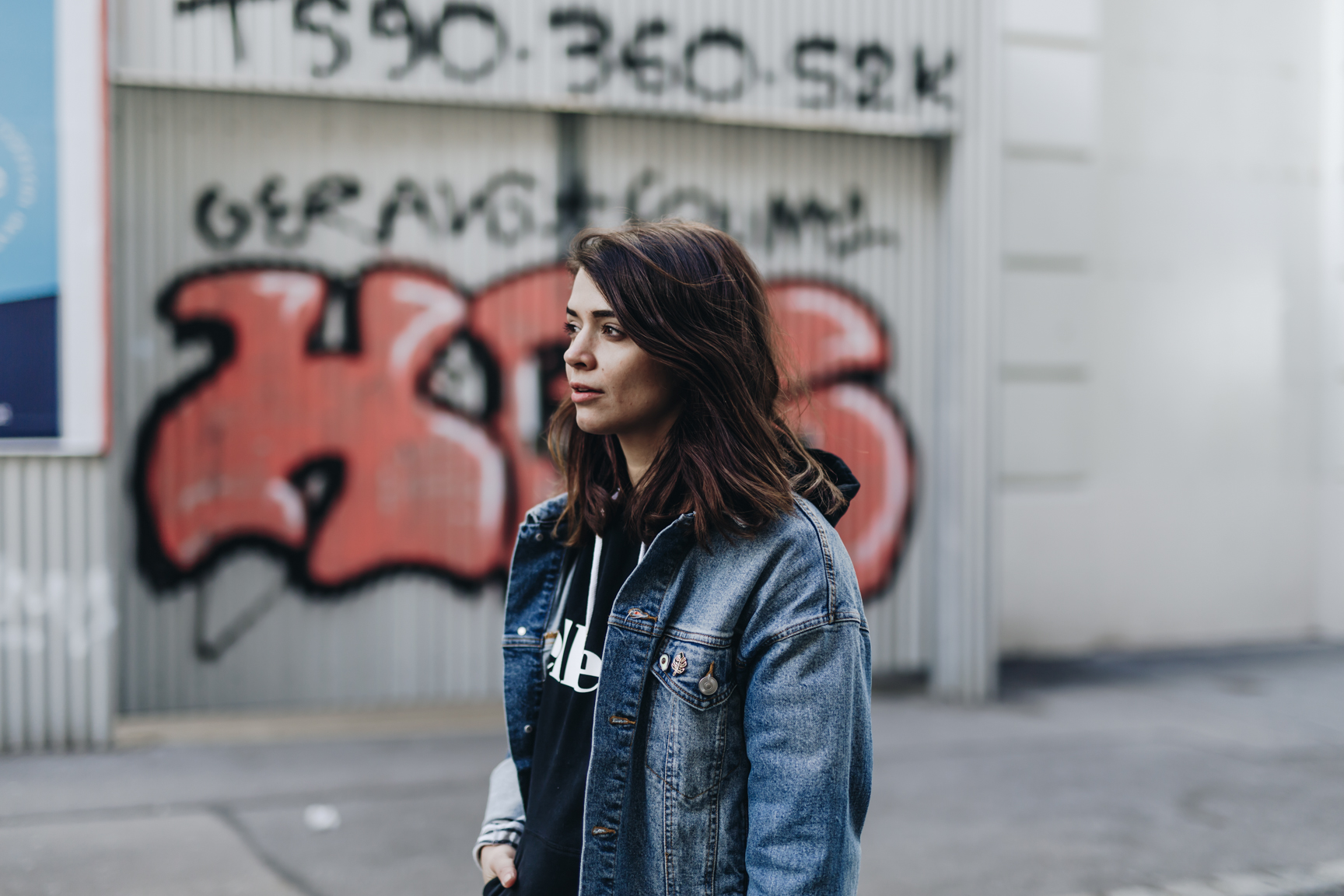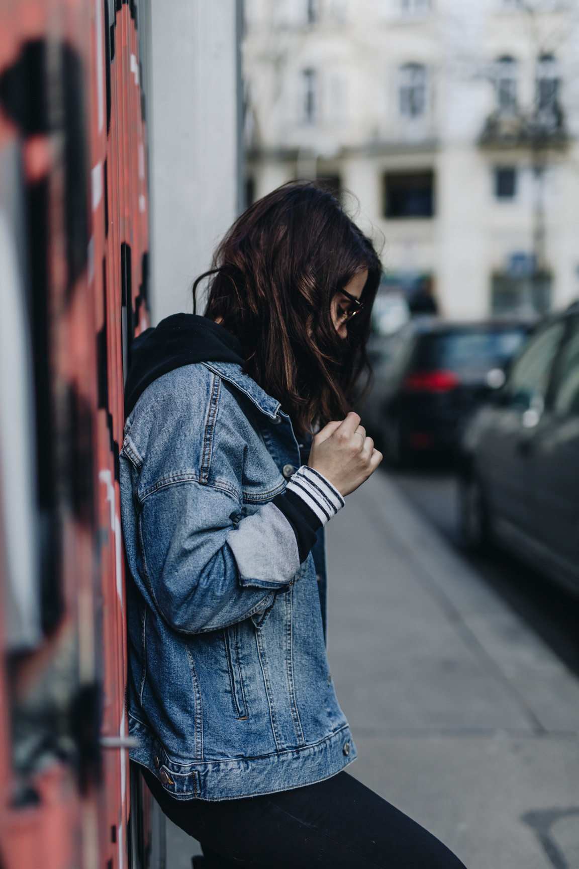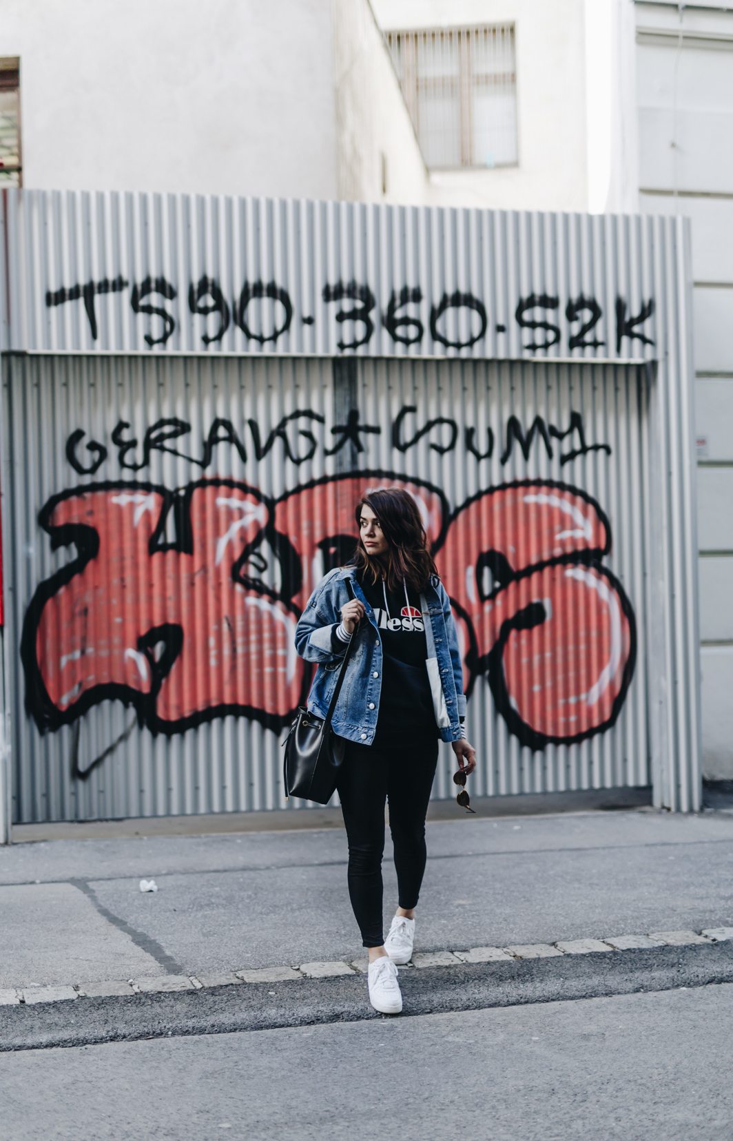 Während ich hier im verschneiten St. Anton am Arlberg sitze und mich nach einem langen Shootingtag etwas ausruhe, habe ich mal wieder ein neues Outfit für euch. Sneakers, ein gemütlicher Hoodie, freie Knöcheln und die Oversized Jeansjacke – Irgendwie macht dieser Look doch total Lust auf Frühling, findet ihr nicht? Ich muss gestehen, es war schon ein bisschen sehr frisch und danach habe ich mich mit einer heißen Tasse Tee im Office aufgewärmt, aber die paar Sonnenstrahlen mussten einfach genutzt werden. So gerne ich den Winter momentan auch habe, ehrlich gesagt, kann ich meine Winterjacken schon gar nicht mehr sehen und freue mich auf ein bisschen Abwechslung im Kleiderschrank. Gott sei Dank sitze ich in 3 Tagen im Flugzeug und darf die warmen Klamotten gegen Bikinis und Flip Flops tauschen. Die Vorfreude ist wirklich schon riesig und am Mittwoch erzähle ich euch dann auch endlich wohin es mich verschlägt und was ich geplant habe. Jetzt genieße ich aber mal die letzten Stunden im Winter Wonderland, denn die verschneiten Berge lassen mein Herz einfach immer wieder höher schlagen.