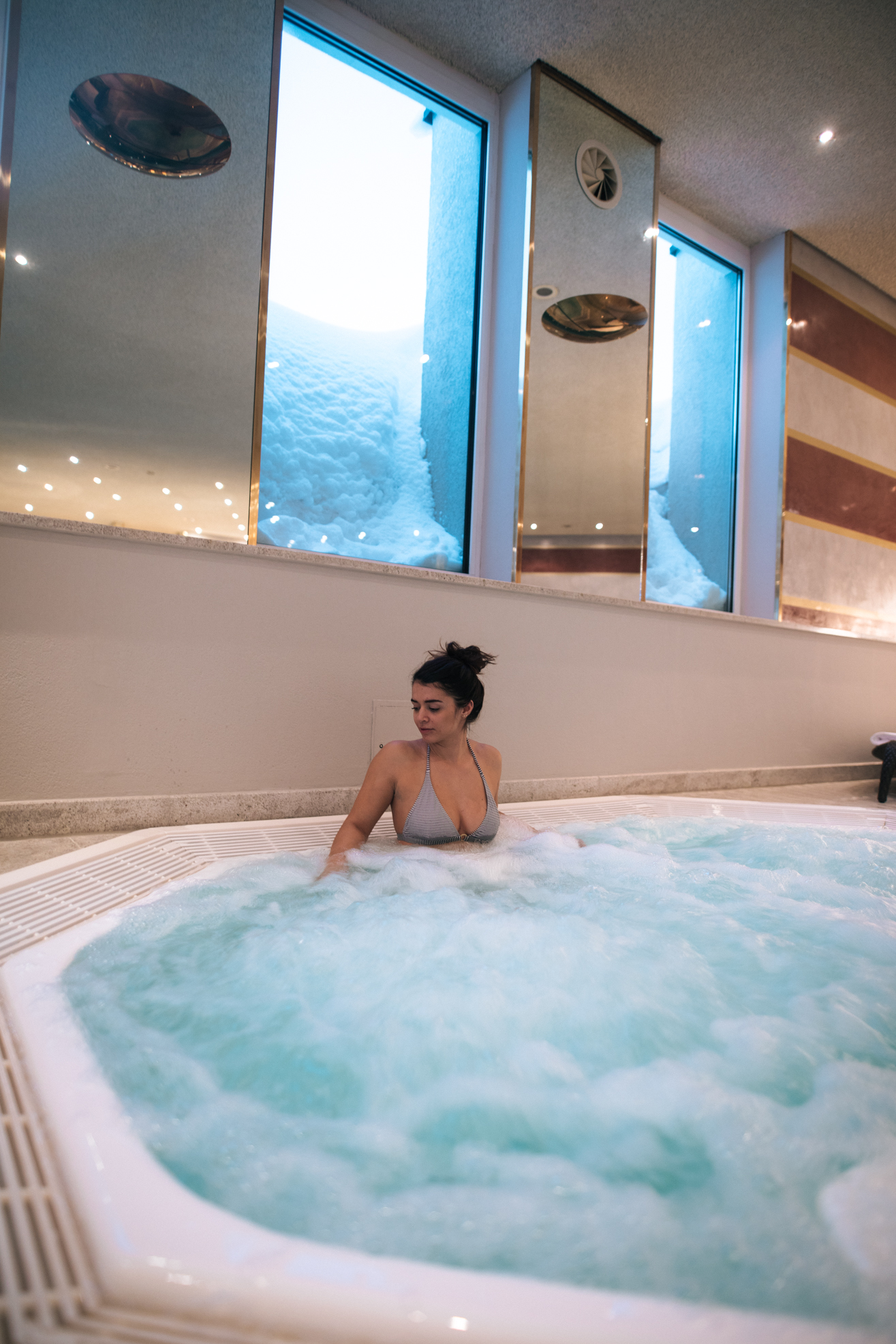 Aufgrund des Schneesturms waren bei uns zwar die Lifte in Zürs gesperrt, aber Dank der guten Verbindung ist man mit dem Shuttle-Bus in wenigen Minuten in Lech. Also auch bei nicht so gutem Wetter gibt es die Möglichkeit auszuweichen, wenn man denn unbedingt auf die Piste möchte. Da die Sicht bei uns eher Bescheiden war, haben wir uns gegen Skifahren entschieden und stattdessen eine Winterwanderung gemacht – Ein bisschen Bewegung und die frische Luft taten richtig gut. Danach hatten wir uns das Wellnessen auch wirklich verdient.