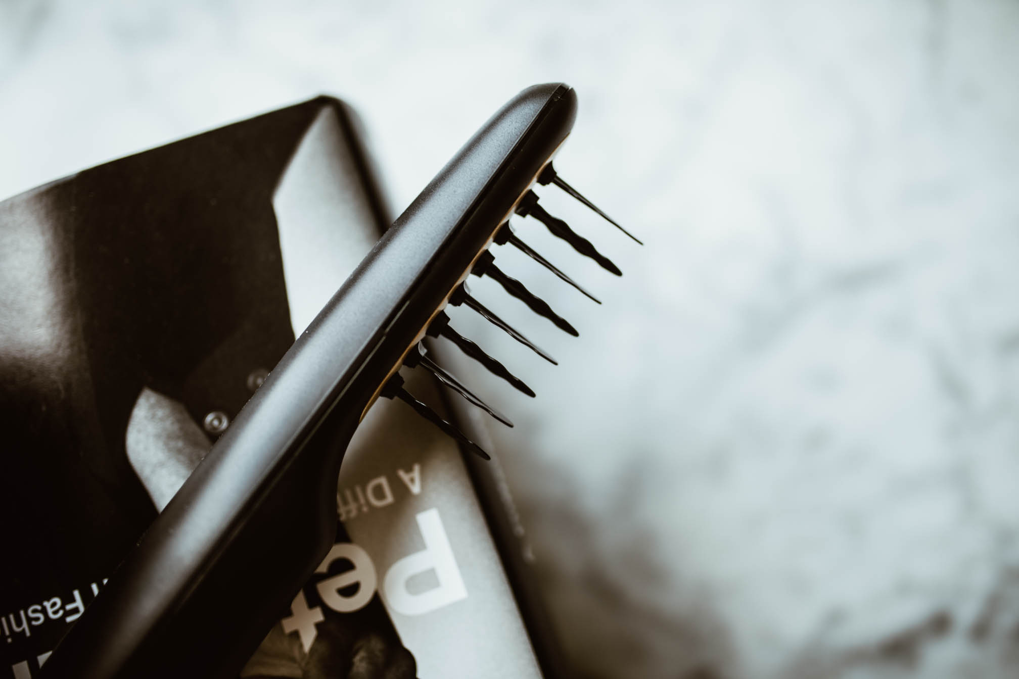 Doch ich wurde eines besseren belehrt und muss sagen, dass ich ziemlich begeistert von diesem neuen Teil bin. Die Tangled2Smooth Bürste löst wie der Name schon sagt ganz sanft alle Knoten und verursacht kein unangenehmes Ziehen an der Kopfhaut. Man kann die Bürste sowohl bei trockenem als auch nassem Haar verwenden und das aller beste meine Wellen bleiben viel besser erhalten, als mit einer normalen Bürste bzw. stehen meine Haare nicht in alle Richtungen und sind elektrisch.