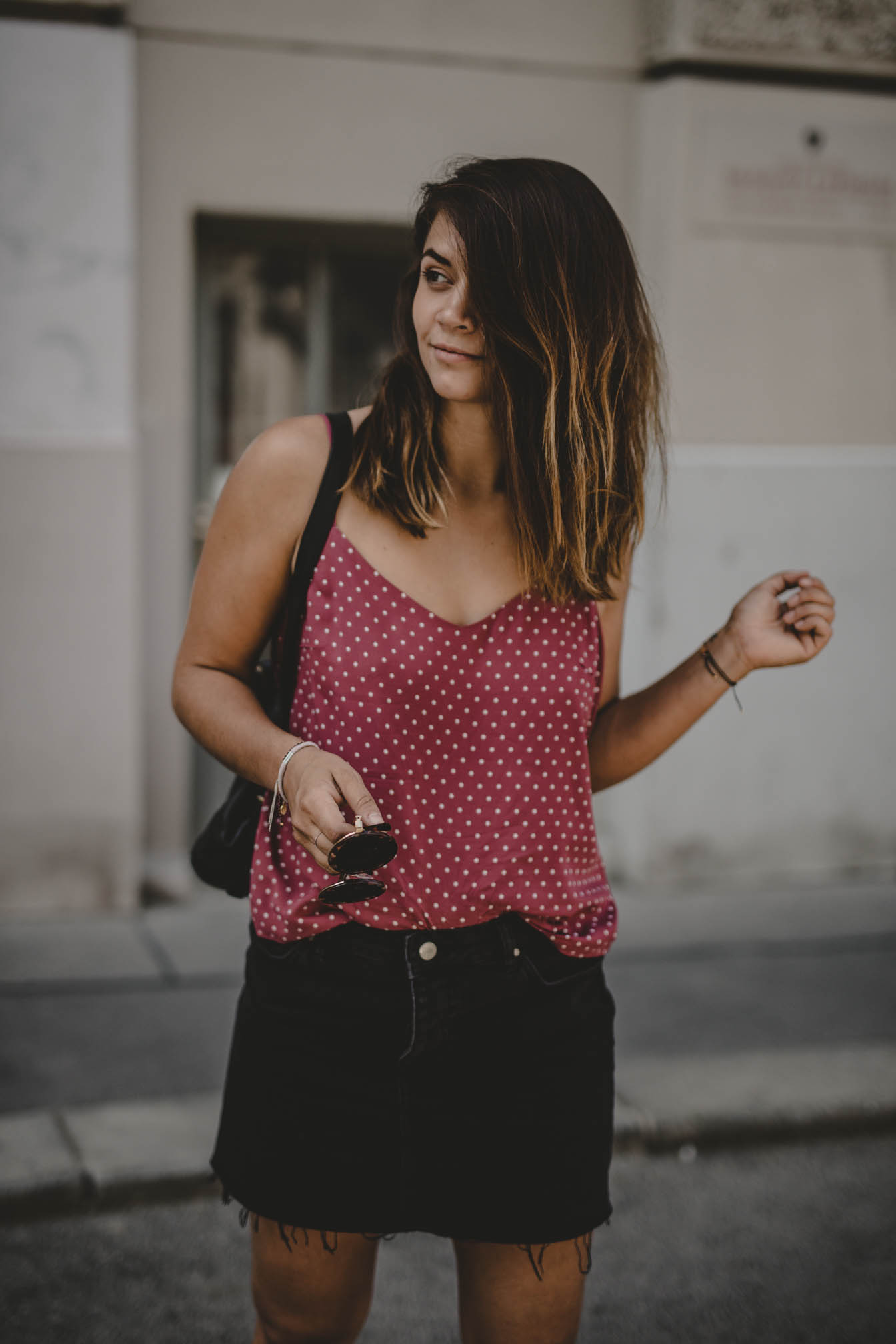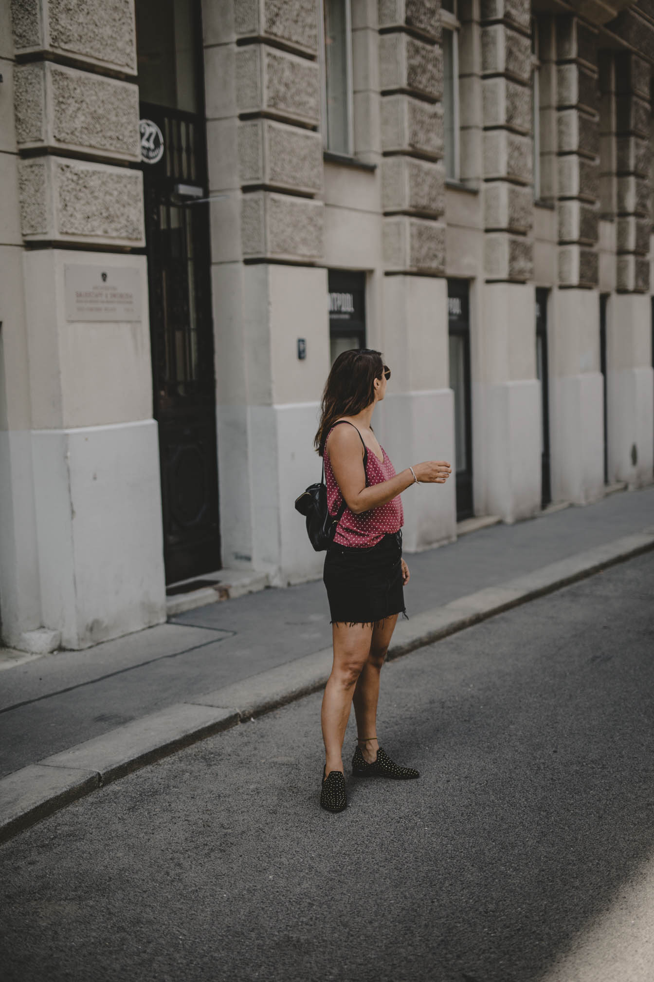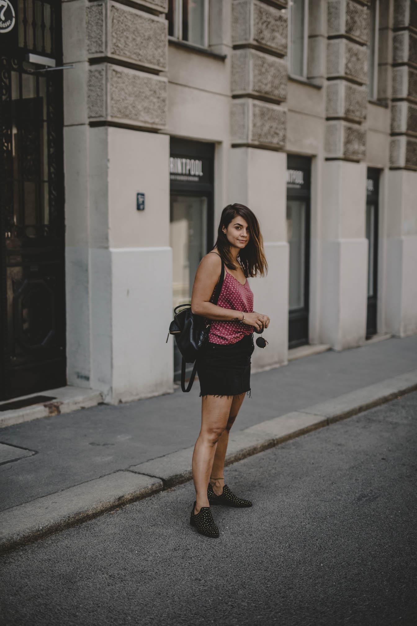 Vom Winter direkt zum Sommer - Irgendwie wurde der Frühling einfach mal übersprungen und so gab es in den vergangenen Tagen bereits knackige 28 Grad in Wien. Ich hätte mich zwar auch auf ein paar frühlingshafte Tage gefreut, doch als absolutes Sommerkind bin ich eigentlich auch ganz happy mit den warmen Temperaturen. Endlich können die Shorts und Röcke wieder ohne Strümpfe getragen werden und die Jacken im Schrank bleiben. In der warmen Jahreszeit fällt es mir so viel leichter in der Früh mein Outfit zusammen zu suchen und greife dann auch viel lieber zu farbigen Sachen. Gestern stand irgendwie alles im Zeichen von Polka Dots - mit Punkten ist es eigentlich fast so wie mit Streifen, die gehen einfach immer. Ein gepunktetes Shirt ein simpler Jeansrock, meine Boots die ich im Sale in Australien ergattert habe und eine große Brille, mit der ich ein bisschen wie Puck die Stubenfliege aussehe - mehr braucht es nicht für einen Tag in der Stadt.