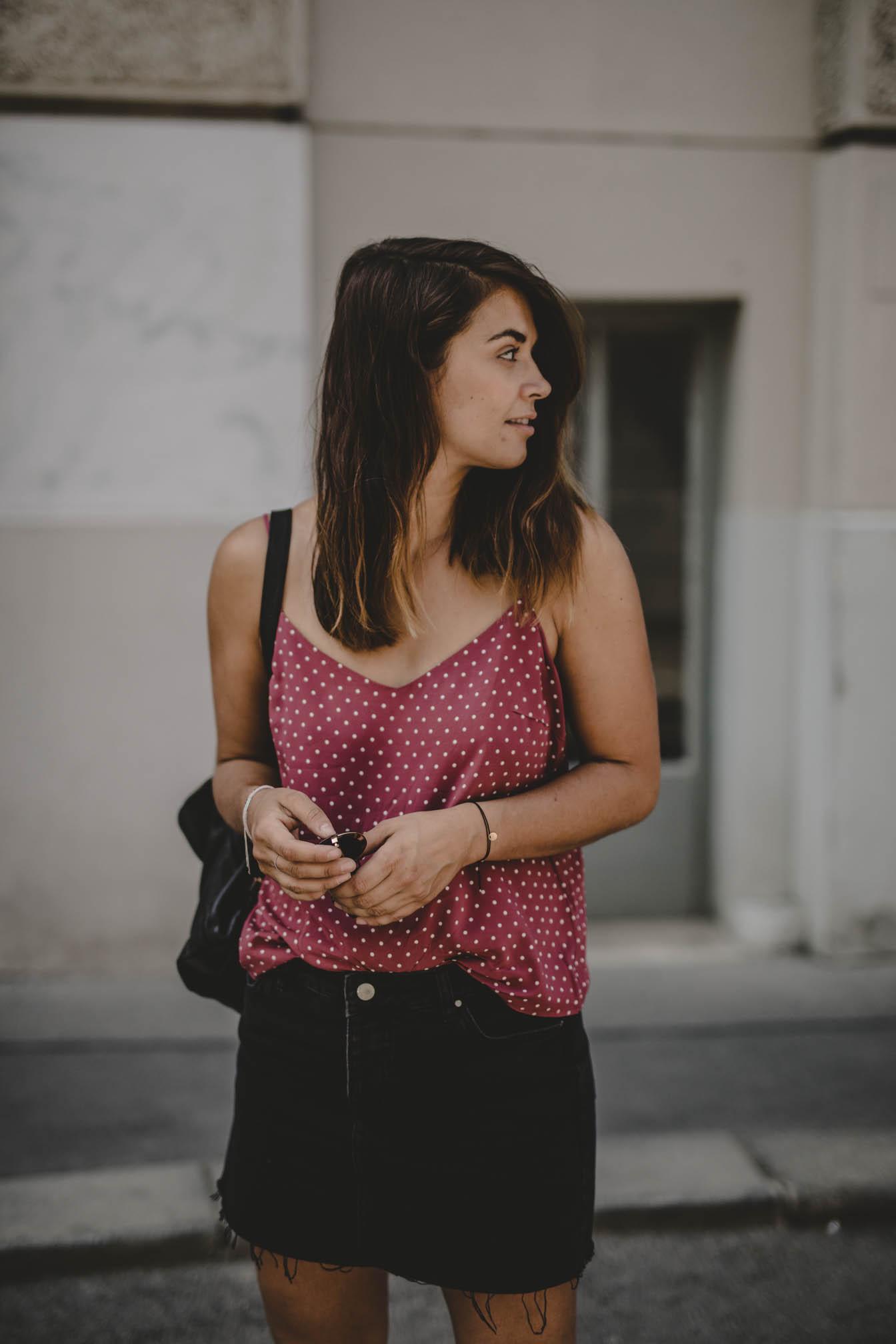Top - Jake*s Collection || Rock - Asos || Sonnenbrille - Prada (ähnliche HIER) || Rucksack - Whistles (ähnlicher HIER) Schuhe - Senso (ähnliche HIER)