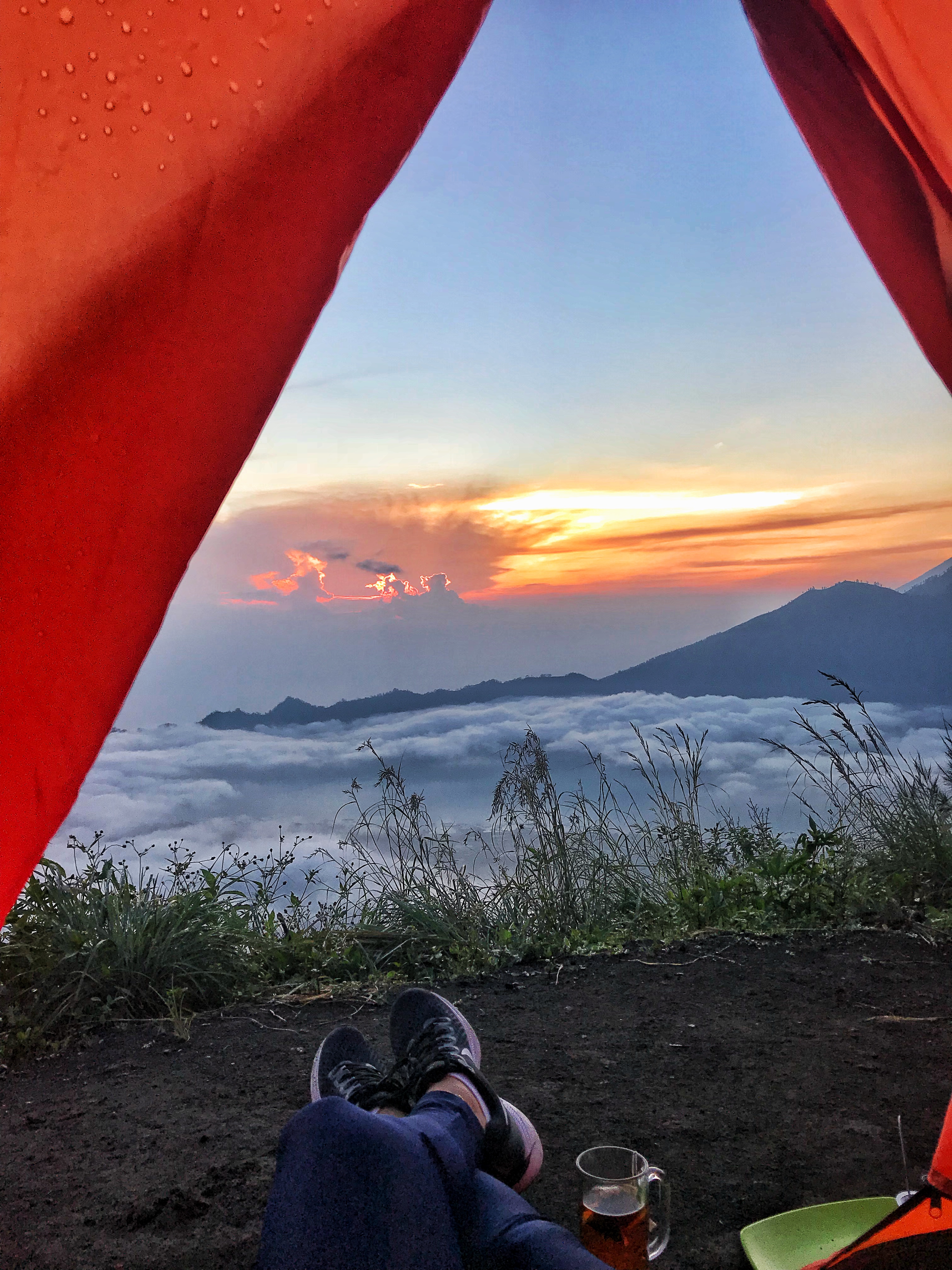 Nach diesem Ausflug habe ich wohl die meisten Nachrichten bekommen, denn ganz viele von euch fanden es sehr verrückt, dass ich alleine auf einem Vulkan übernachtet habe. Die meisten Leute stehen mitten in der Nacht auf, gehen auf den Vulkan und schauen sich dann den Sonnenaufgang an. Durch Zufall bin ich auf diese Tour aufmerksam geworden und dachte mir, es wäre sicher ein Spaß in einem Zelt auf einem Vulkan zu übernachten. Gemeinsam mit einem Guide ging es also auf den Mt. Batur, wo es am Gipfel dann Tee und Abendessen gab. Ganz allein habe ich mir den Sonnenuntergang angesehen und in einem Zelt übernachtet. Es war zwar etwas frisch, aber ich muss sagen, ich habe echt gut geschlafen. Früh am Morgen bin ich dann natürlich für den Sonnenaufgang aufgestanden, den ich mit einem leckeren Frühstück genossen habe, bevor es dann wieder runter ging. Dieser Ausflug war ein richtiges Abenteuer und ich würde es jederzeit wieder machen – ja auch alleine. Ich muss ja gestehen, dass ich am Anfang dachte, es wären noch andere Leute dabei, aber dem war nicht so. Was aber auch kein Problem war, denn es war auch ganz schön sowas alleine zu erleben. Gebucht habe ich über Voyagin.