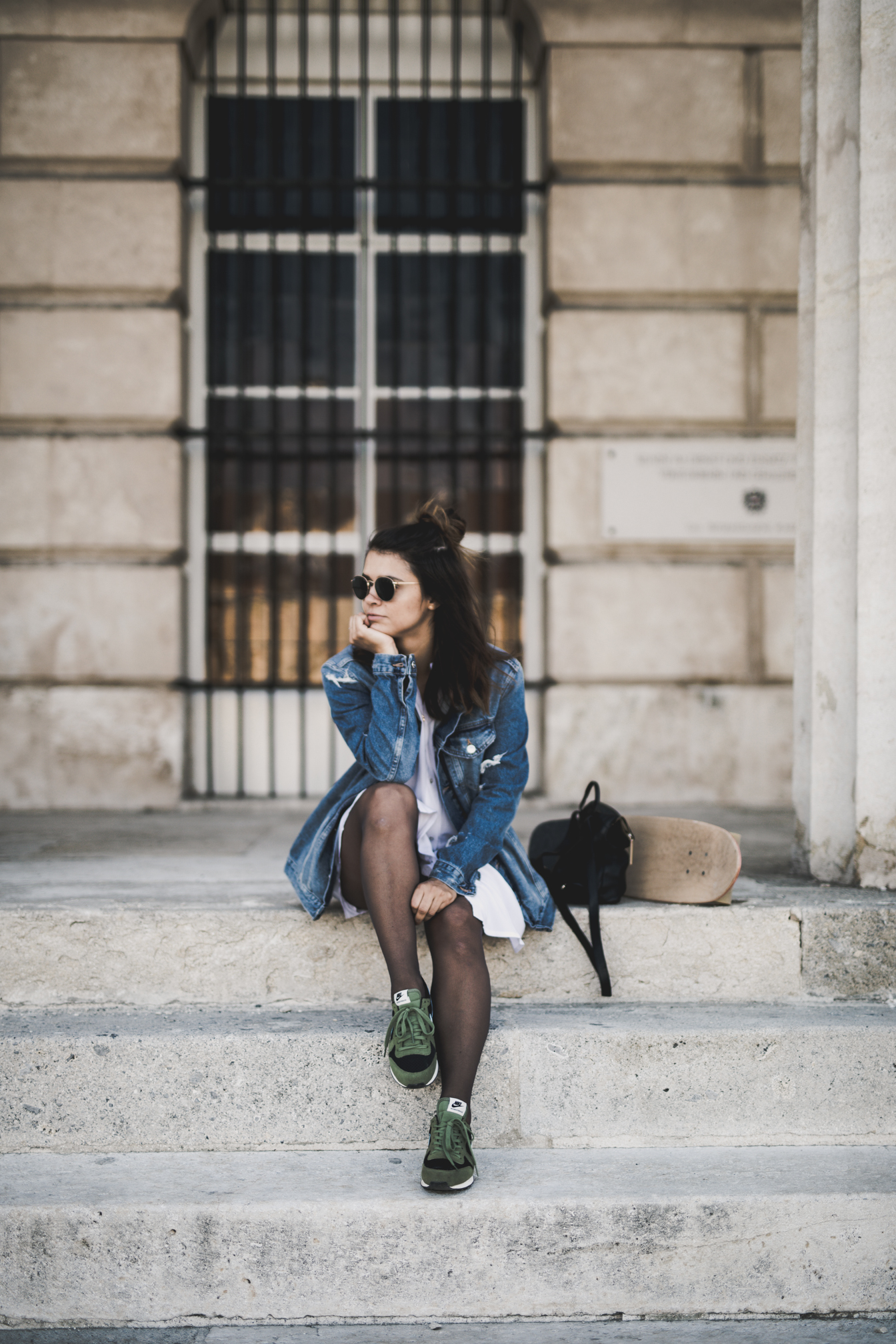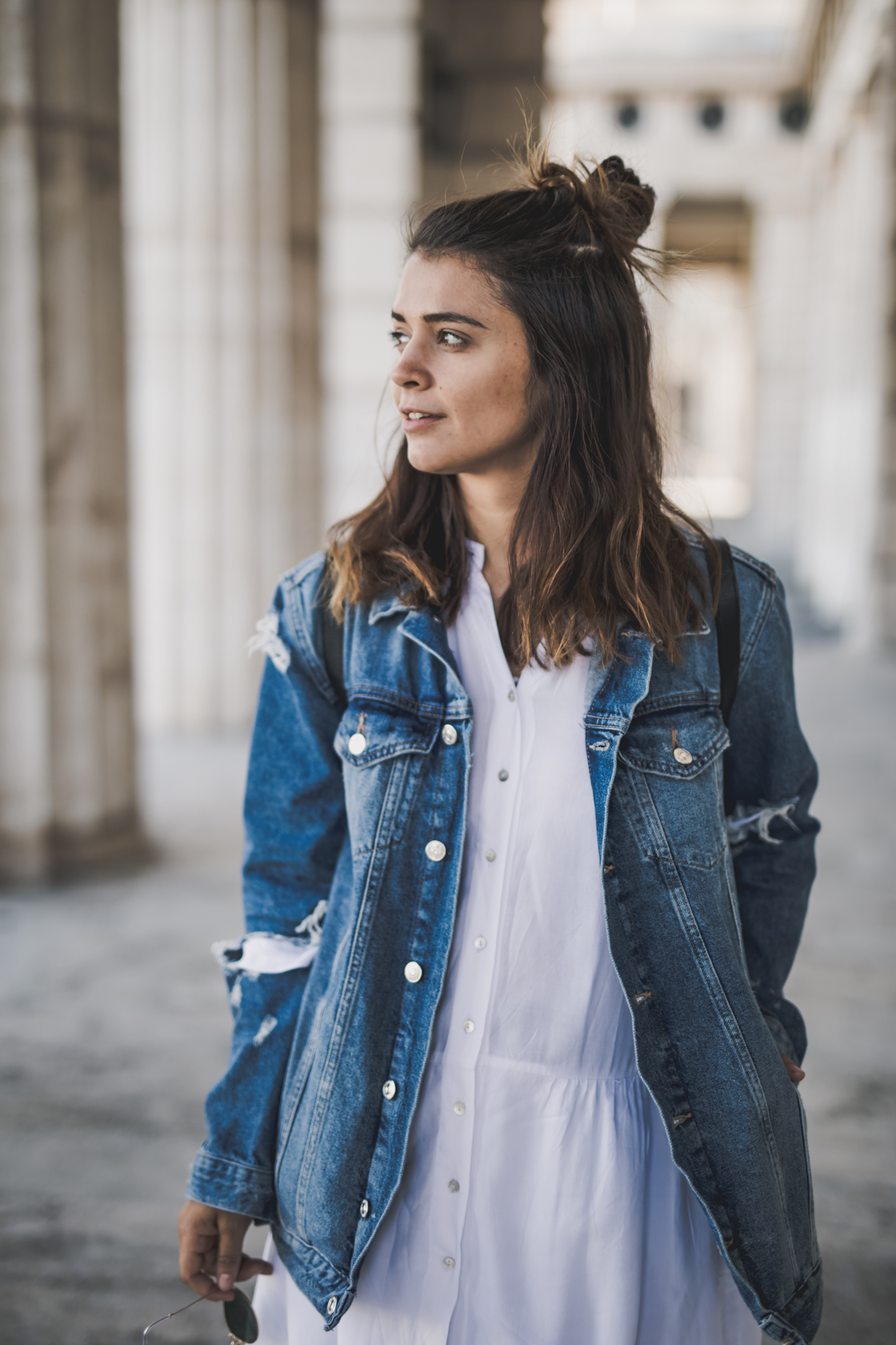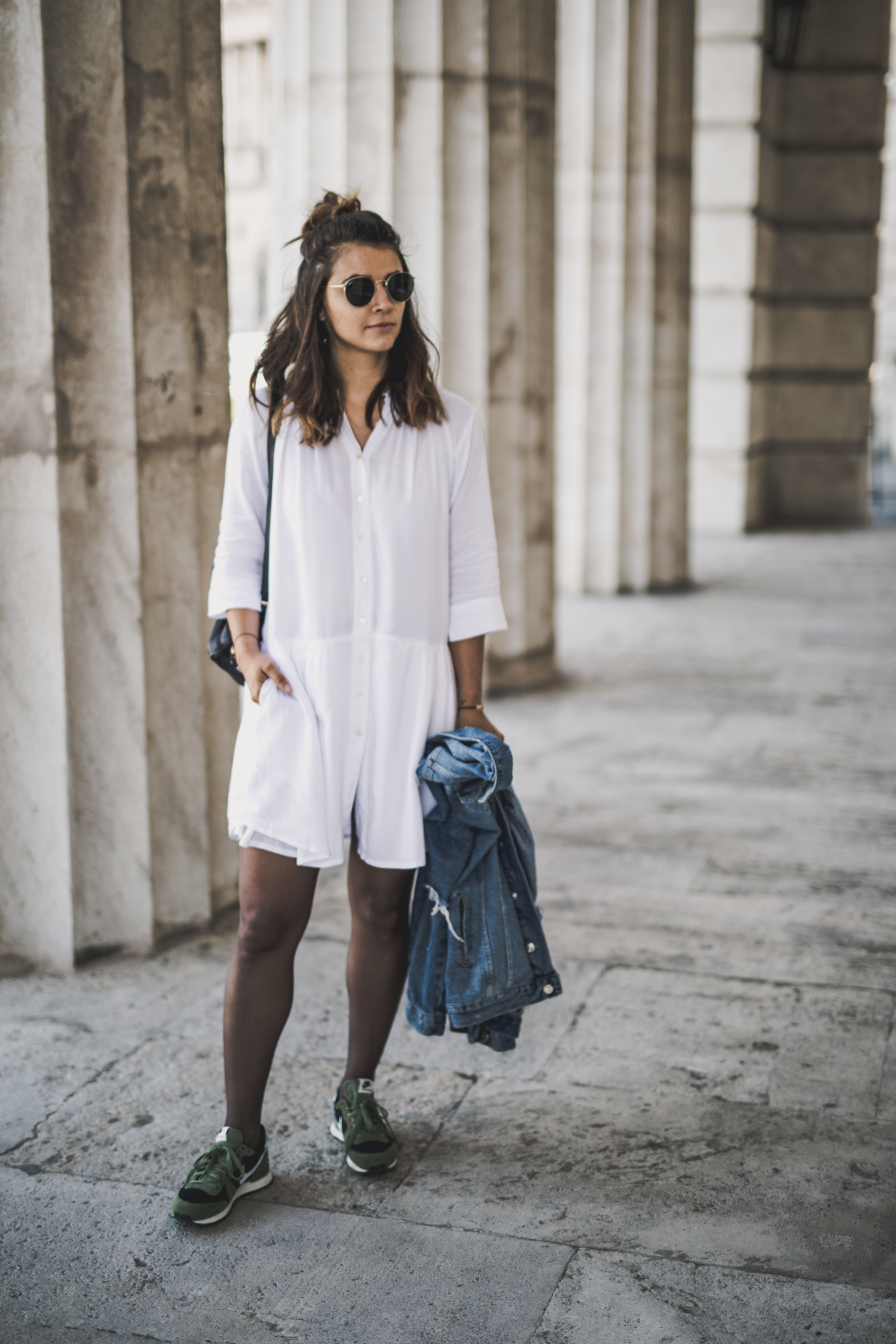 Kleid - Bali (Ähnliches HIER)|| Schuhe - Nike Internationalist (andere Farben oder individuelles Design HIER) || Jeansjacke - Mango || Rucksack - Whistles || Sonnenbrille - Rayban