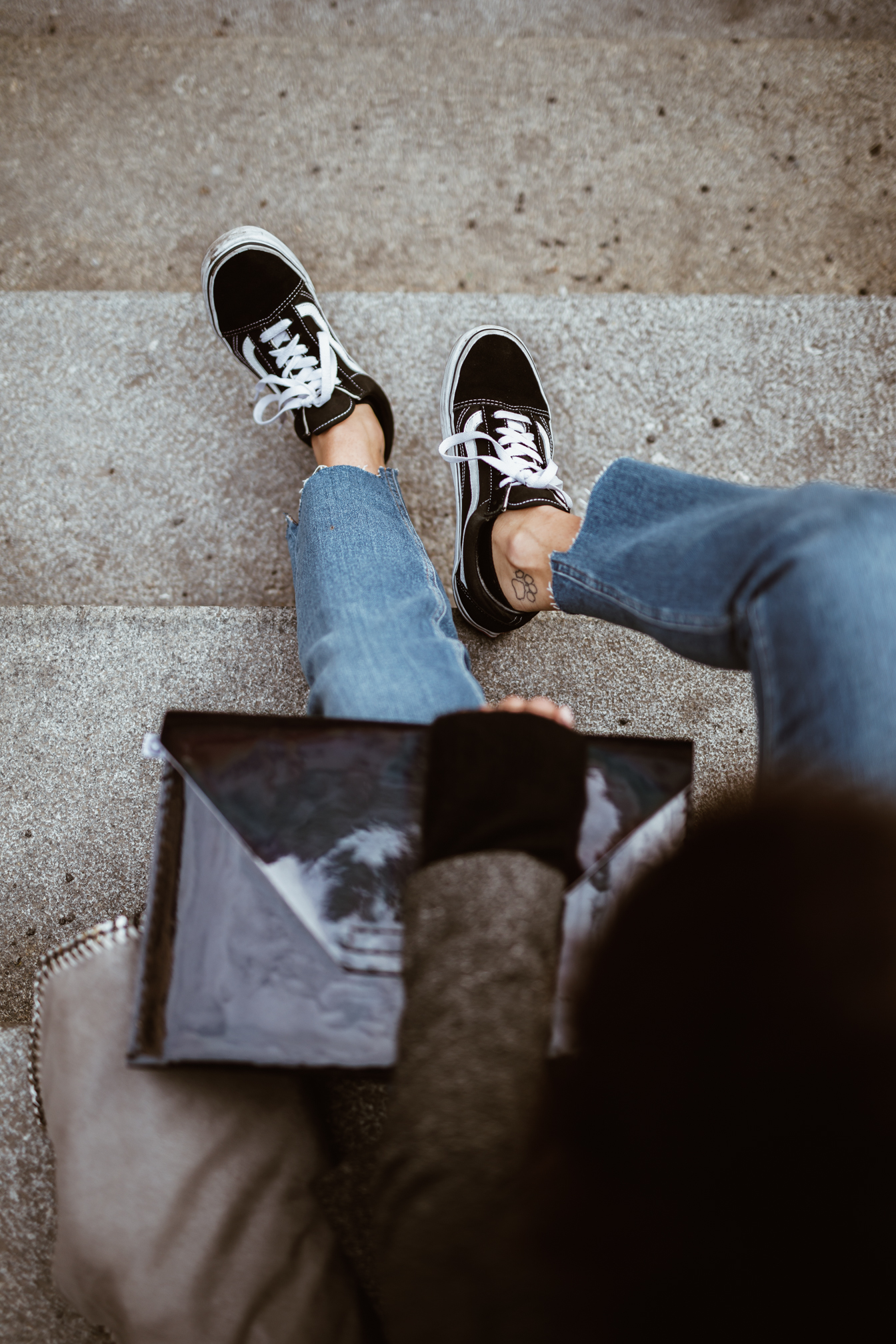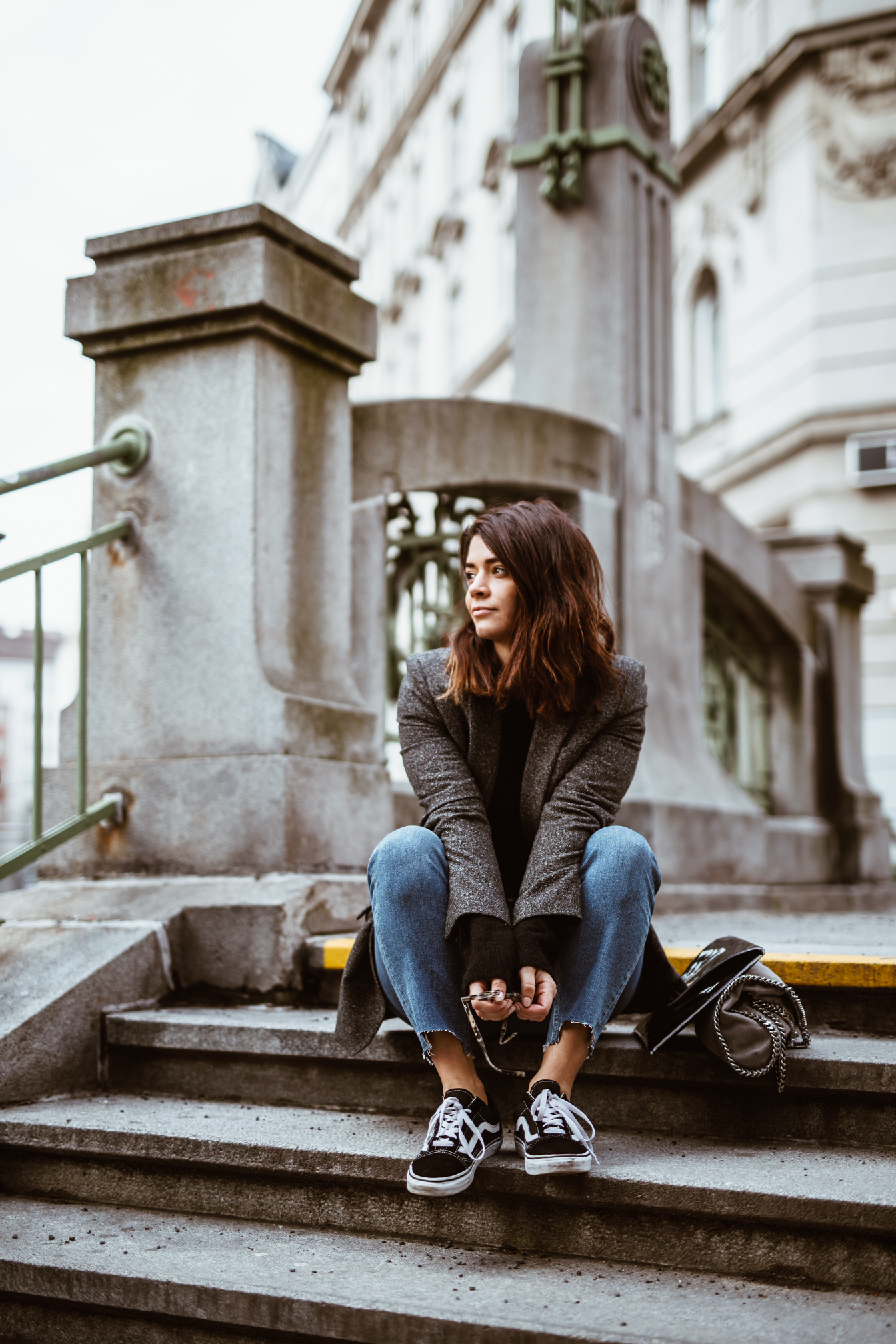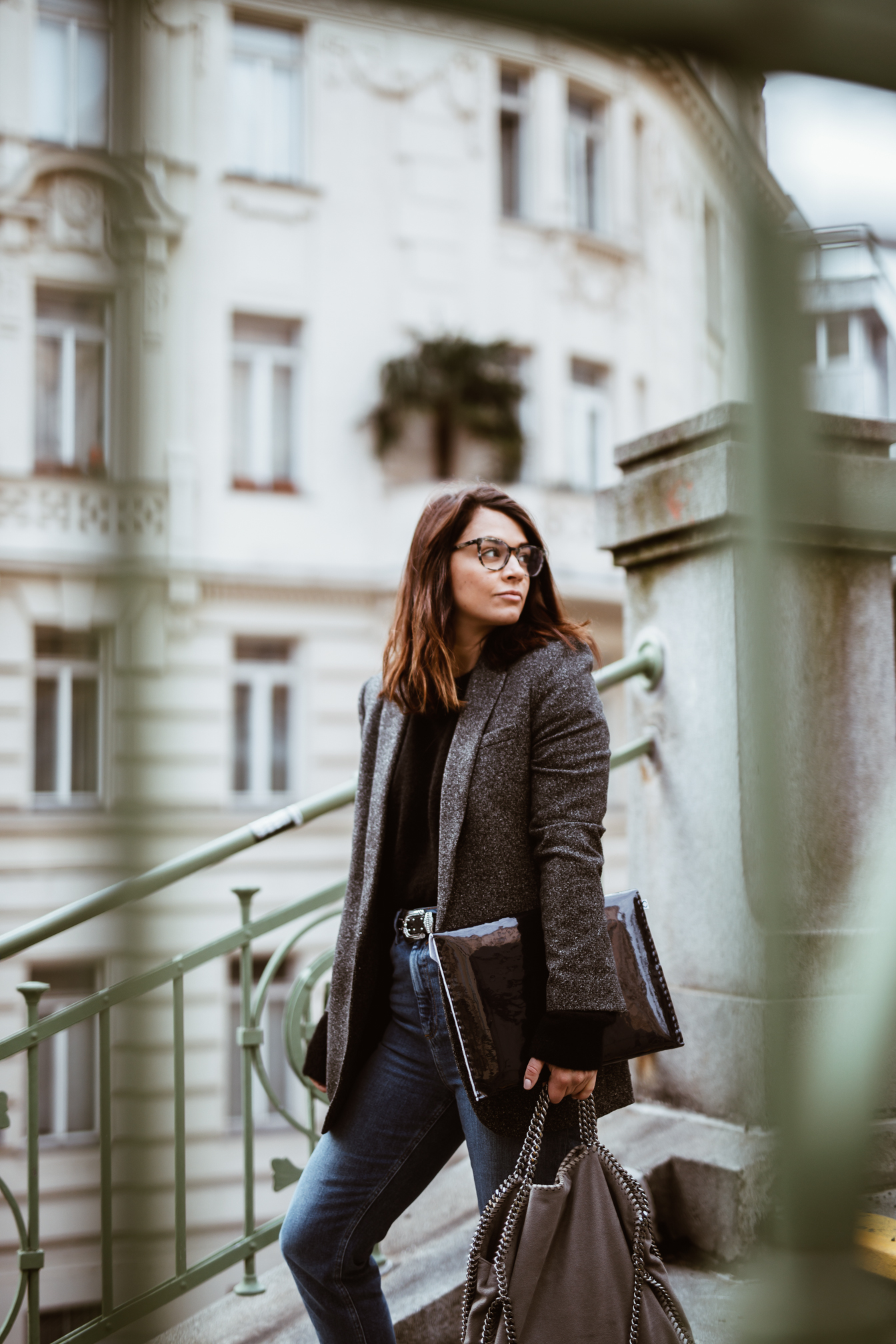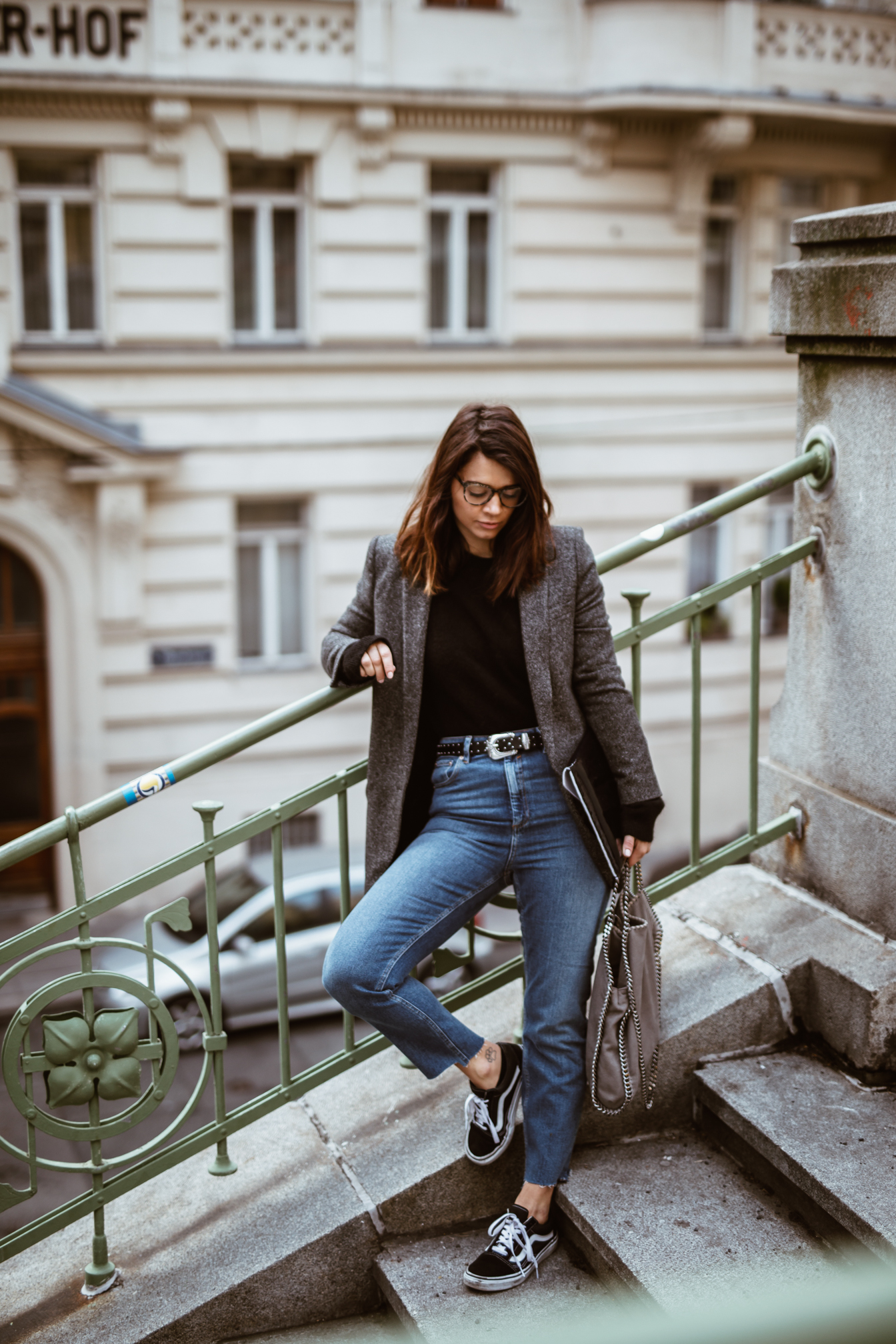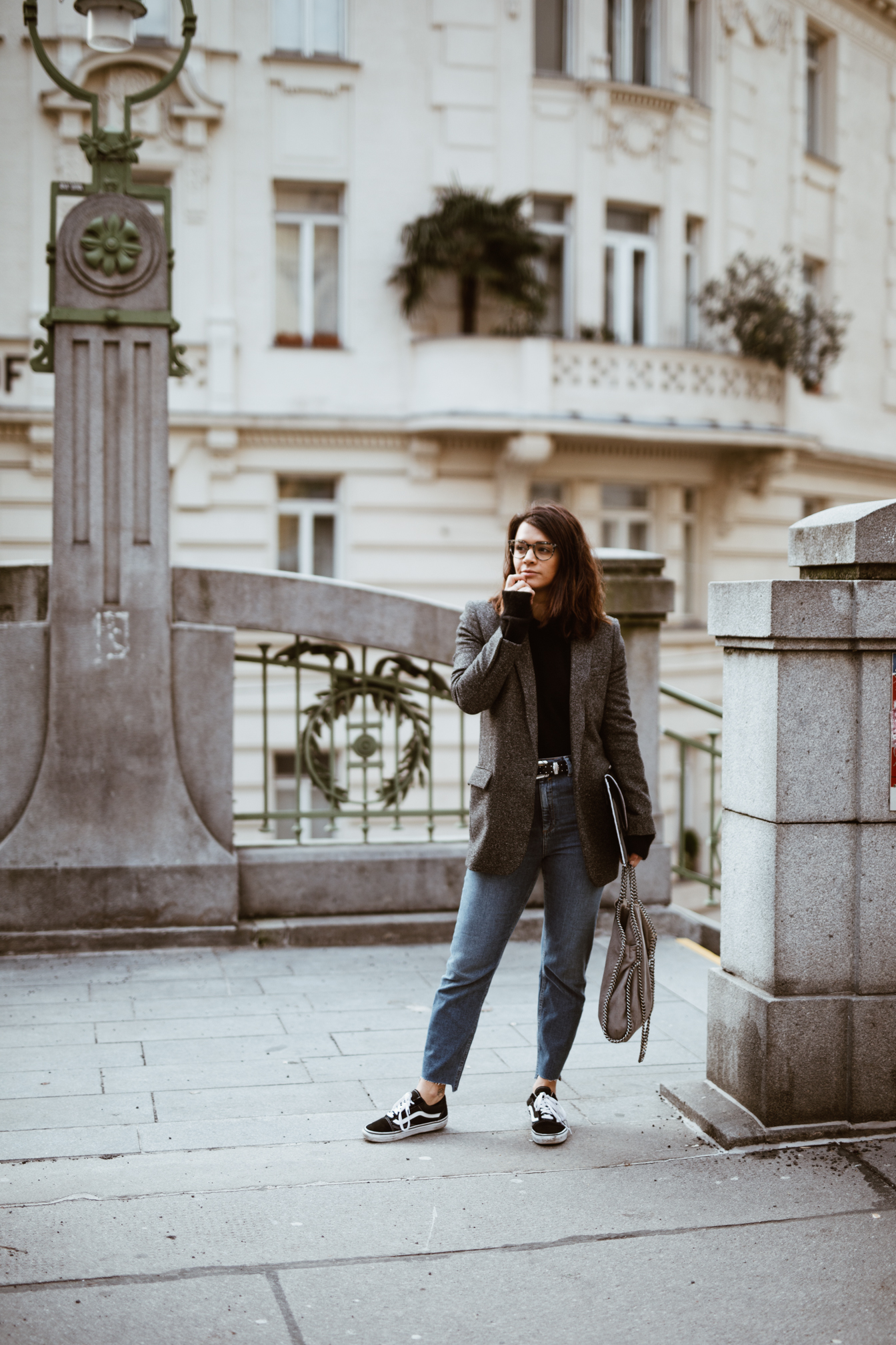 Mom Jeans - Asos || Pullover - &Otherstories || Schuhe - Vans || Blazer - Zara (alt, ähnlicher HIER) || Brille - Viu || Tasche - Stella McCartney Falabella | Laptopcase - Veronique