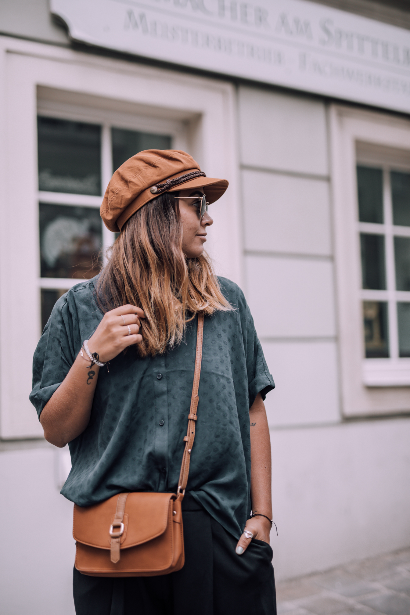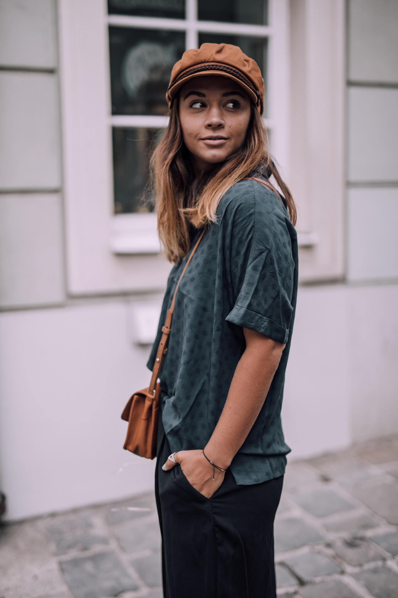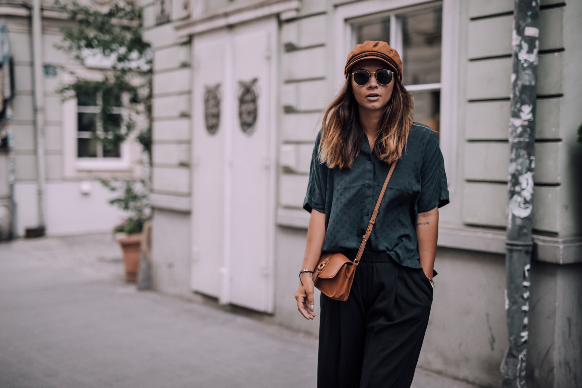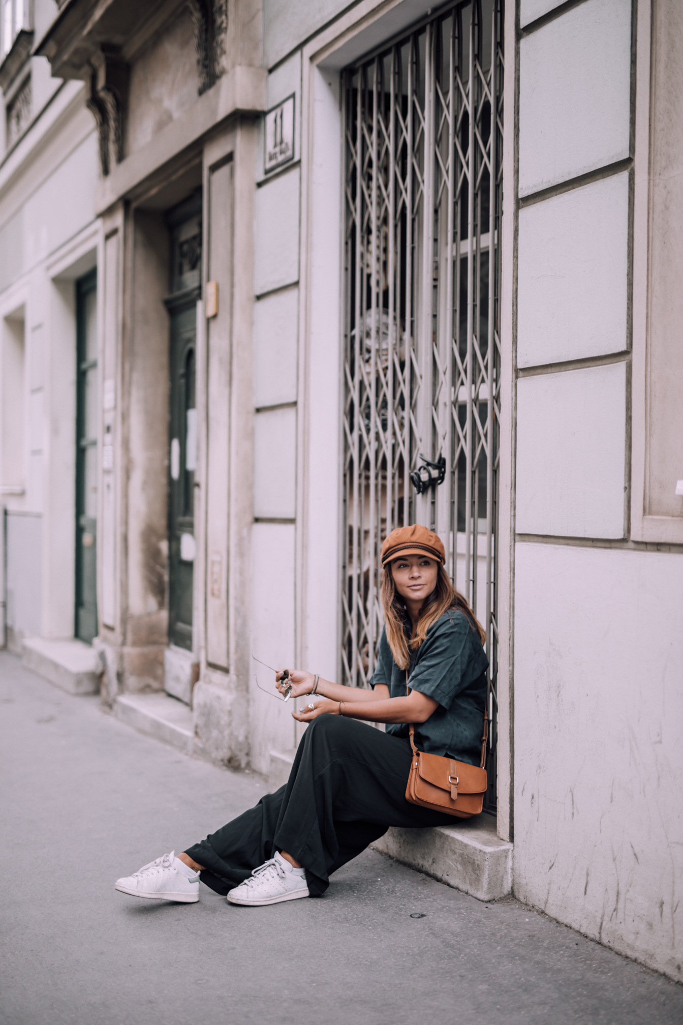 Hose - H&M (alt, ähnliche HIER) || Bluse - &Otherstories || Schuhe - Adidas Stan Smith (ähnliche HIER) Kappe- Brixton (ähnliche HIER) || Tasche - Urban Outfitters (alt, ähnliche HIER) || Sonnenbrille - Ray Ban