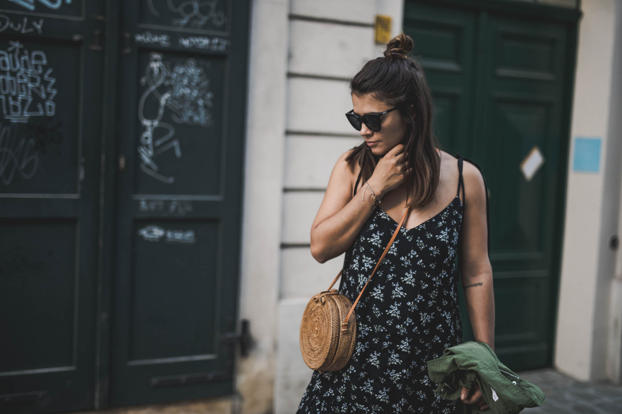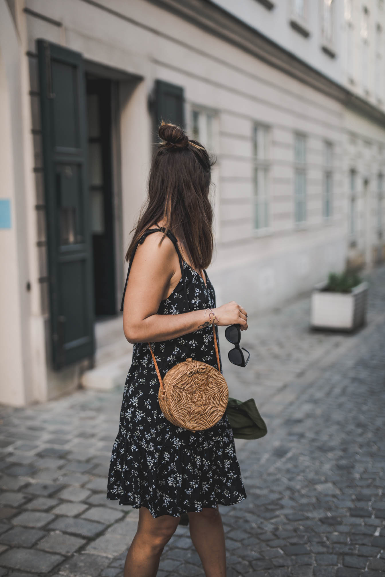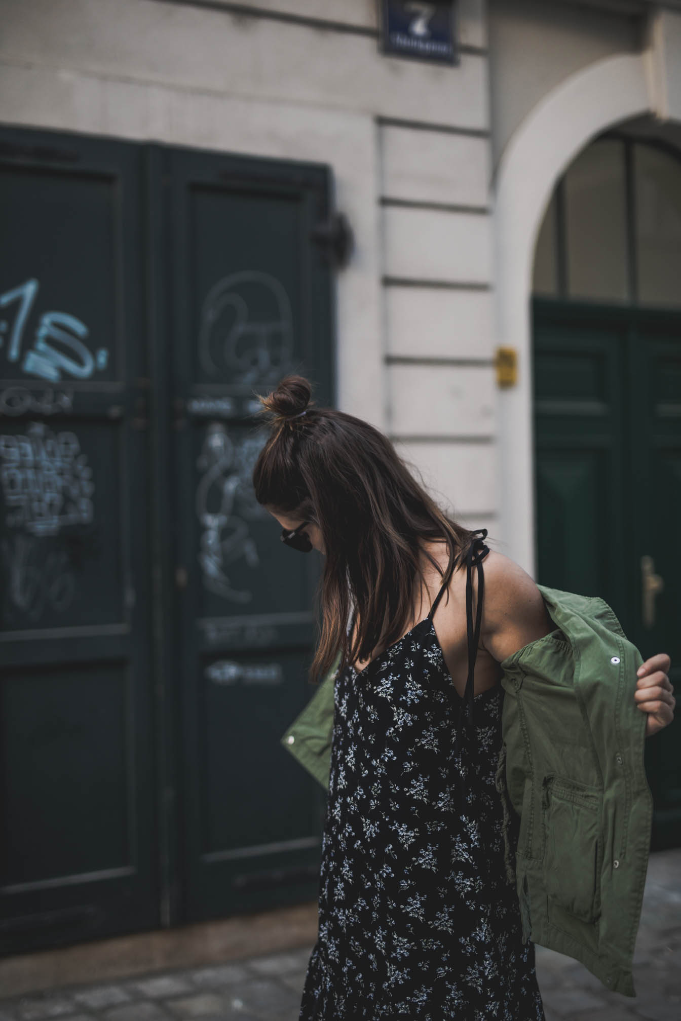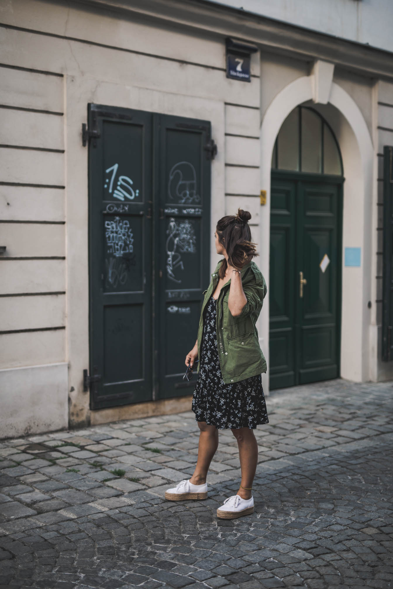 Wenn man das Wetter der letzten Tage so betrachtet, scheint es als wäre der Sommer so gut wie vorbei. Auch wenn ich mich schon sehr auf den Herbst freue und die verregneten Tage immer gerne nutze um die liegengebliebene Arbeit zu erledigen, bin ich trotzdem ein wenig wehmütig. Die letzten Monate waren einfach traumhaft und der Sommer 2018 war nicht nur unglaublich warm und sonnig, sondern ich habe auch sehr viel erlebt und es gibt so einige Momente die mir sicher noch lange in Erinnerung bleiben werden. Heute lässt sich Gott sei Dank die Sonne nochmal blicken und anlässlich dessen, gibt es auch gleich noch einen sommerlichen Look. Denn man weiß ja nie, nächste Woche erfriert ihr mir vielleicht schon beim Anblick dieser Bilder. In den letzten Monaten waren luftige Kleider und Plateau-Espadrilles bei mir wieder sehr hoch im Kurs. Ist gibt halt auch einfach nichts bequemeres und wenn es dann doch frisch wird, wirft man sich einfach eine coole Jacke über die Schulter. Das gute an solchen Kleidern ist ja, dass sie auch mit Strümpfen, Pullover und Dr. Martens ziemlich cool aussehen. Also darf dieses hübsche Stück noch ein bisschen bleiben, bevor es eingewintert wird.