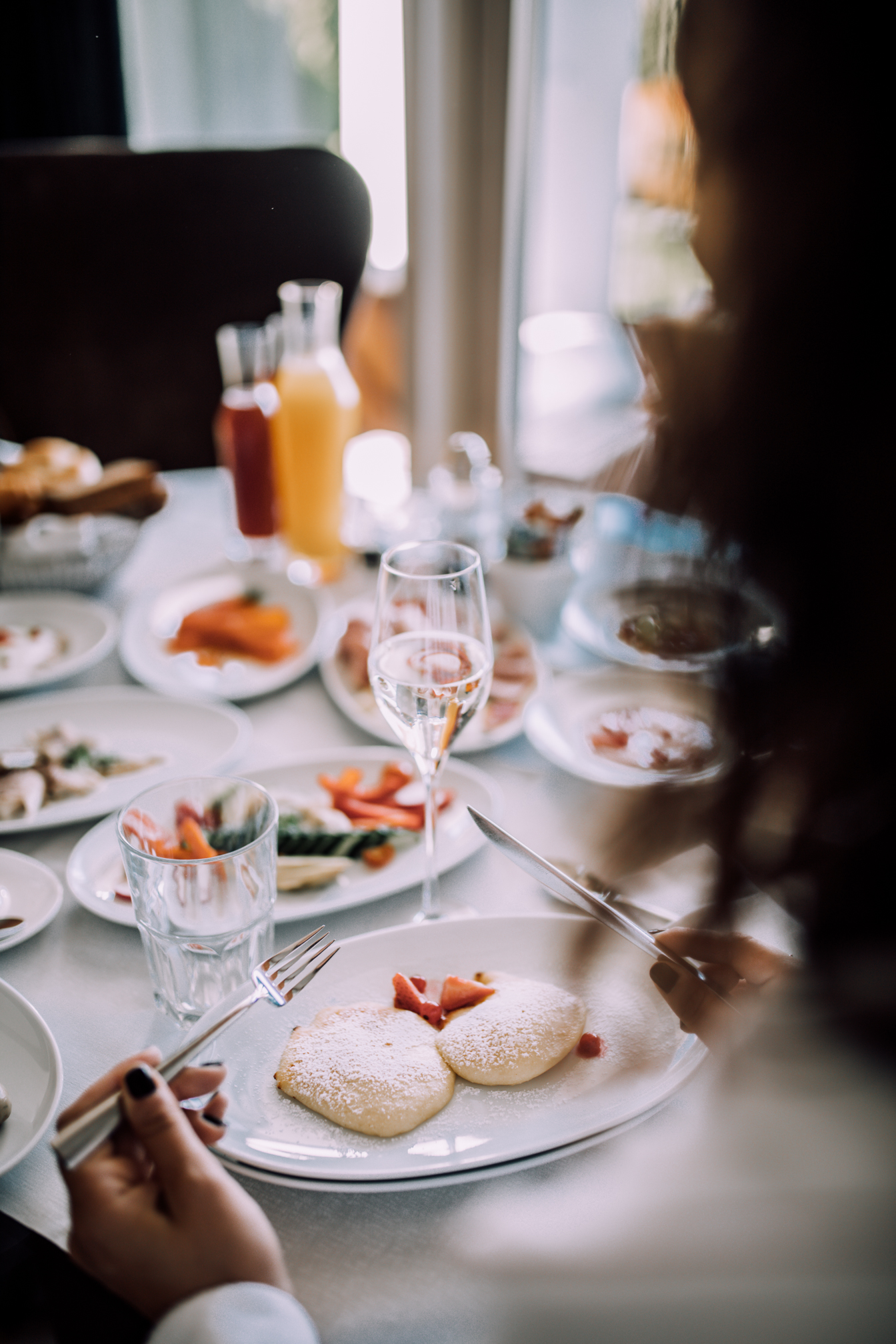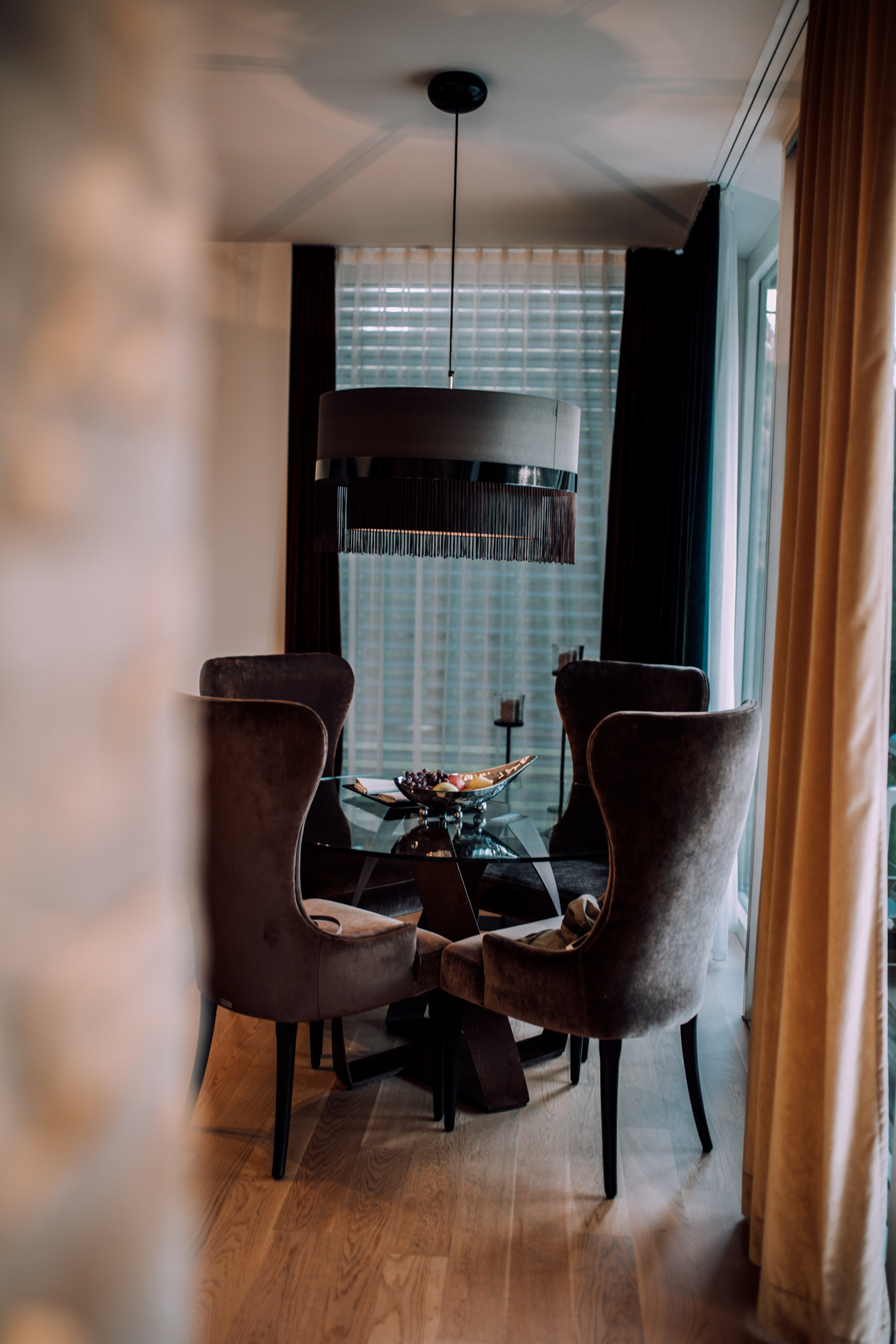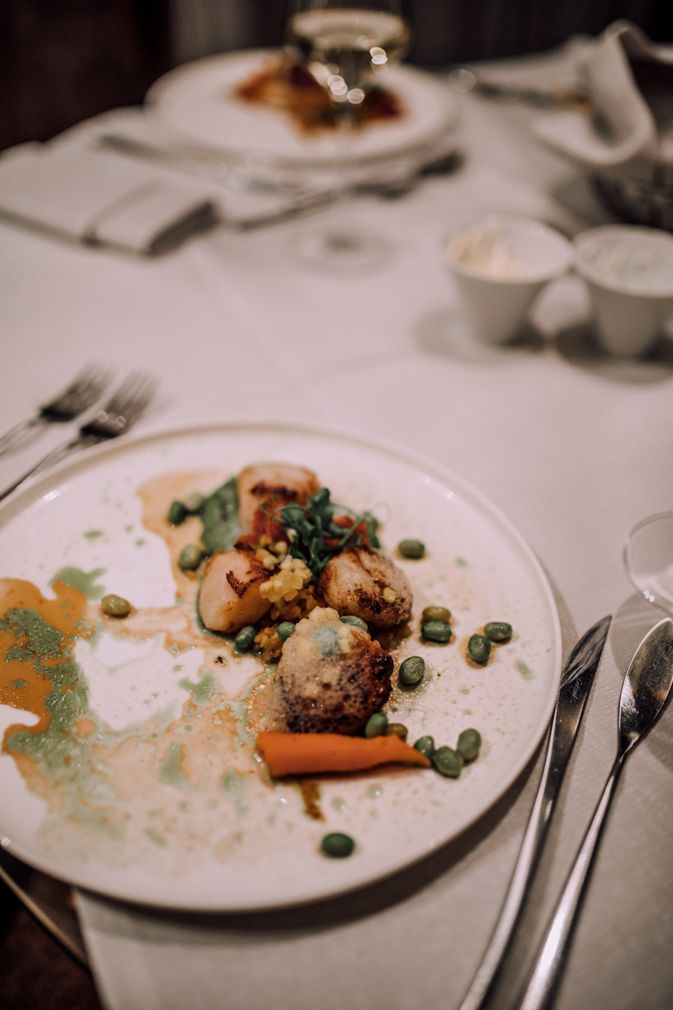 Auch das Essen möchte ich euch auf keinen Fall vorenthalten, denn wir haben uns natürlich auch ordentlich die Bäuche vollgeschlagen. Das tolle an Geinberg5 ist, dass man auch hier entscheiden kann, ob man für einen Aufschlag von 10 Euro lieber zu zweit in der Suite speist, oder ob man es sich im Restaurant bequem macht. Wir wollten ja beides ausprobieren, damit man einfach alles gesehen hat. Auch wenn das Ambiente im Restaurant sehr nett war, muss ich gestehen, dass es dann doch noch mal gemütlicher ist, wenn man sein Frühstück und Abendessen einfach im Bademantel im eigenen Zimmer genießen kann. Man bestellt ganz unkompliziert mittels iPad und zur gewünschten Zeit steht das Essen dann auch bereit. Die Auswahl beim Frühstück war einfach riesig und ja wir mussten einfach alles ausprobieren, denn wer kann sich schon zwischen Pancakes, Spiegelei, Weißwurst und Fruchtjoghurt entscheiden. Abends gab es dann ein 4 Gang Menü, wo man natürlich zwischen 2 unterschiedlichen Gerichten wählen konnte. Auch kulinarisch wird man im Geinberg5 verwöhnt und nur wenn ich an das Essen denke, läuft mir das Wasser im Mund zusammen. Nicht umsonst ist das Restaurant mit zwei Hauben ausgezeichnet.