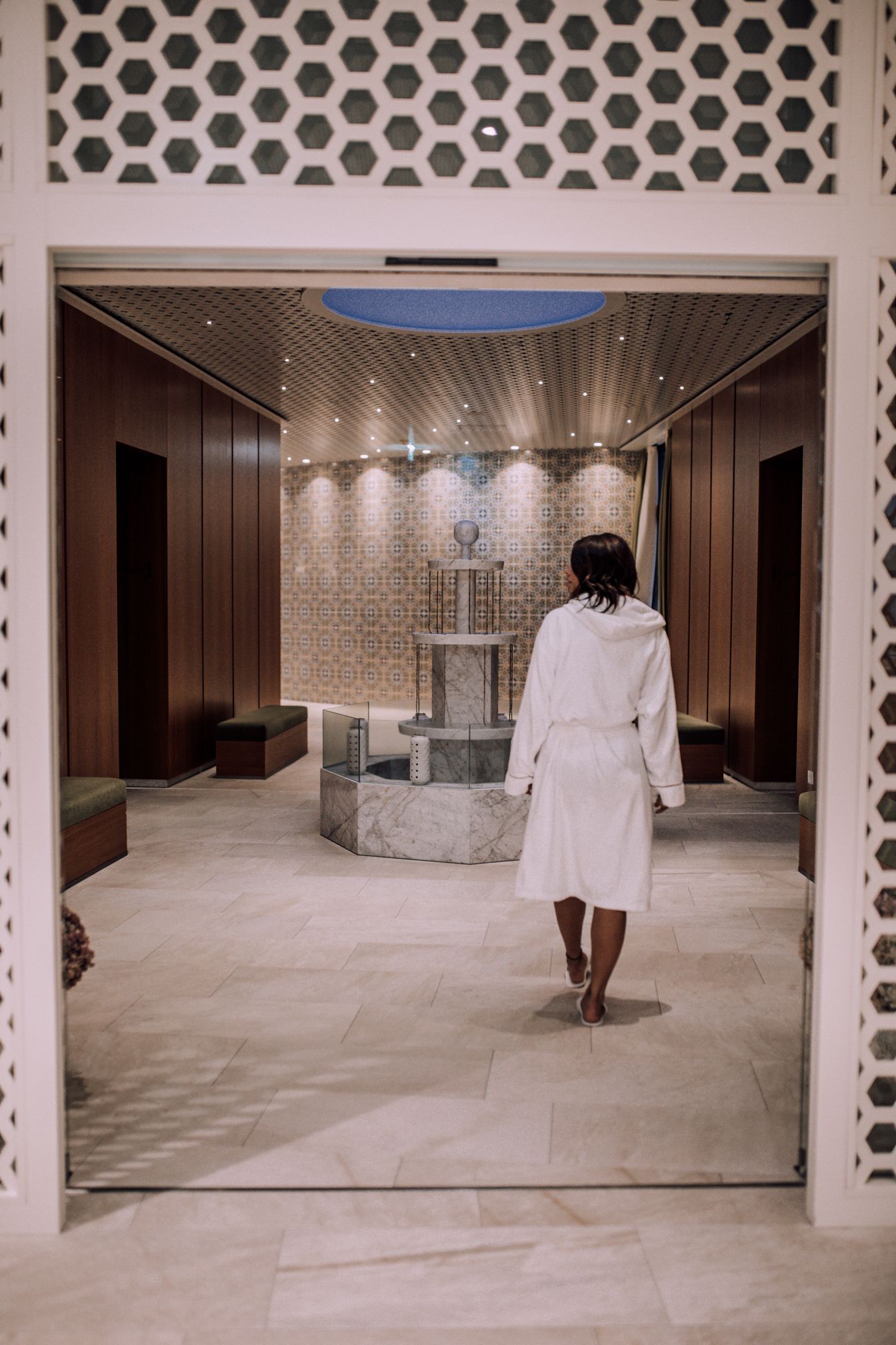 Wir haben zwar unglaublich viel Zeit in unserer eigenen Suite verbracht, doch zwischendurch mussten wir dann einfach auch in den privaten Spa-Bereich, der nur für die Geinberg5 Gäste rund um die Uhr zugänglich ist. Zusätzlich zu diesem wirklich wunderschönen Bereich, hat man auch Zugang zur Orientalischen Erlebniswelt. Auch diese Bereich ist wunderschön und irgendwie fühlt man sich wie in einer anderen Welt. Eine finnische Sauna am Dach, eine gemütliche Teebar, ein wunderschöner Arkadenhof und das Highlight das Hamam - ja hier kann man schon ein bisschen Zeit verbringen und entspannen. Ich bin sogar in den Genuss einer traditionell orientalischen Hamam-Behandlung, mit Körperpeeling, Wassergüssen und Seifenschaummassage gekommen - ein absoluter Traum kann ich euch sagen.