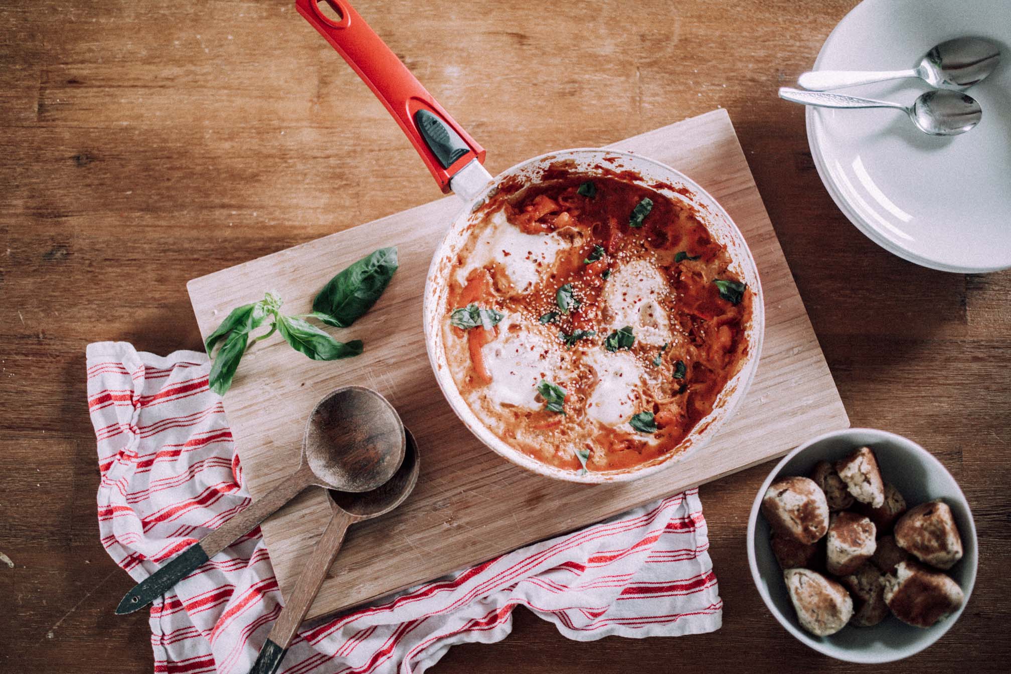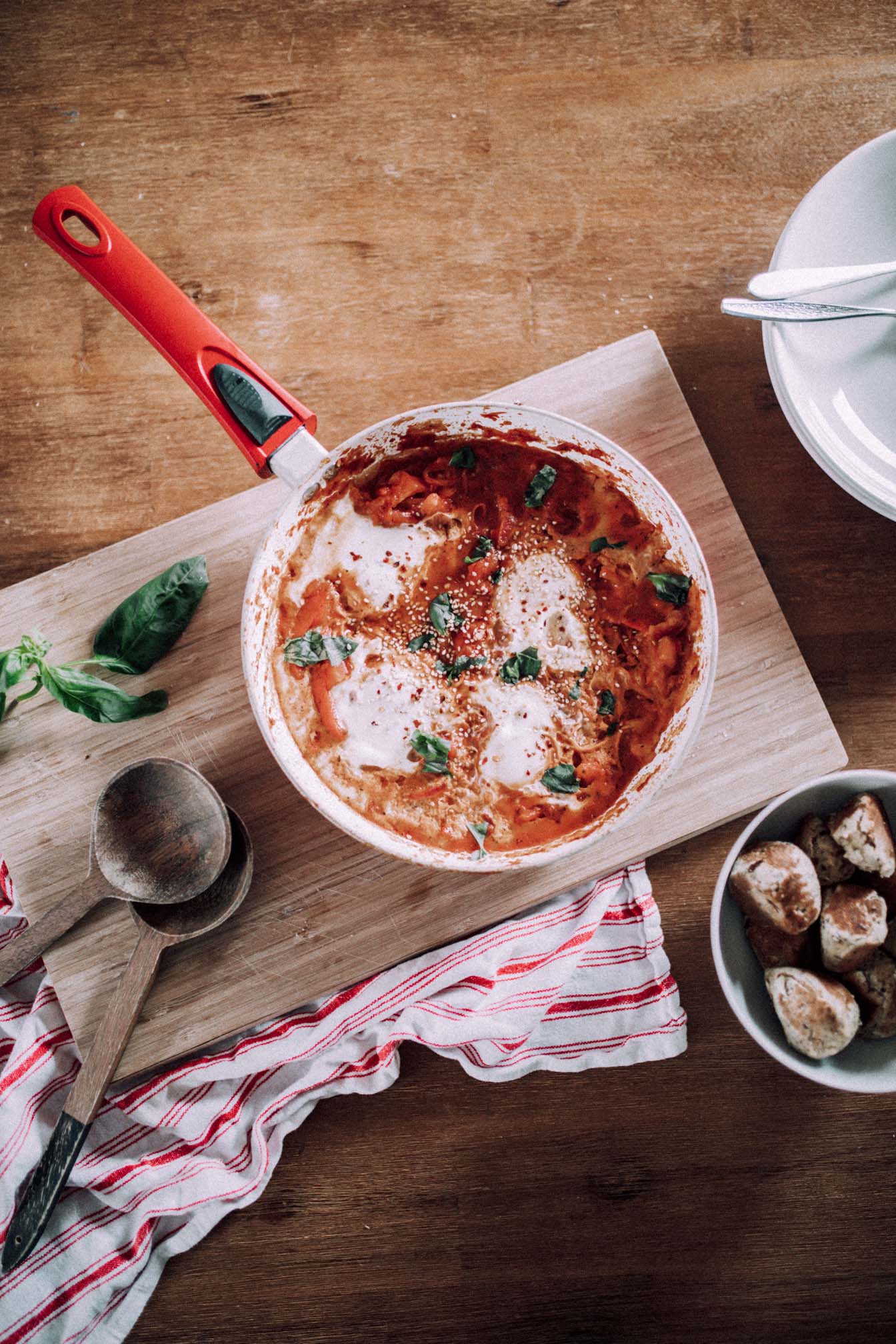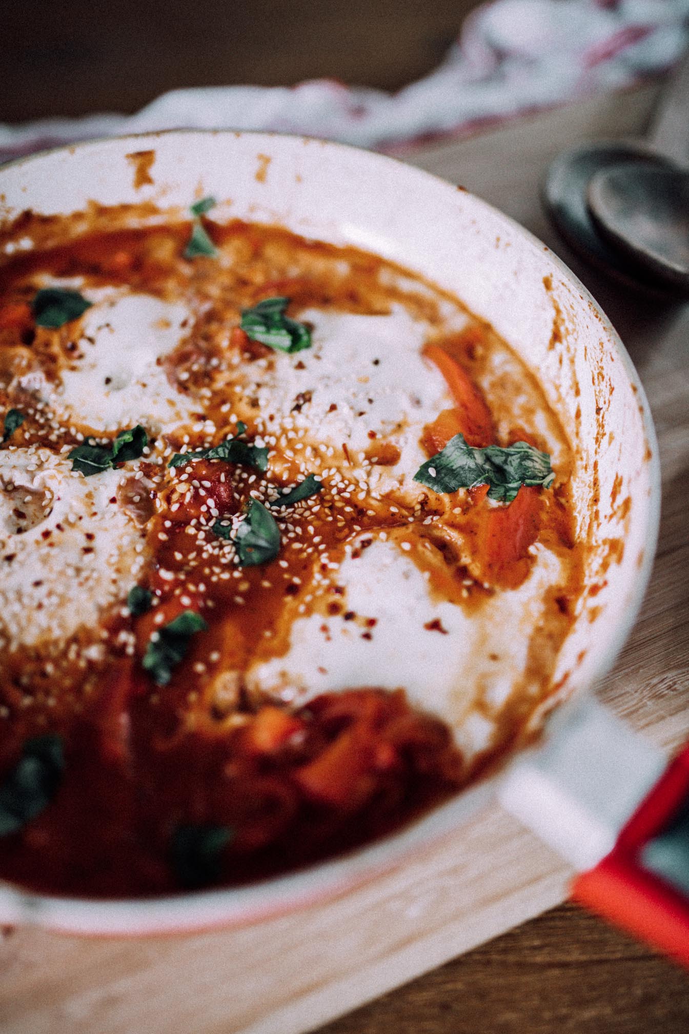 Wieso ich so ein Shakshuka Fan bin? Man braucht nicht viele Zutaten, es ist gesund und man kann es eigentlich zu jeder Tageszeit essen – Frühstück, Mittags oder Abends, es passt einfach immer.