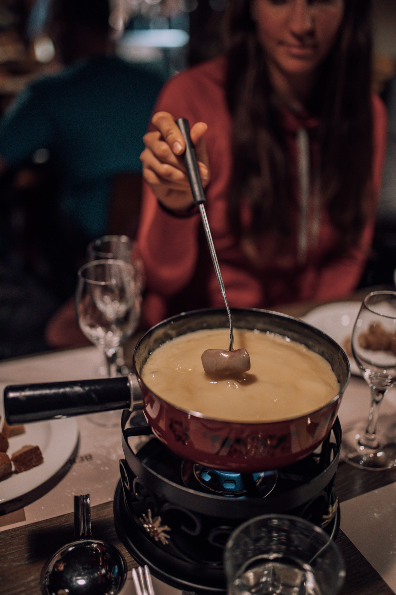Bergrestaurant Foppa: Am ersten Abend ging es für uns mit der Gondel rauf auf den Berg ins Restaurant Foppa, wo wir uns natürlich ein klassisches Käsefondue gönnen mussten. Die Karte ist recht überschaubar, was ich persönlich sehr gut finde, denn Entscheidungen treffen ist nicht meine größte Stärke. Die Atmosphäre ist richtig gemütlich und das Essen unheimlich lecker. Ja und das Highlight, runter geht es dann mit dem Schlitten.