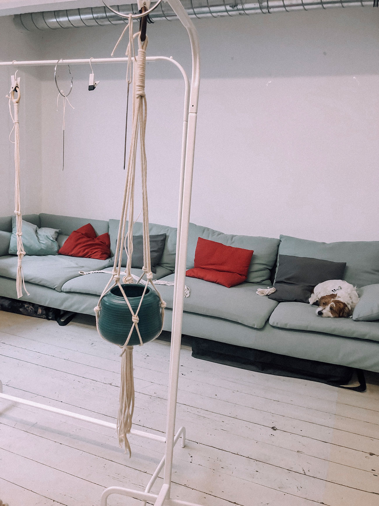 So kam mir die Einladung von der lieben Katja von sixtyknots zu einem Makramé Workshop ganz recht. Nie hätte ich mir gedacht, dass ich bei so einer Knüpferei so gut abschalten und alles vergessen kann. Es hat mir echt unheimlich viel Spaß gemacht und deshalb wurde gleich ein bisschen Material für zuhause mitgenommen.