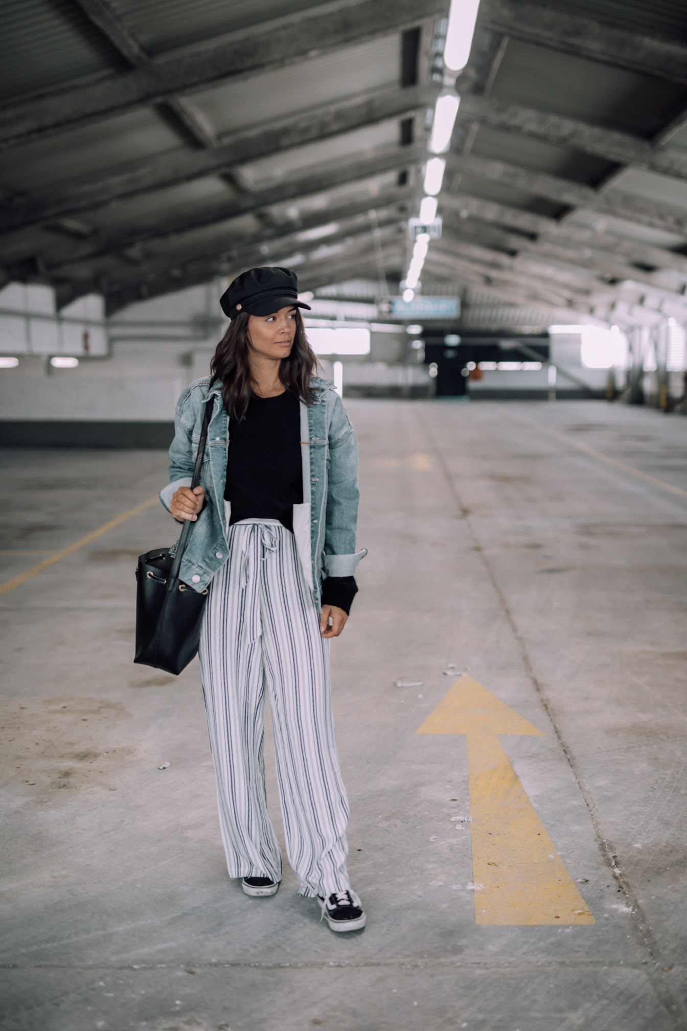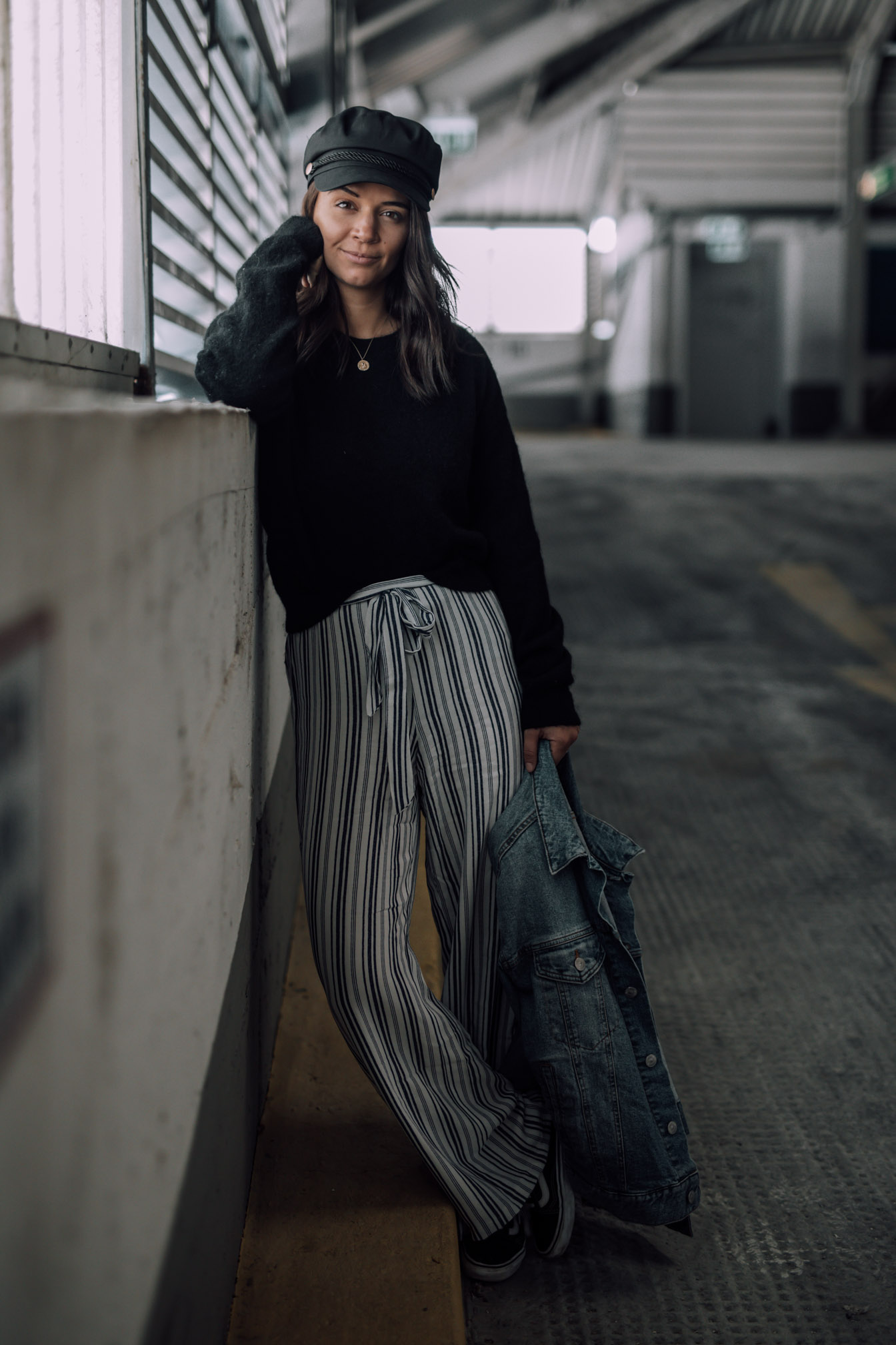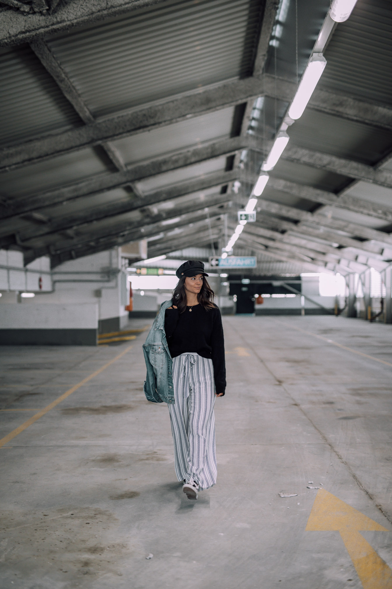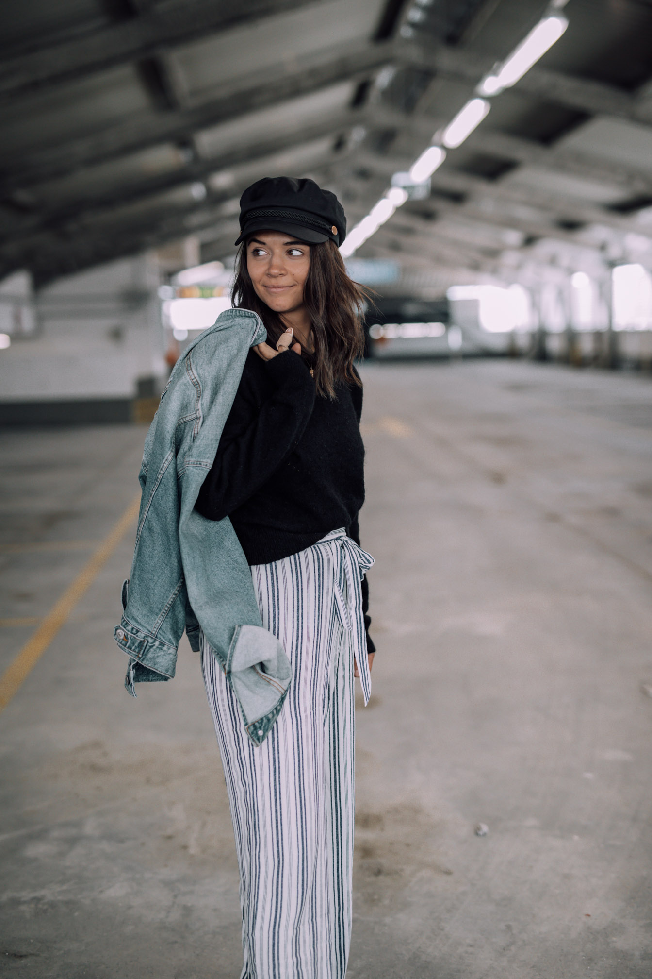 Irgendwie kann ich es noch gar nicht glauben, aber es ist endlich soweit, der Frühling steht vor der Tür. Für mich war der Winter dieses Jahr irgendwie unheimlich kurz und ich glaube auch deshalb ist es für mich immer noch ein bisschen unrealistisch, dass die warme Jahreszeit nun endlich wieder ansteht. Doch ich freue mich schon riesig - Endlich wieder im Freien sitzen, Aufstehen wenn es bereits hell ist, wieder mehr laufen gehen und die luftigen Klamotten auspacken. Noch ist es zwar etwas frisch, vor allem in der Früh, aber trotzdem habe ich bereits die Jeansjacken-Saison eröffnet. Mit einem kuscheligen warmen Pullover darunter muss man auch nicht frieren. Außerdem wurden die hellen Hosen wieder ausgepackt und bereits fleissig getragen. Im Winter bin ich da ja immer ein bisschen vorsichtig, denn meistens bleibt die Hose da nicht sehr lange hell. Nun traue ich mich aber wieder drüber und eröffne hiermit die weiße Hosen Saison mit diesem luftigen Teil in blau&weiß.